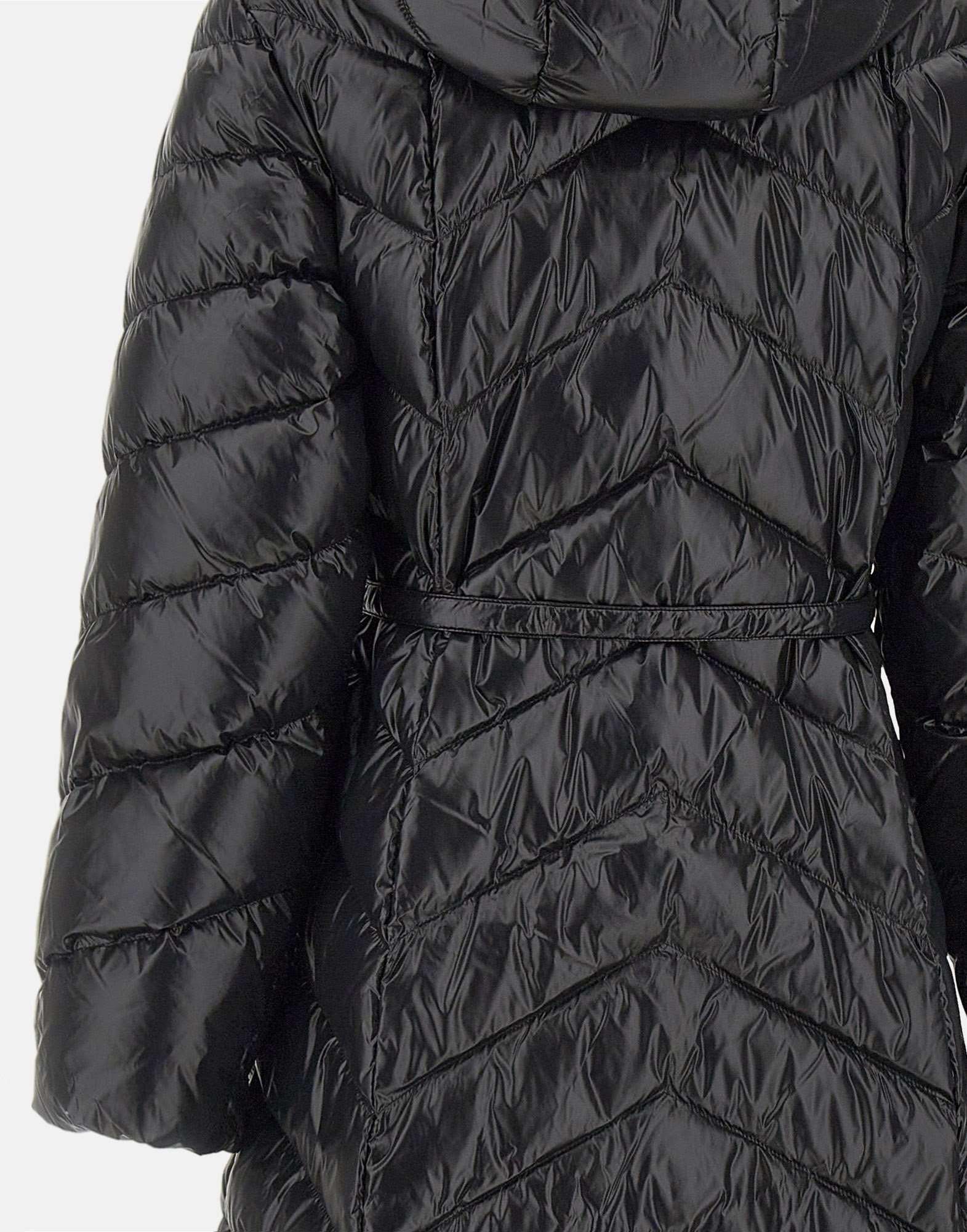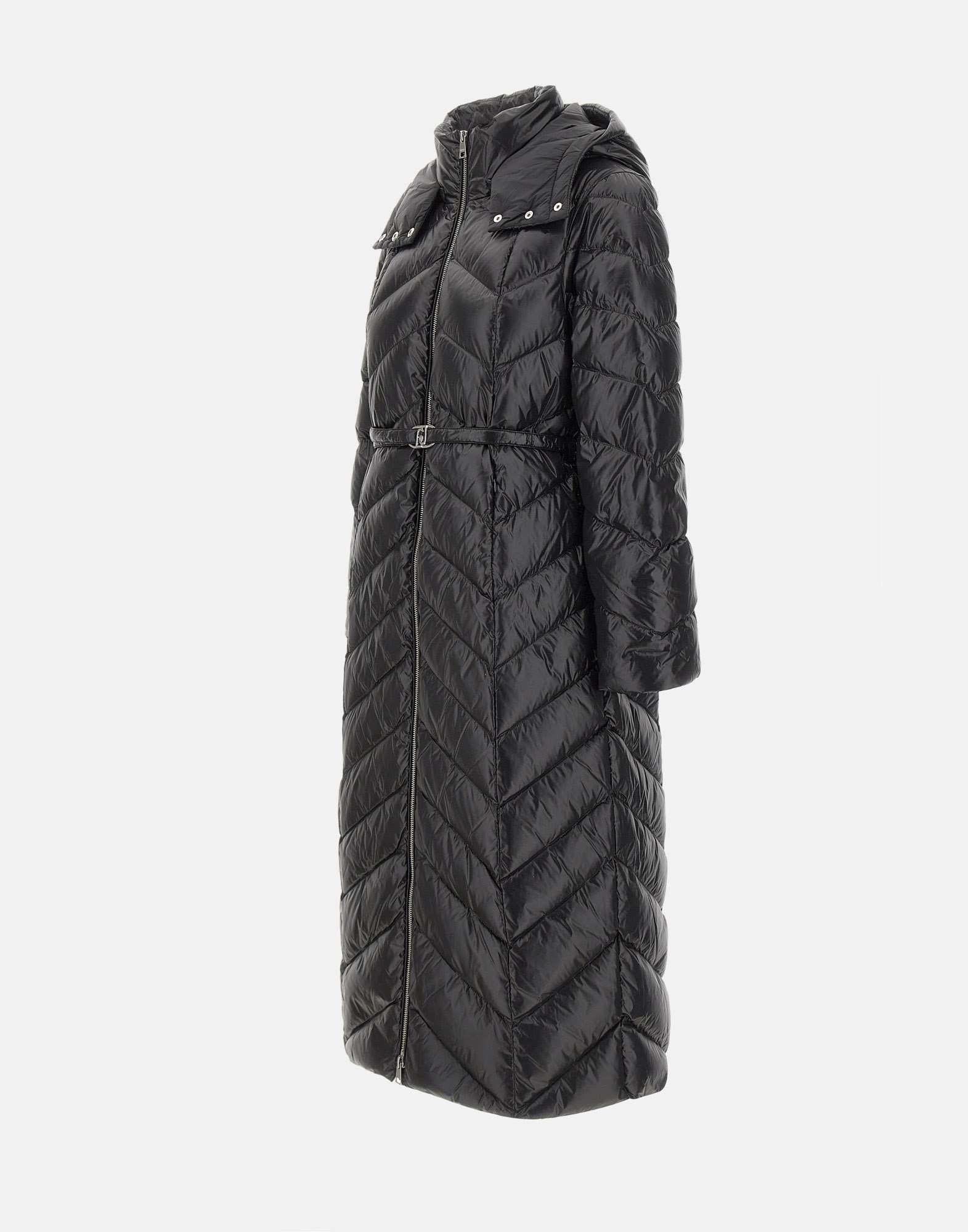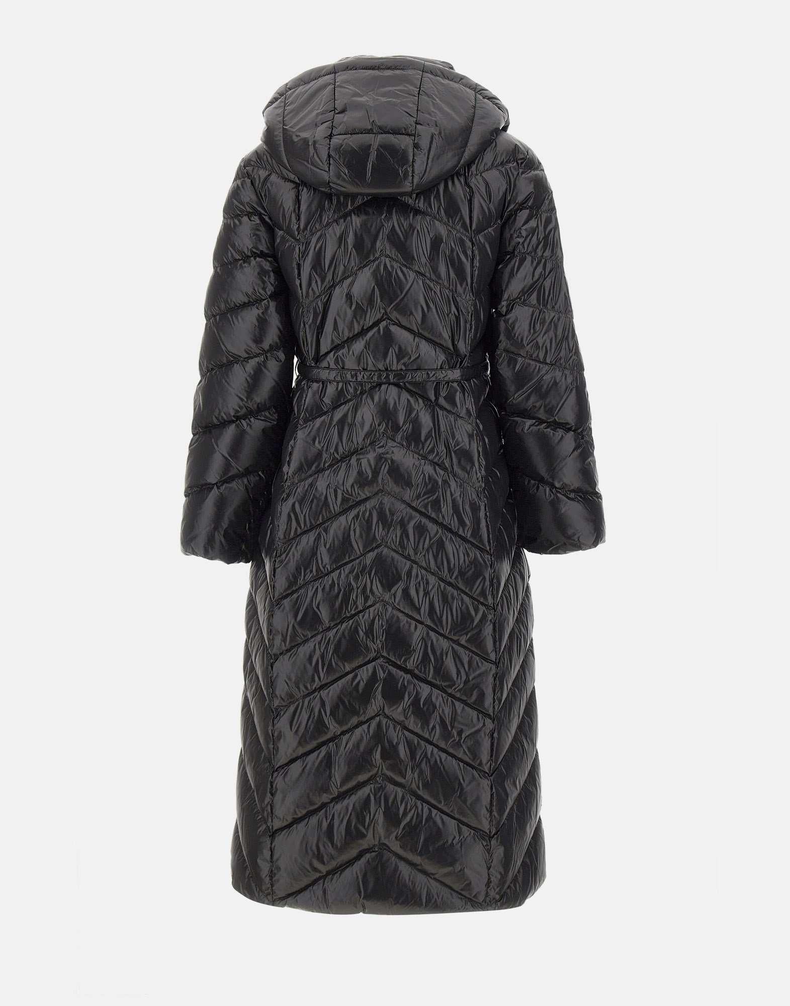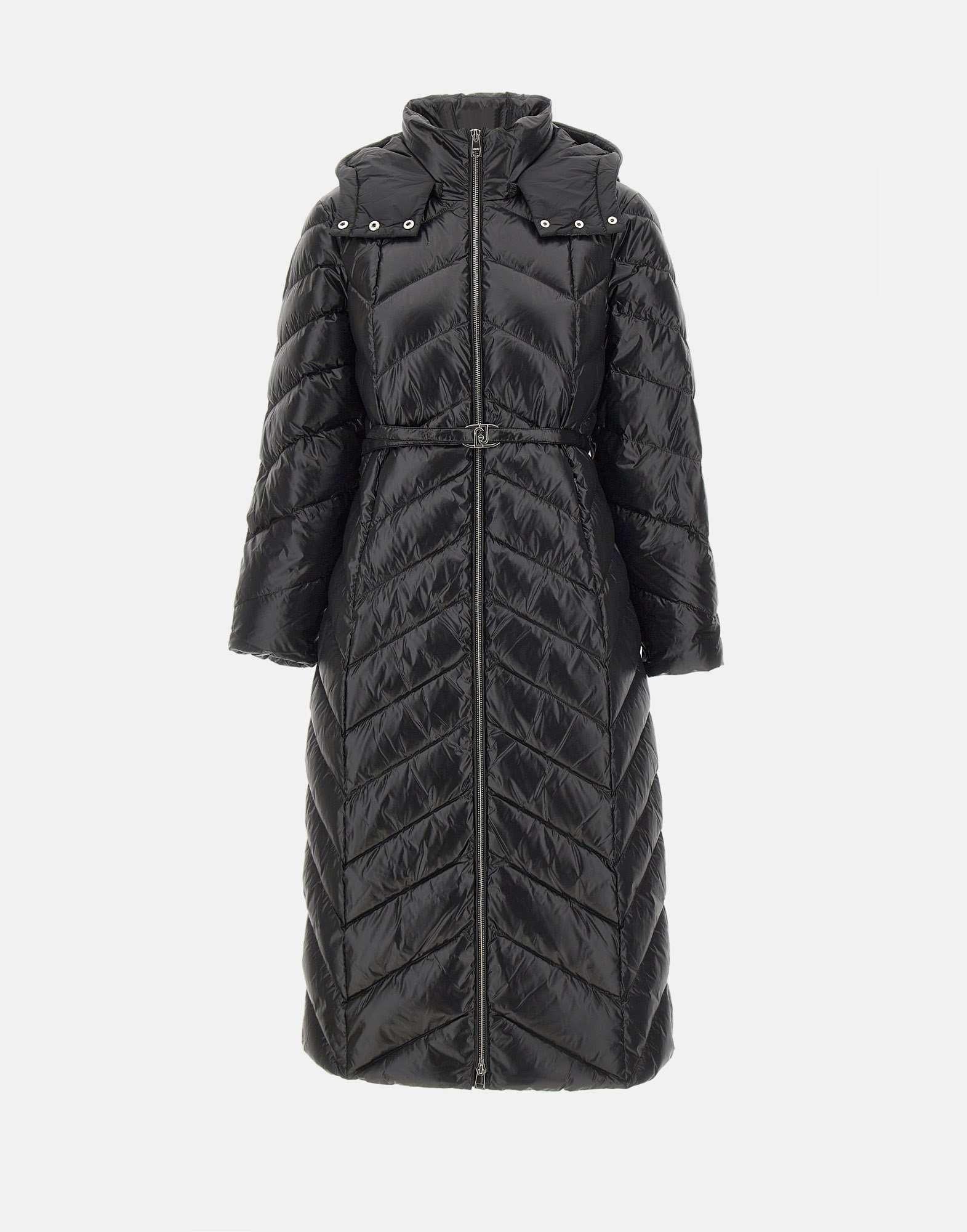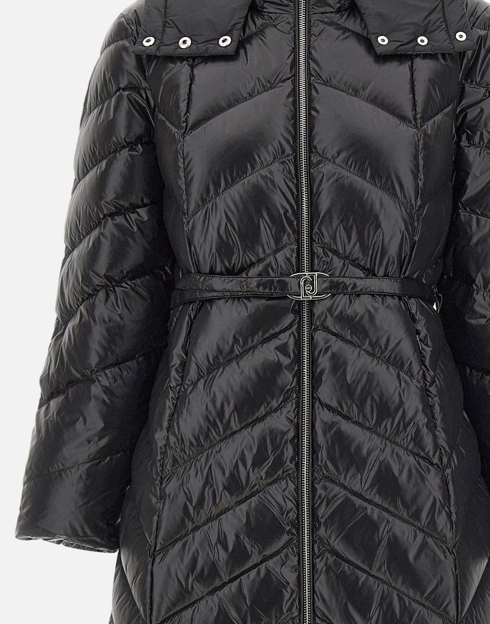 Piumino Liu-Jo lungo realizzato in nylon trapuntato a spiga nel colore nero, con imbottitura in vera piuma per un calore leggero e avvolgente. Dotato di cappuccio removibile con chiusura a bottoni, tasche laterali con zip invisibile e cintura logata che valorizza la silhouette. La chiusura frontale con zip a doppio cursore e la metalleria color argento completano un capo sofisticato e femminile. Cintura inclusa. Regular fit