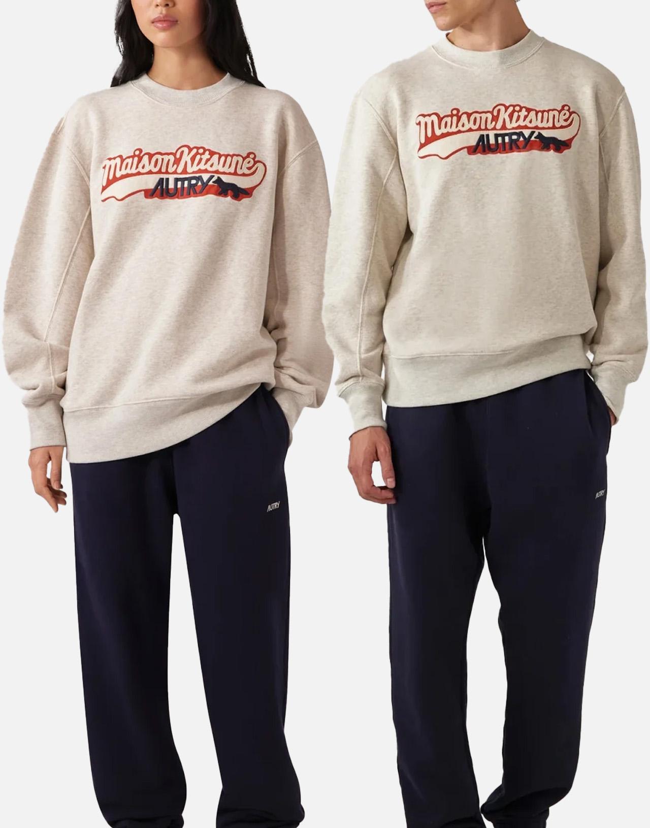 Felpa unisex Autry x Maison Kitsunè "Sweatshirt Main" in cotone garzato grigio, con girocollo, maniche lunghe e spalle raglan per un comfort ottimale. Caratterizzata da maxi logo frontale a contrasto con l’iconica Fox di Maison Kitsunè. Bordi a costine. Vestibilità relaxed per un look casual e contemporaneo.