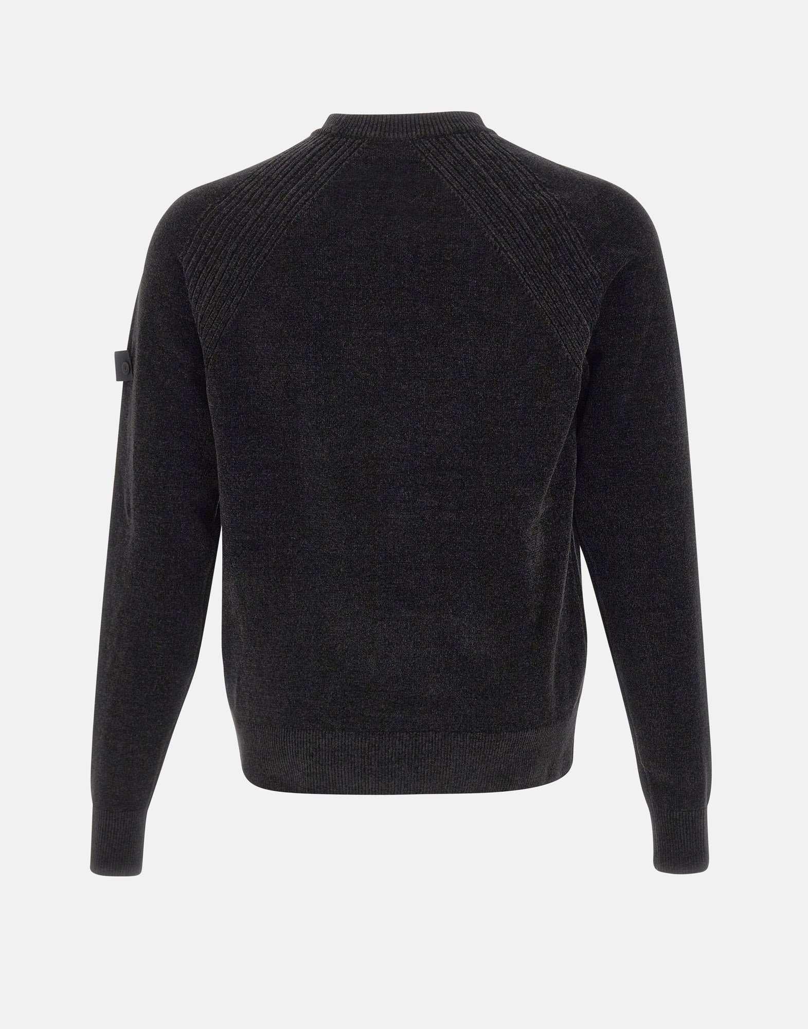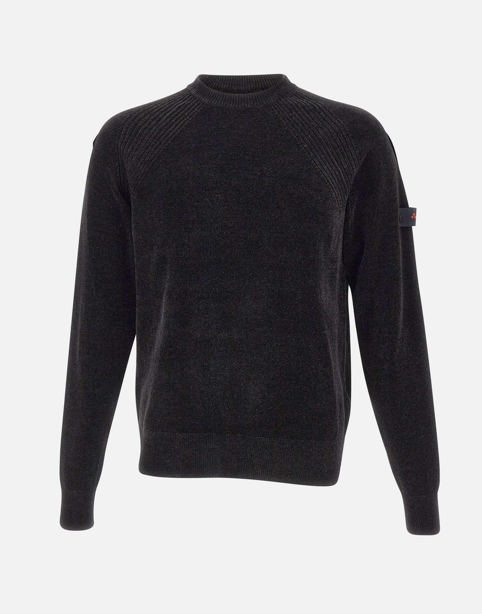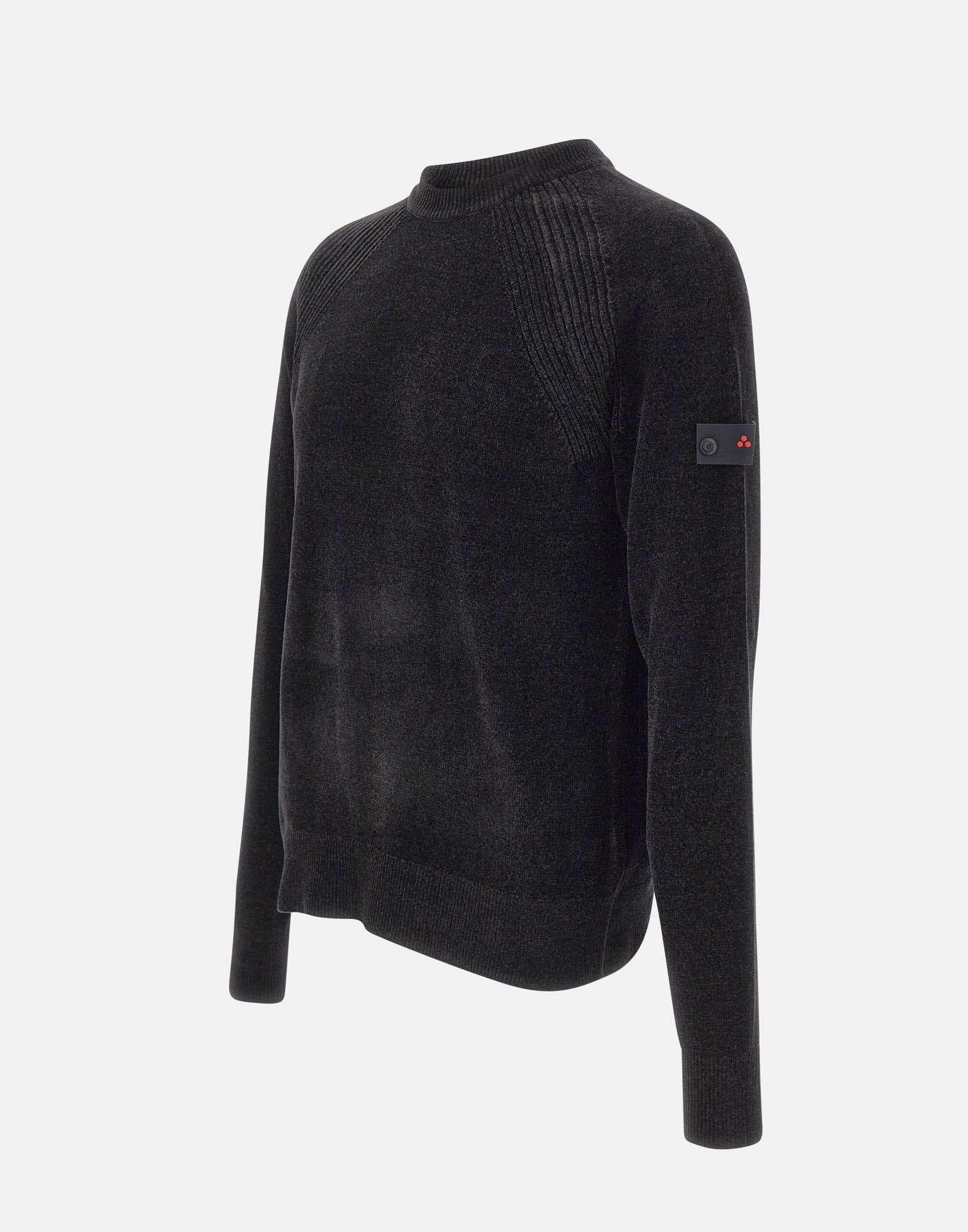 Maglia uomo Peuterey "Sironi 01" in tricot di morbida ciniglia rasata nera, caratterizzata da una superficie vellutata e da una mano calda e avvolgente. Il modello presenta girocollo e dettagli a costine su collo, polsini e vita, che definiscono la vestibilità con eleganza e comfort. Sulla manica sinistra è applicato con discrezione il logo Trilogy tramite piccoli bottoncini, simbolo iconico del brand. Un capo classico e intramontabile, reso contemporaneo dalla preziosità del tessuto, ideale per un look casual di qualità.