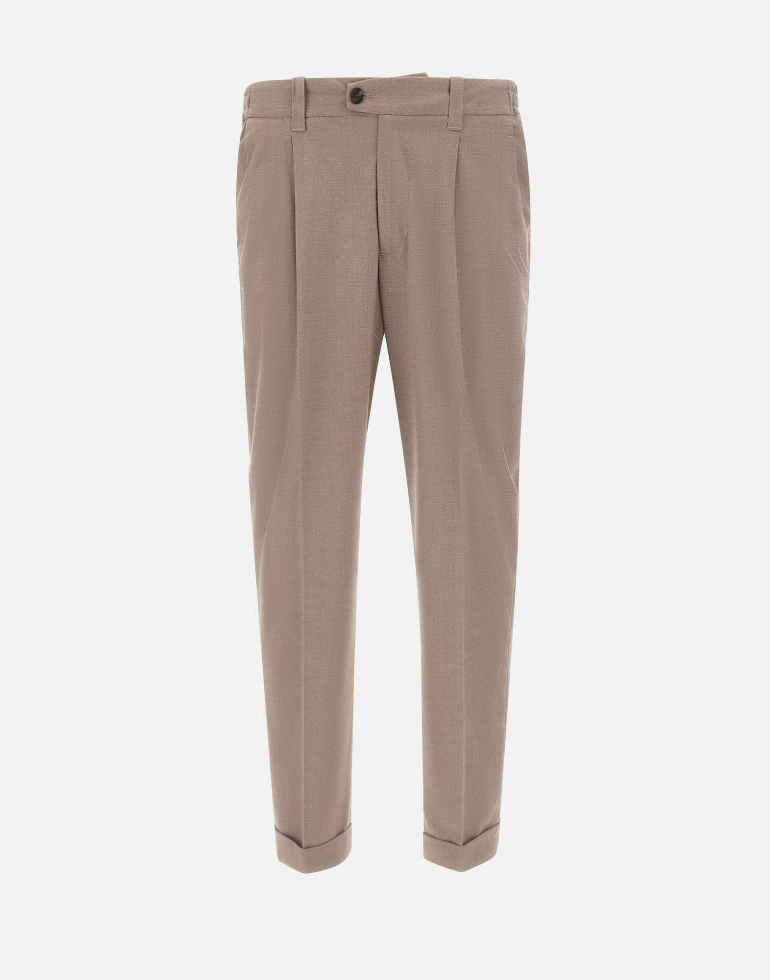 Pantalone uomo Devore Incipit beige, perfetto per un'eleganza contemporanea e versatile. Realizzato con chiusura a zip nascosta e bottone, presenta tasche anteriori all'italiana e tasche posteriori a filetto. Gli inserti elasticizzati sui fianchi assicurano comfort ottimale, mentre le pinces frontali donano struttura alla linea regolare. L’orlo con risvolto da 4 cm completa il design sofisticato. Ampiezza fondo: 18cm.