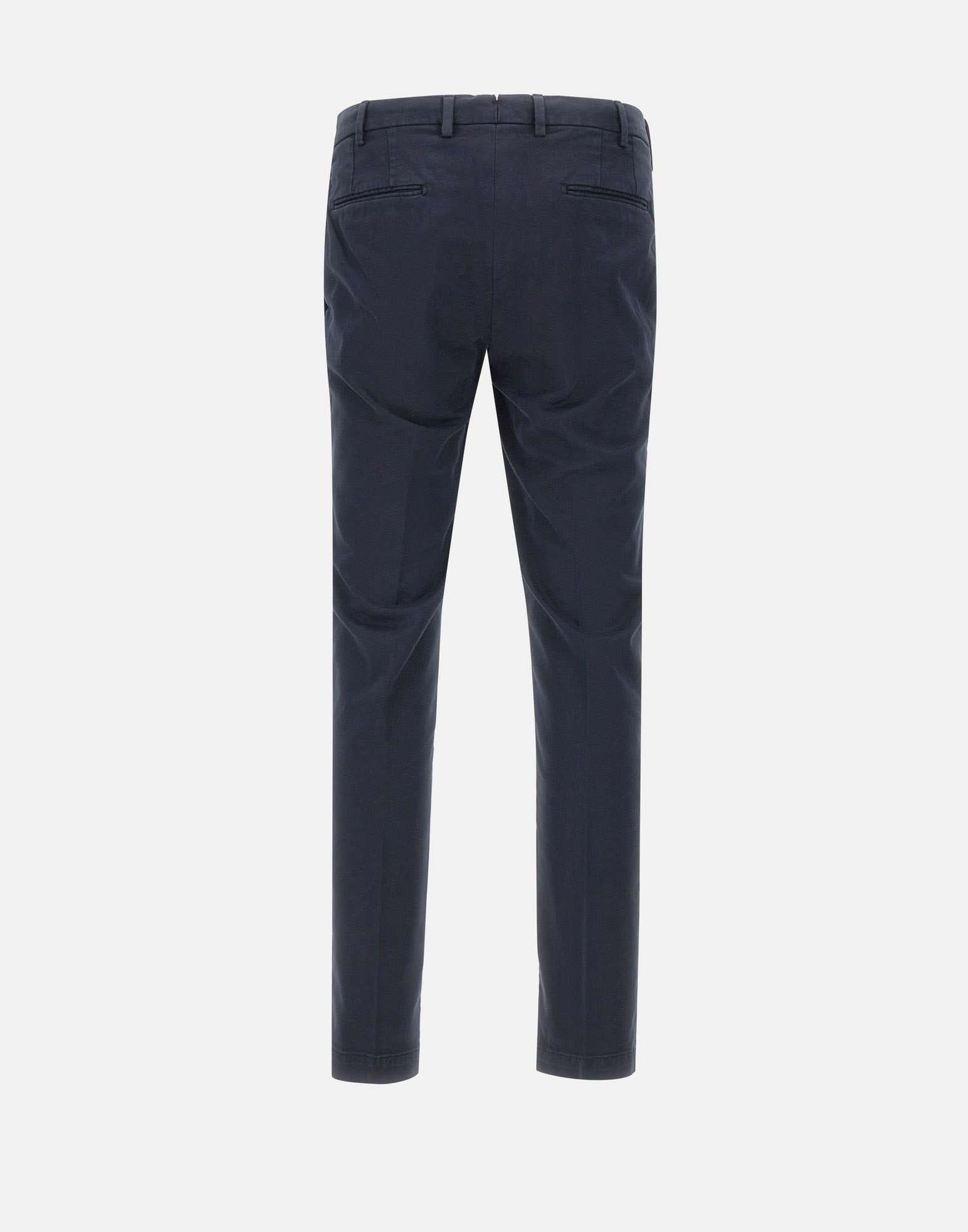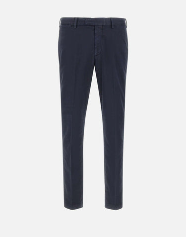 Pantalone uomo Devore Incipit in cotone blu scuro, dal design essenziale e versatile. Il modello presenta gamba dritta e vestibilità regolare, chiusura con zip nascosta e bottoni, tasche anteriori all'italiana e tasche posteriori a filetto. Un capo pratico e raffinato, ideale per completare look casual o più formali. Ampiezza fondo: 17cm. Made in Italy.