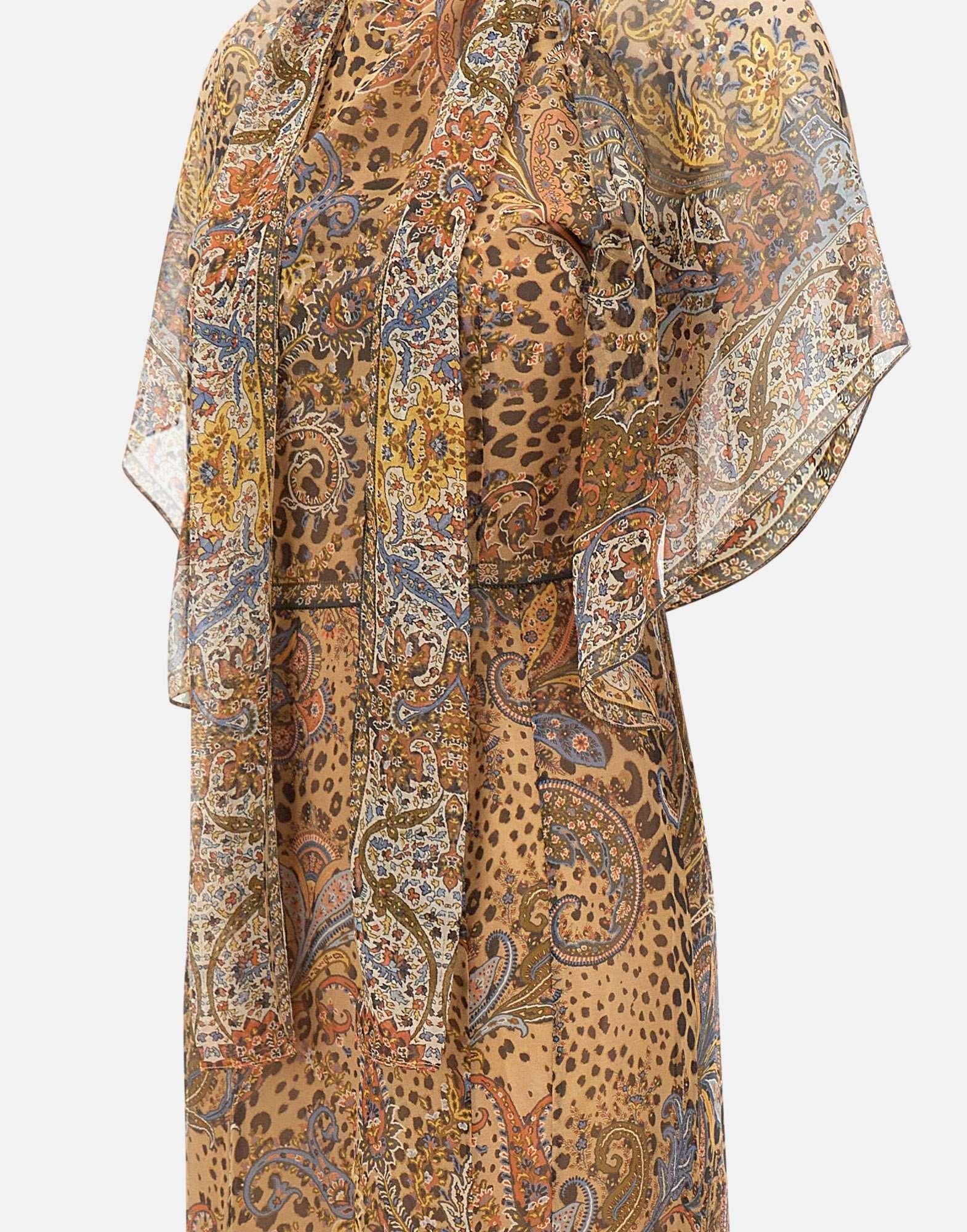 Abito lungo in seta con foulard e motivo paisley animalier
