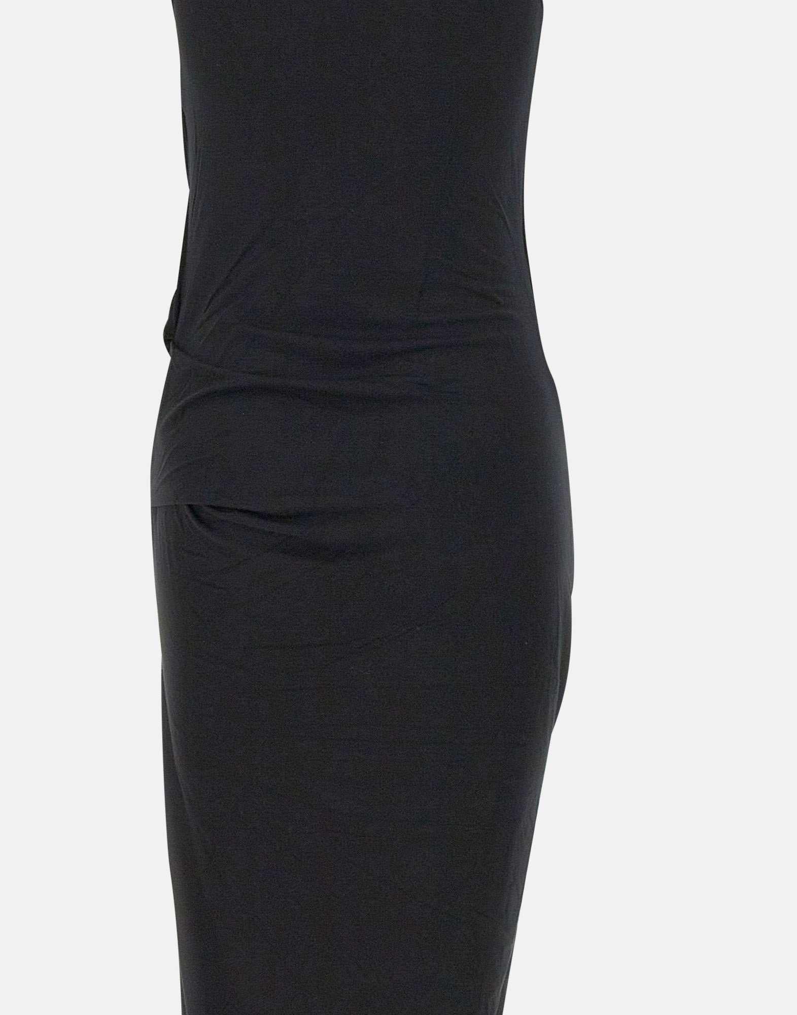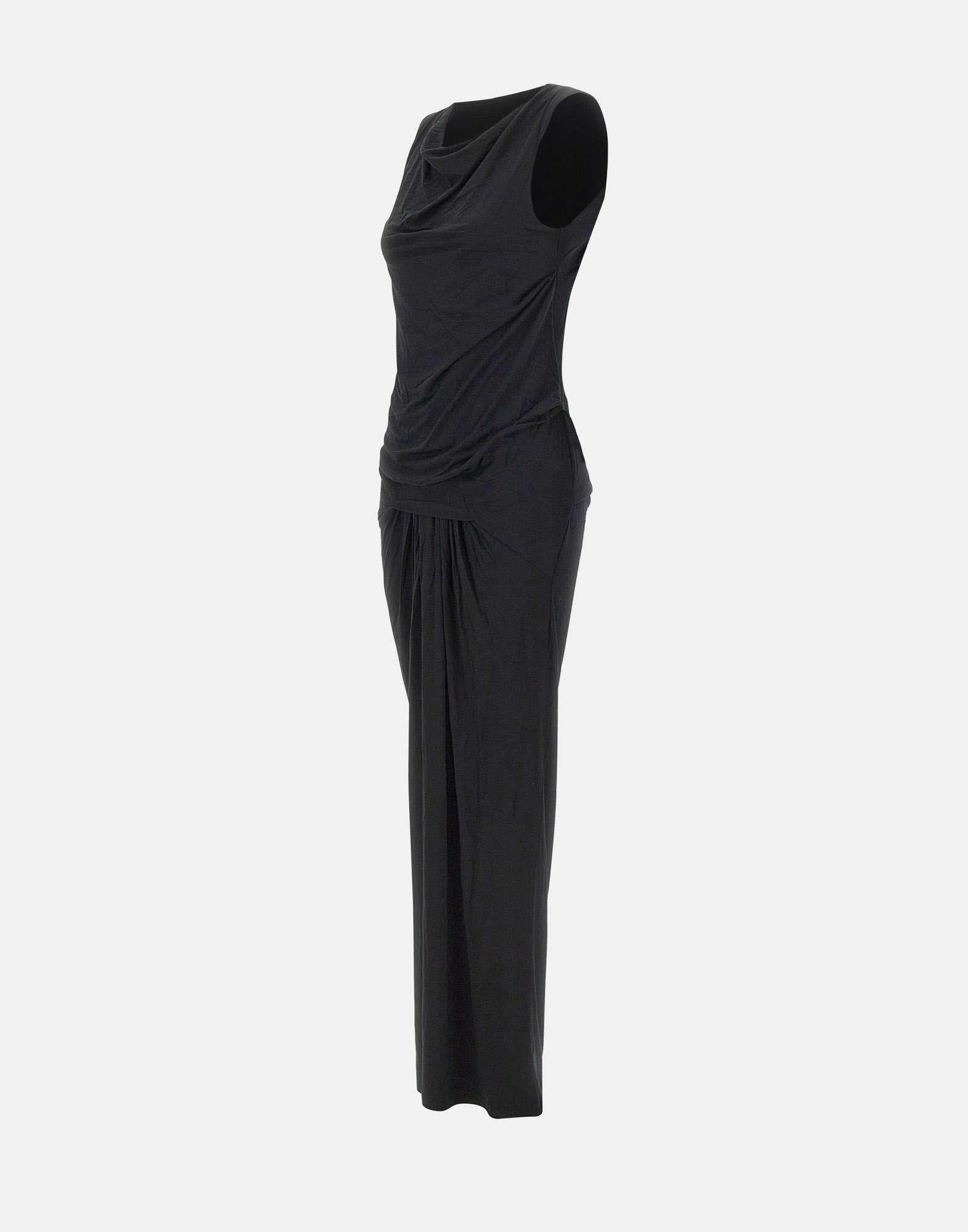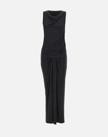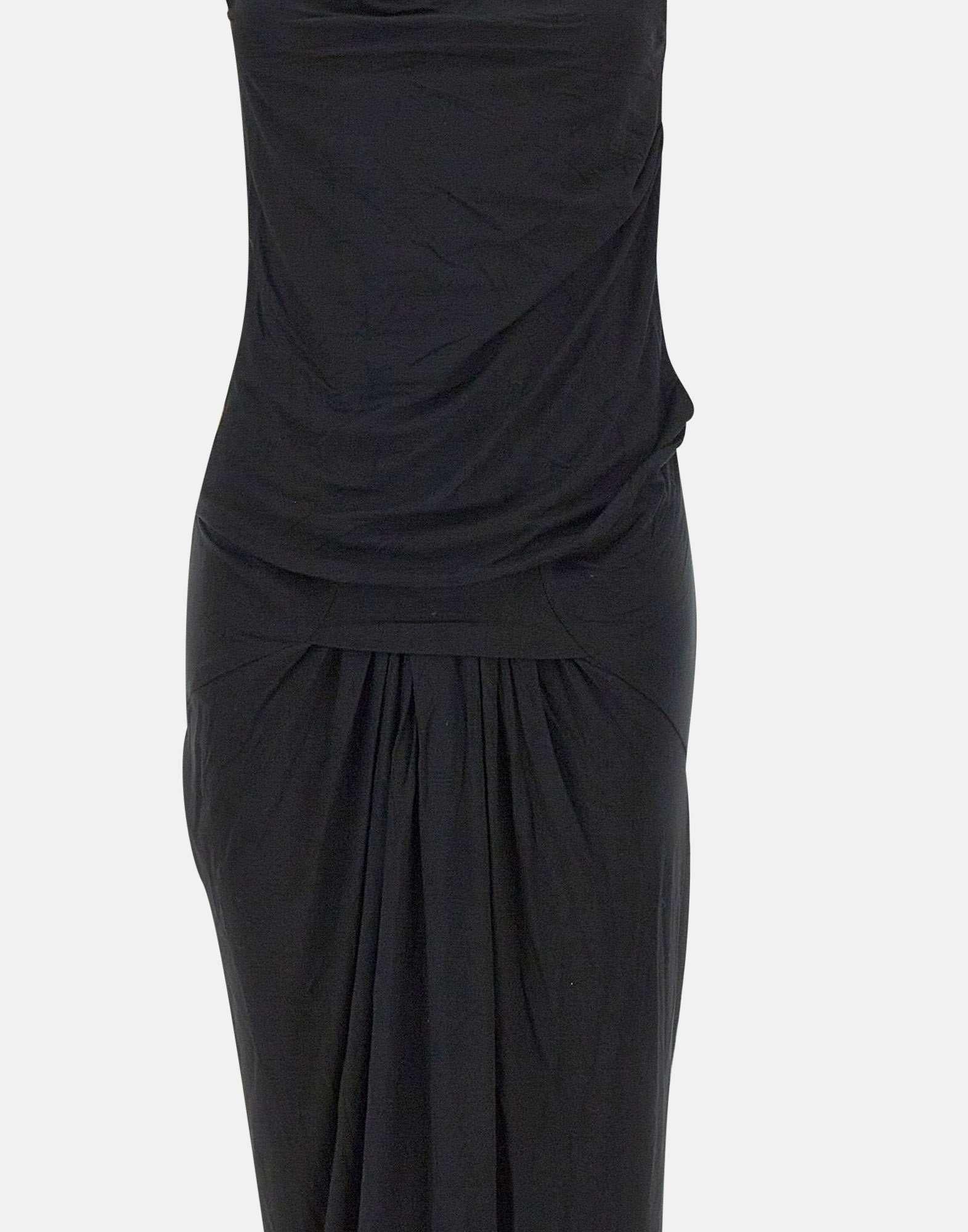 Abito donna Entire Studios "Drape Dress" realizzato in viscosa elasticizzata color nero, pensato per un'eleganza contemporanea dal carattere essenziale. Il modello è lungo fino al pavimento, senza maniche, con scollo drappeggiato che crea un effetto fluido sul davanti. Le arricciature in vita definiscono la silhouette e aggiungono movimento alla linea. La vestibilità aderente valorizza le forme con un look sofisticato.