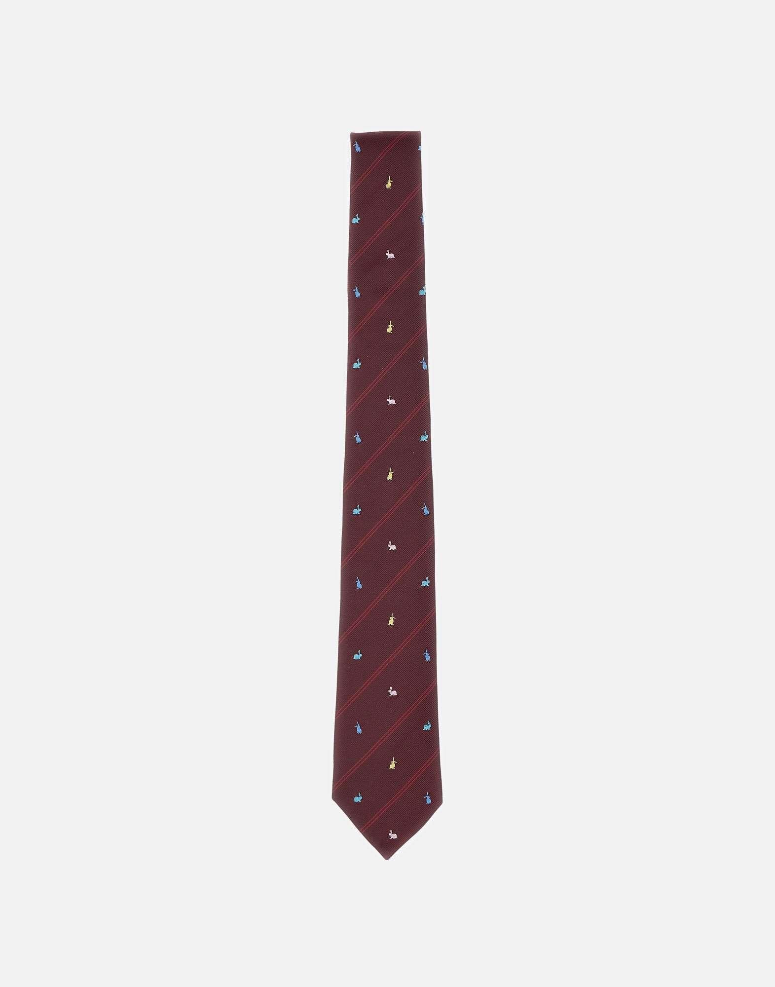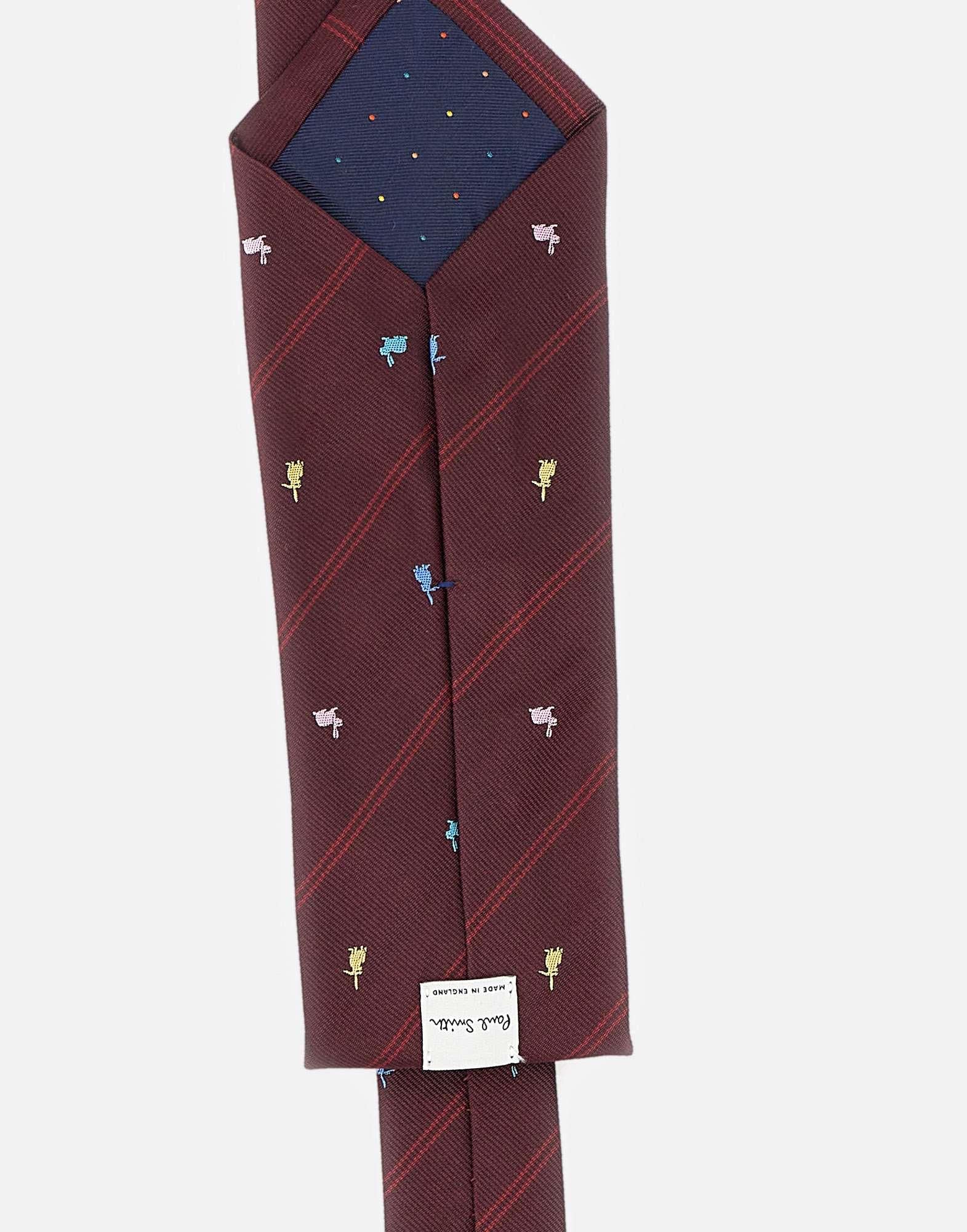 Cravatta Paul Smith "Tie Rabbit stripe" in seta borgogna, impreziosita da un raffinato motivo con righe e coniglietti e rovescio a contrasto a pois. Con una larghezza di 8 cm, rappresenta un accessorio elegante e distintivo, ideale per completare look formali con un tocco di stile britannico. Made in Italy, sinonimo di qualità e artigianalità.