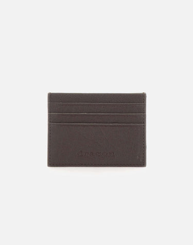 Portacarte donna Dragon Diffusion in pelle color testa di moro, arricchito dal logo impresso sul fronte e da un elegante intreccio check sul retro. Dispone di quattro scomparti per carte, offrendo praticità e stile in un formato compatto. Un accessorio raffinato e funzionale, ideale per chi cerca qualità artigianale e design distintivo. Altezza 7 cm, larghezza 10 cm.