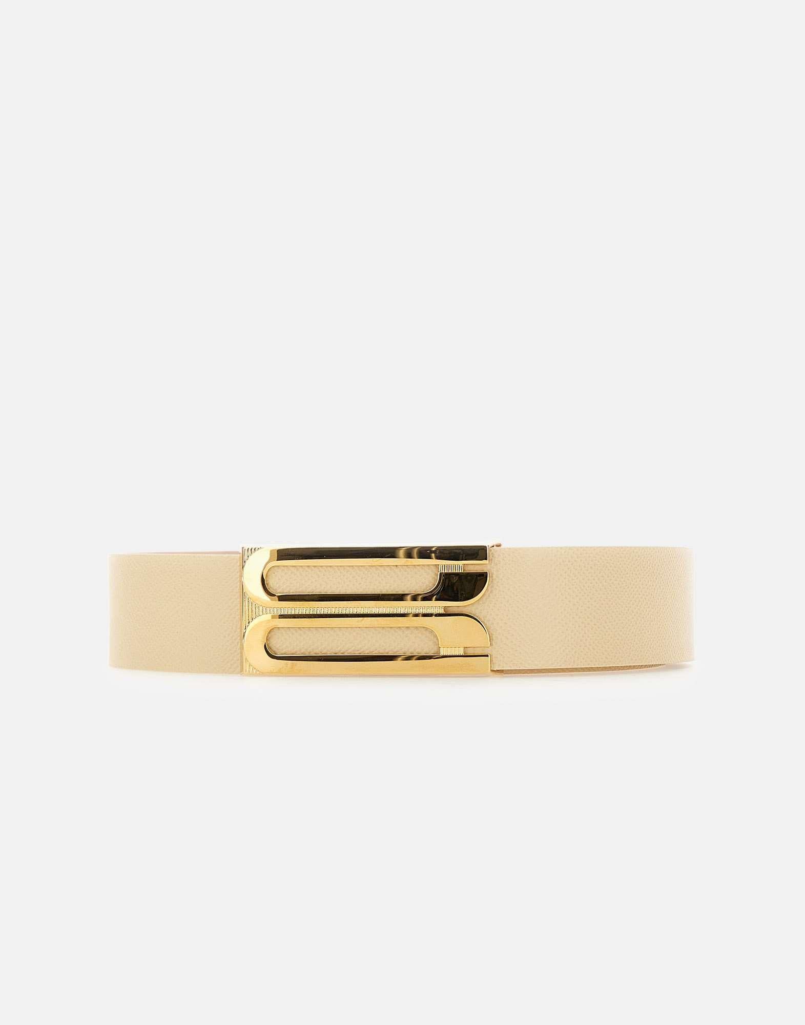 Cintura Victoria Beckham modello "Frame Belt Jumbo", realizzata in pelle bottalata color panna. Caratterizzata da fibbia logata in metallo dorato e dalla larghezza importante di 4 cm, è un accessorio statement che definisce la silhouette con eleganza. Made in Italy. Custodia in tessuto inclusa.