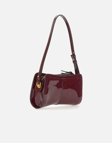 Borsa a spalla "Keira" Gianni Chiarini in vernice, colore wine berry, manico superiore, galvanica oro, chiusura superiore con zip, scomparto unico,tracolla regolabile e removibile 110cm circa, logo esterno laterale, made in Italy , dustbag inclusa, misure: 25cm lunghezza , 14cm profondità, 13cm altezza.