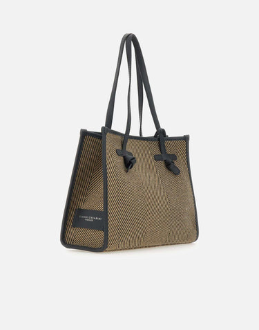 Borsa a spalla Marcella Club Gianni Chiarini "Marcella" in cotone, fantasia a righe nei toni beige e nero, doppio manico superiore, chiusura con bottone magnetico, pochette inclusa, scomparto unico, 32cm lunghezza, 11cm profondità, 26cm altezza, dustbag inclusa, made in Italy