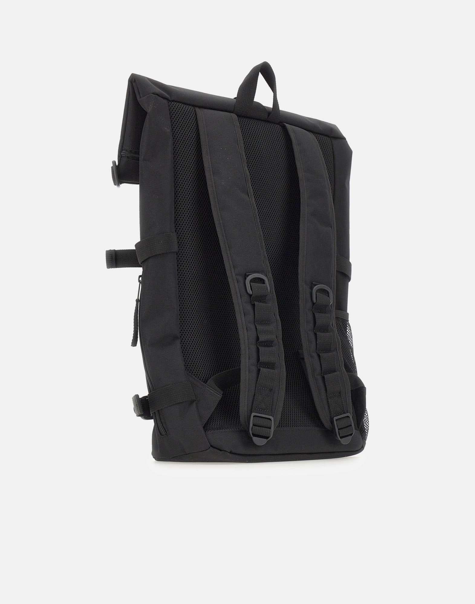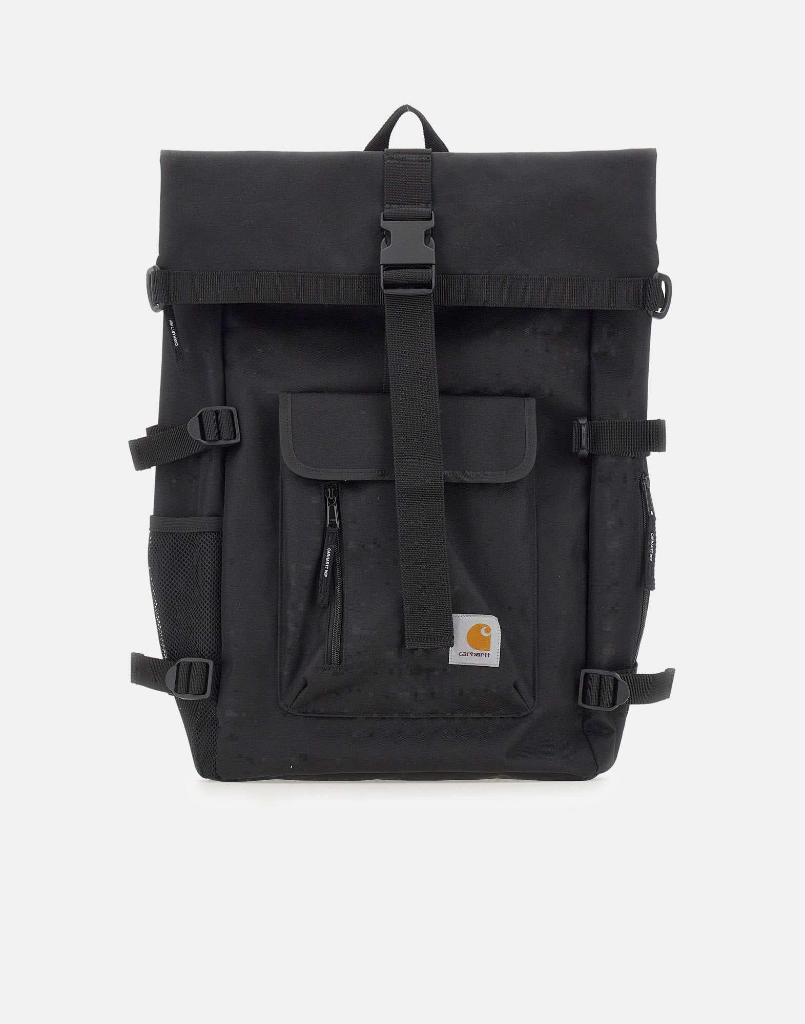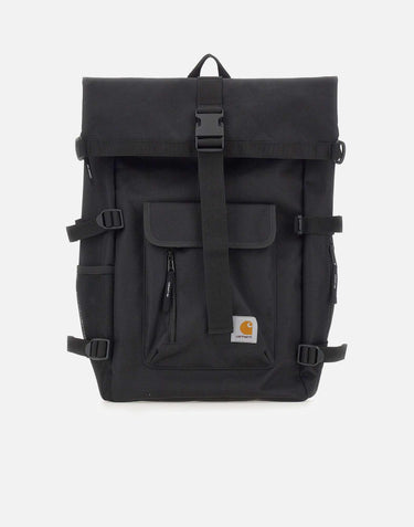 Zaino uomo Carhartt Wip "Philis" color nero, espandibile e realizzato in tela di poliestere riciclato impermeabile. Lo scomparto principale è dotato di chiusura zip e patta, mentre all'interno è presente una tasca imbottita per laptop fino a 15''. Completano il modello spallacci regolabili e una tasca esterna con patta, velcro e zip, rifinita da patch logo frontale. Dimensioni: 50x33x13 cm.