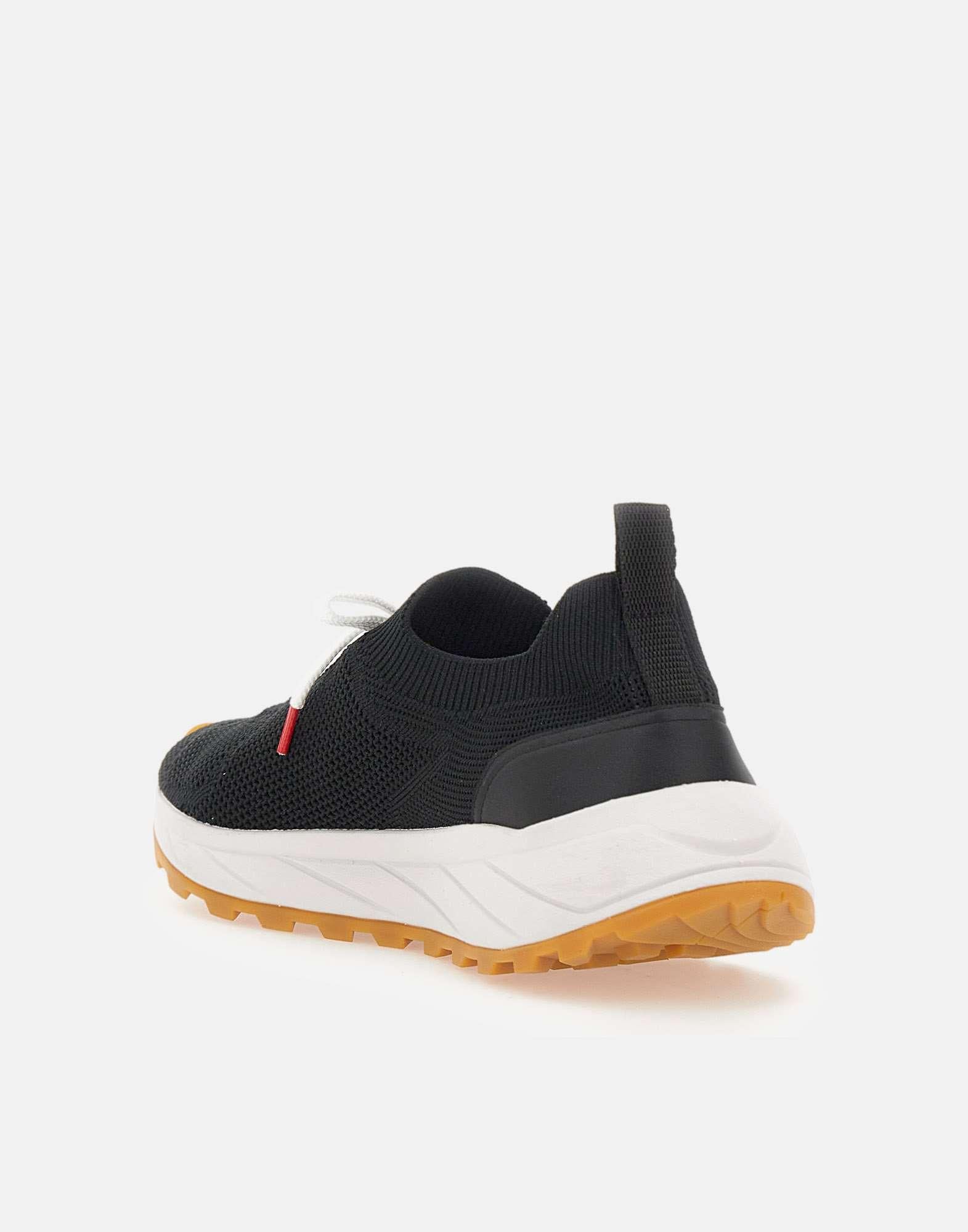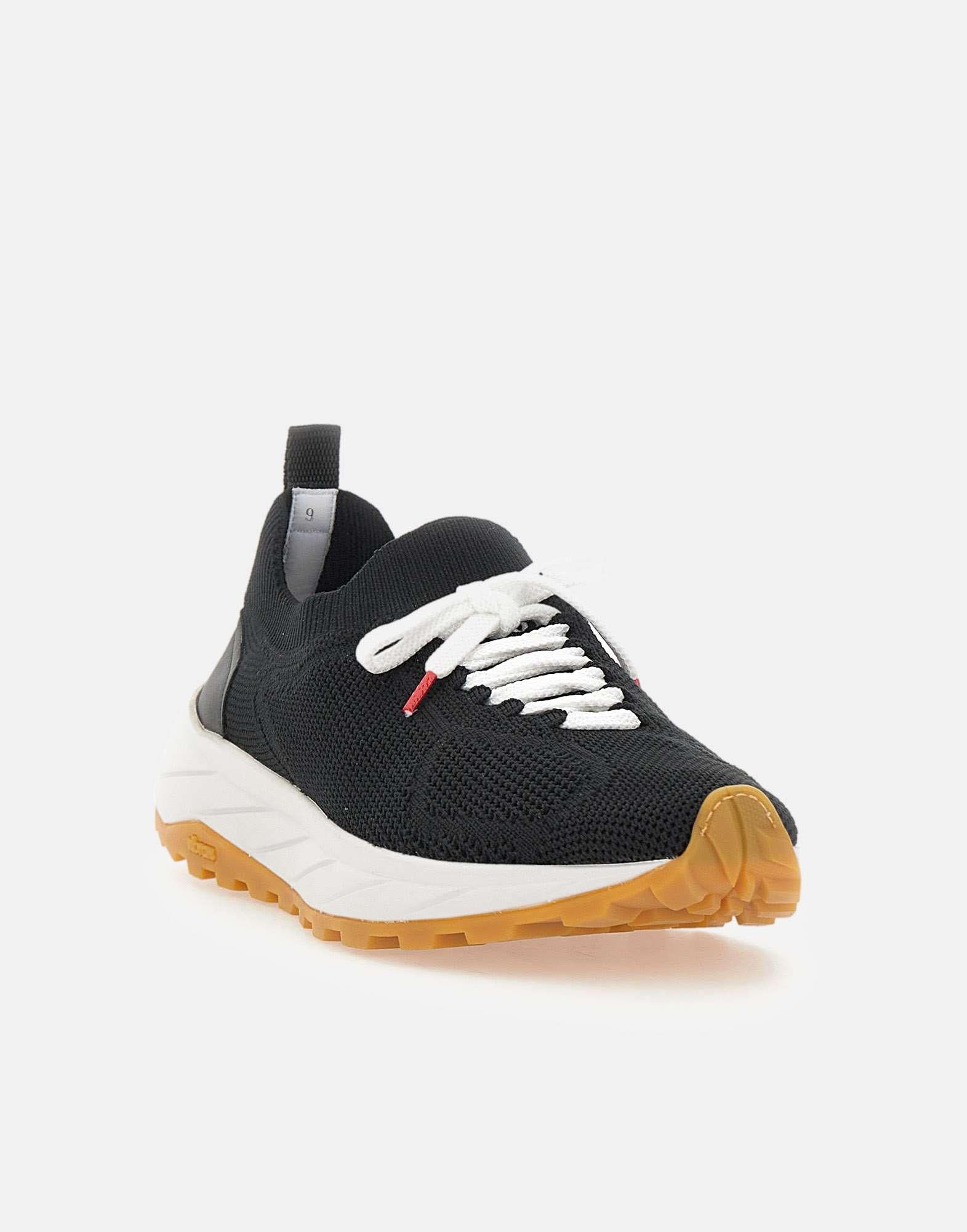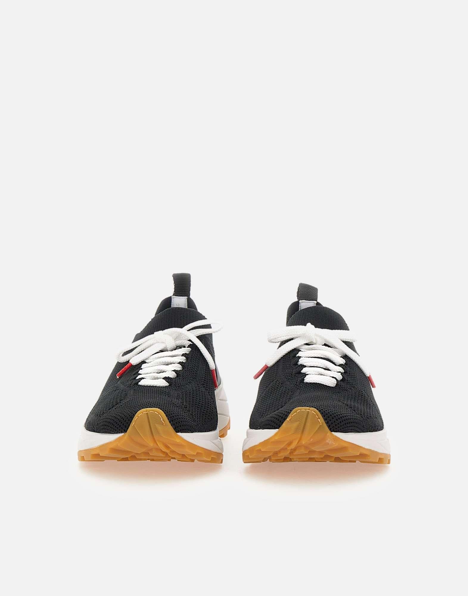 Sneakers Kiton "Fits", colore nero, un mix perfetto di eleganza sportiva e artigianalità italiana. Realizzate con tomaia in tessuto di alta qualità con inserto in pelle sul retro, presentano una punta tonda e lacci a contrasto per un tocco di stile distintivo. La suola in gomma dentellata Vibram garantisce un grip eccezionale e massimo comfort ad ogni passo. Dotate di soletta in tessuto e tirante sul retro per facilitare la calzata, queste sneakers offrono una vestibilità regolare adatta a ogni occasione. Prodotto in Italia, sinonimo di eccellenza manifatturiera e viene fornito con custodia protettiva inclusa.