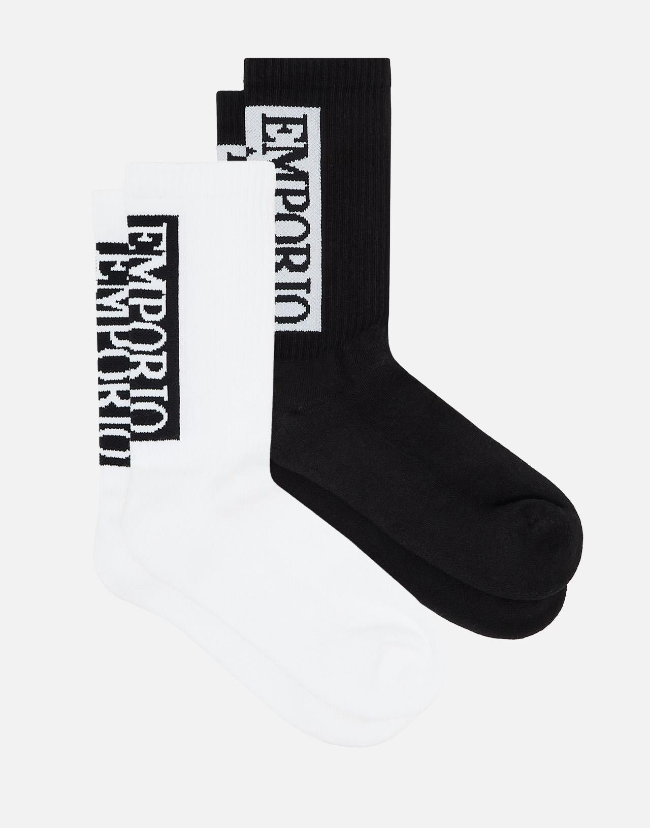 Comfort e stile quotidiano con il pack da due paia di calze Emporio Armani "Basic", realizzate in morbida spugna di cotone stretch. Il design pulito è valorizzato dal logo Emporio Armani decorativo, che dona un tocco distintivo al modello. Il colore bianco le rende versatili e facili da abbinare a qualsiasi tipo di calzatura. Taglia unica.