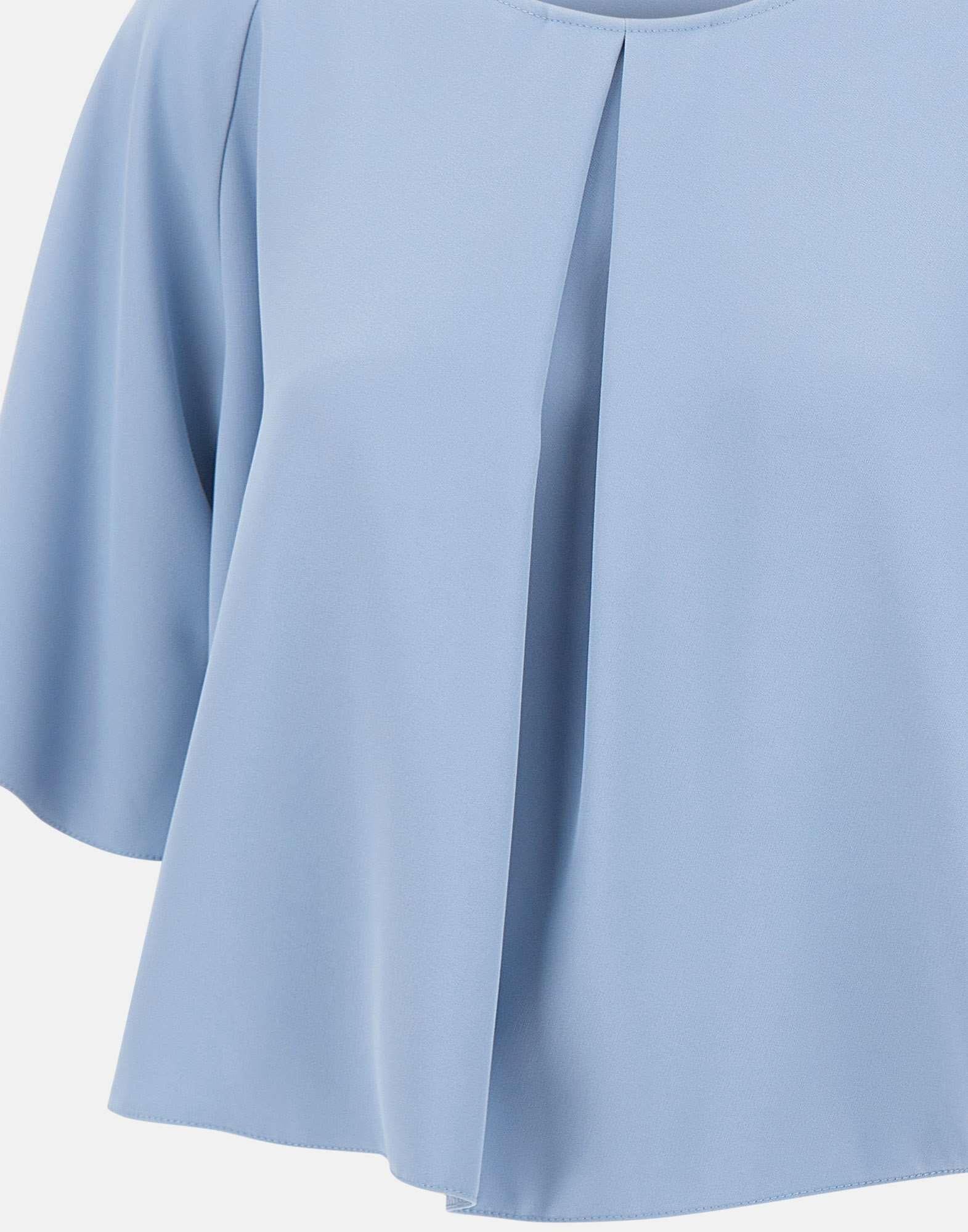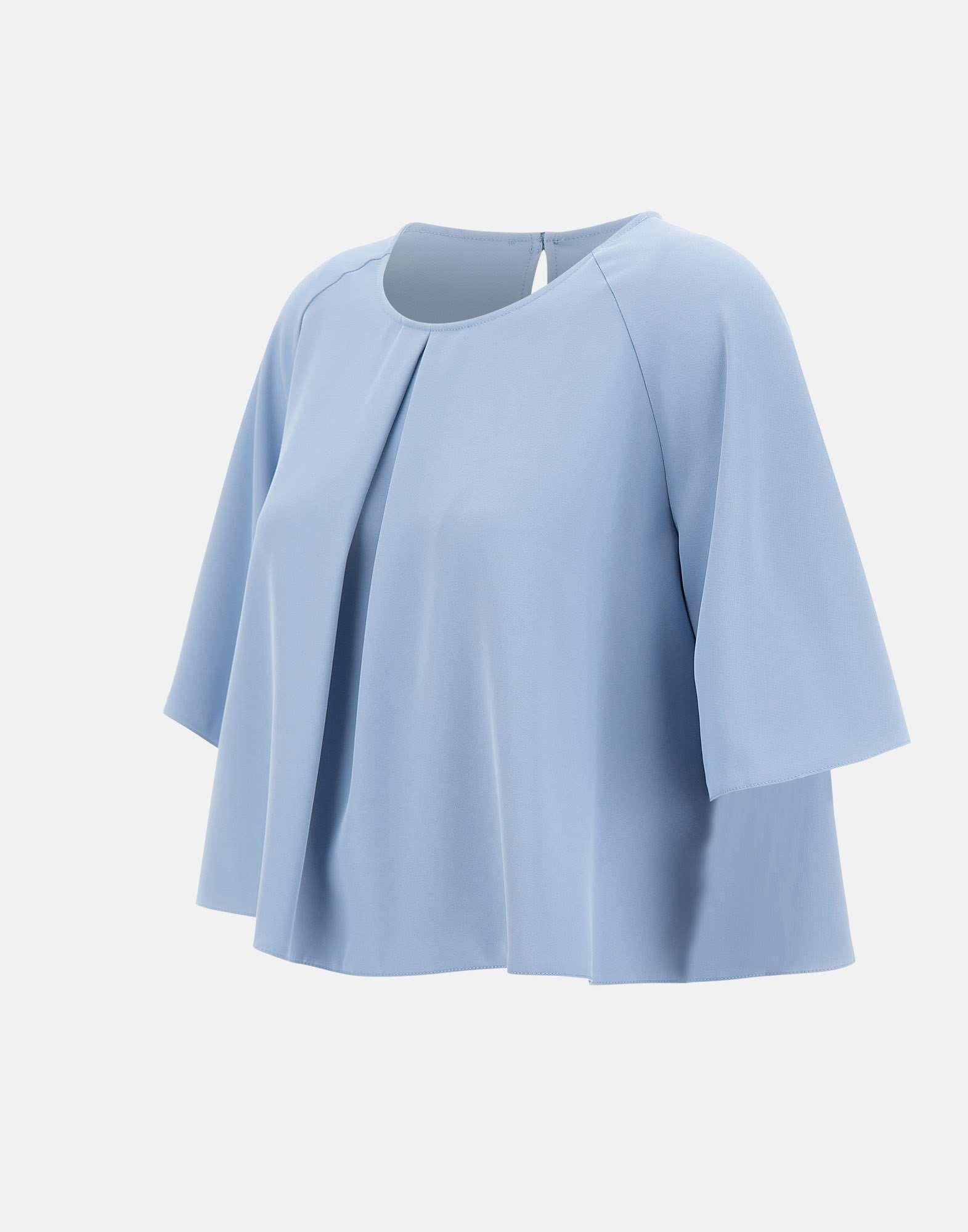 Blusa Kaos realizzata in tessuto color carta da zucchero, con taglio corto e linea svasata dal gusto essenziale. Il modello presenta maniche corte e scollo tondo, completati da una piccola apertura con bottoncino sul retro. Sul davanti, la piega centrale aggiunge movimento e valorizza la silhouette. Vestibilità rilassata. Made in Italy.