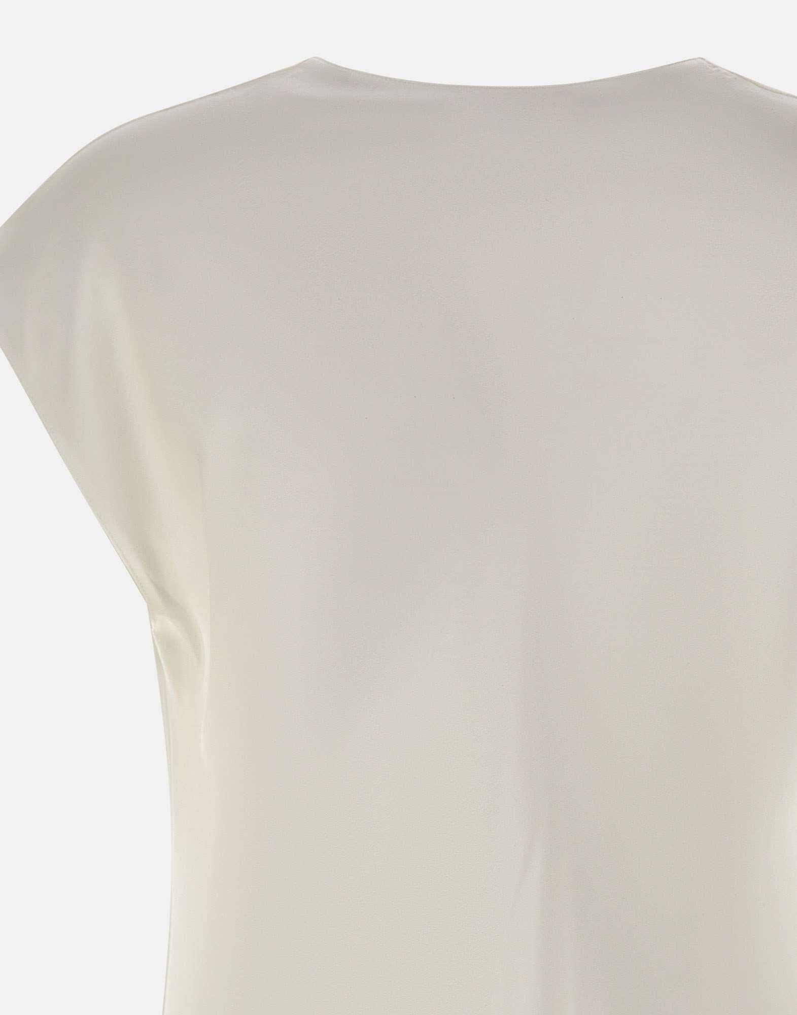 Blusa donna Vince realizzata in raso di seta color bianco, pensata per un'eleganza essenziale e luminosa. Il modello è caratterizzato da scollatura a cappuccio che crea un drappeggio semplice e raffinato, valorizzando la fluidità del tessuto. Le maniche corte completano la linea pulita, mentre la vestibilità rilassata assicura comfort e versatilità. Ideale per look casual chic o più eleganti.