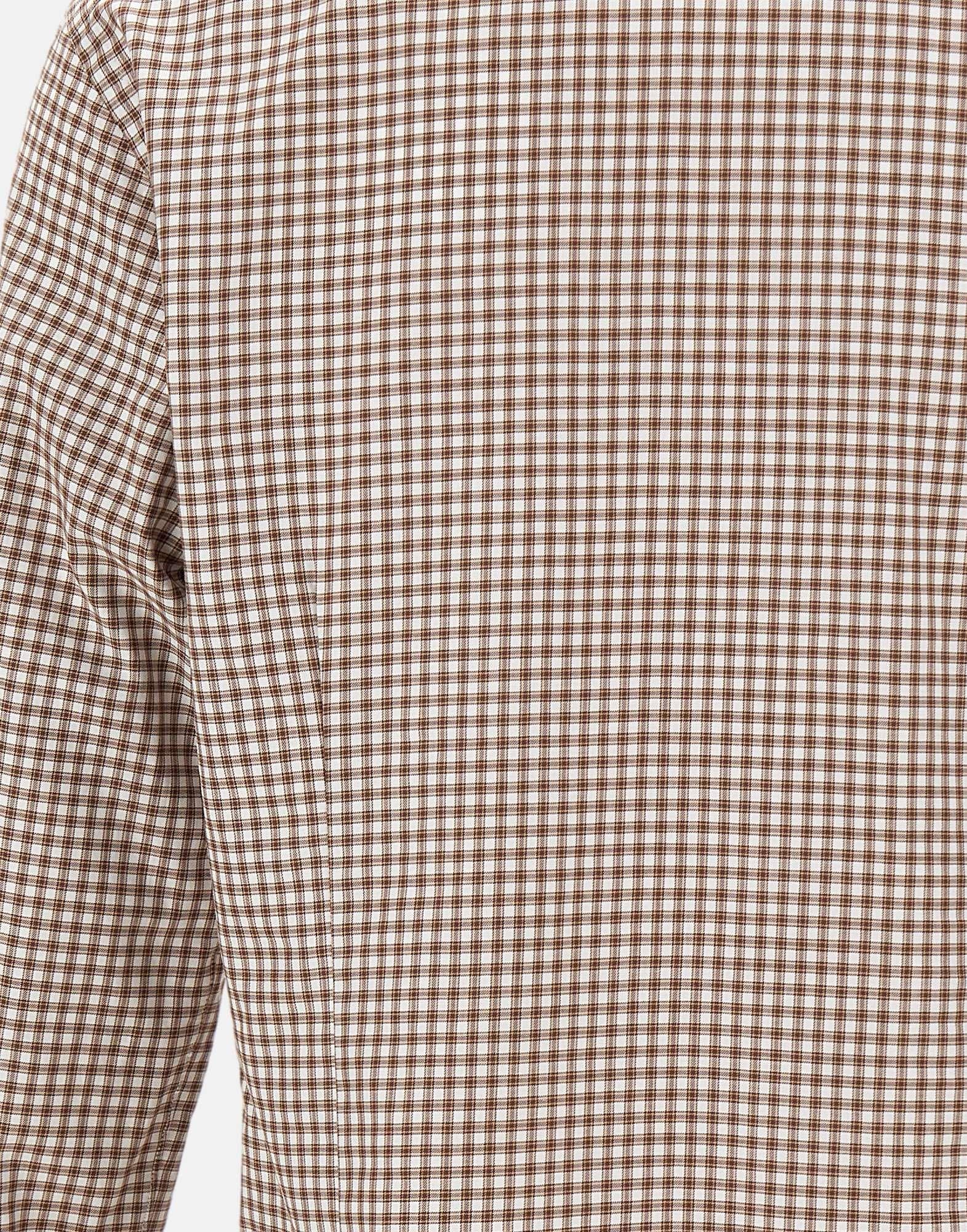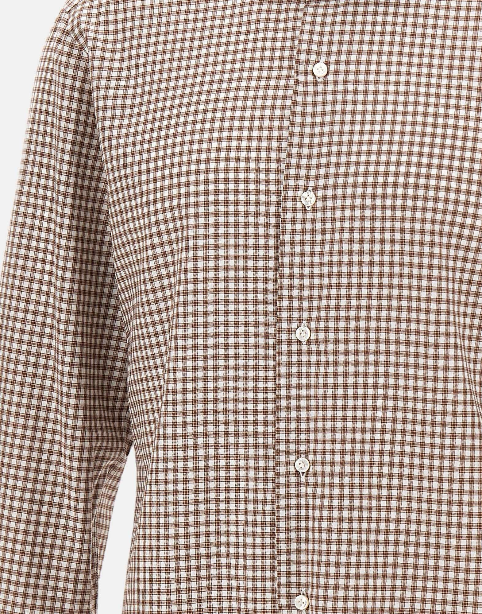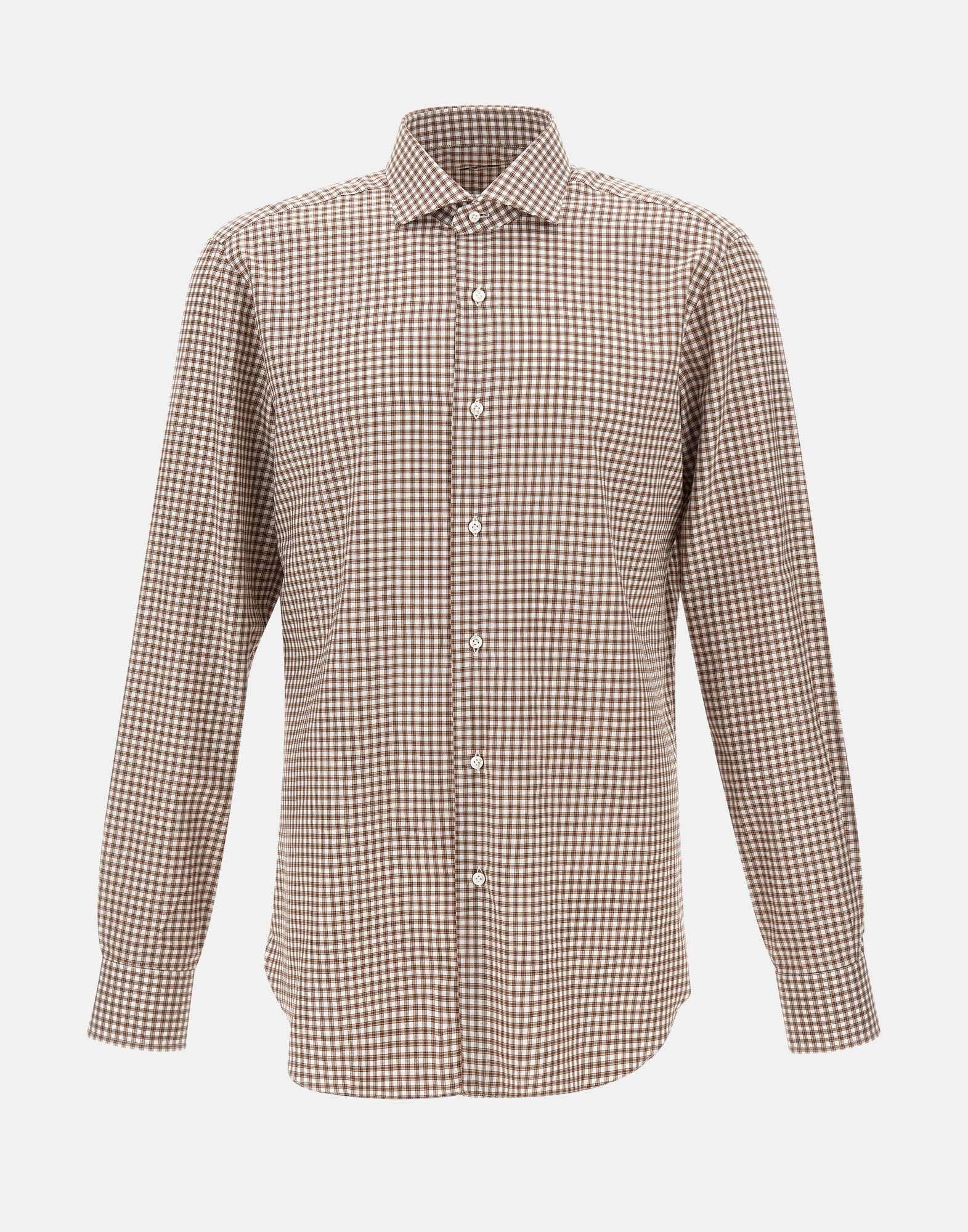 Camicia uomo Barba in puro cotone con fantasia a quadretti nei toni del marrone e bianco, realizzata a mano con la consueta maestria sartoriale del brand. Presenta colletto classico, maniche lunghe, chiusura con bottoni in madreperla e polsini con bottoni doppio uso. La vestibilità slim fit valorizza la silhouette con eleganza. Made in Italy, simbolo di qualità e artigianalità napoletana.