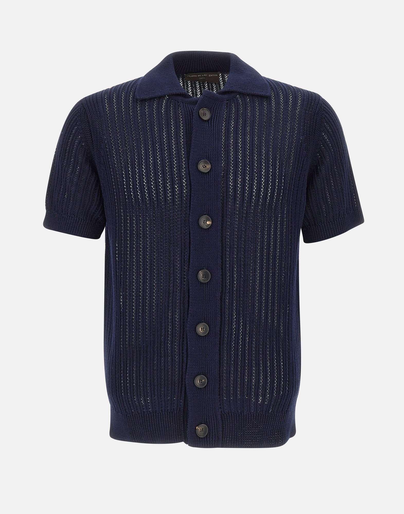 Camicia uomo Filippo De Laurentiis in maglia di cotone color blu oltremare, definita da una trama operata che dona profondità e carattere al design. Il modello presenta maniche corte, bordi a costine e chiusura frontale con bottoni a contrasto, per un tocco distintivo e contemporaneo. Il regular fit garantisce comfort e una linea equilibrata, ideale per look estivi curati e versatili. Un capo di maglieria uomo dalla costruzione precisa, interamente made in Italy.