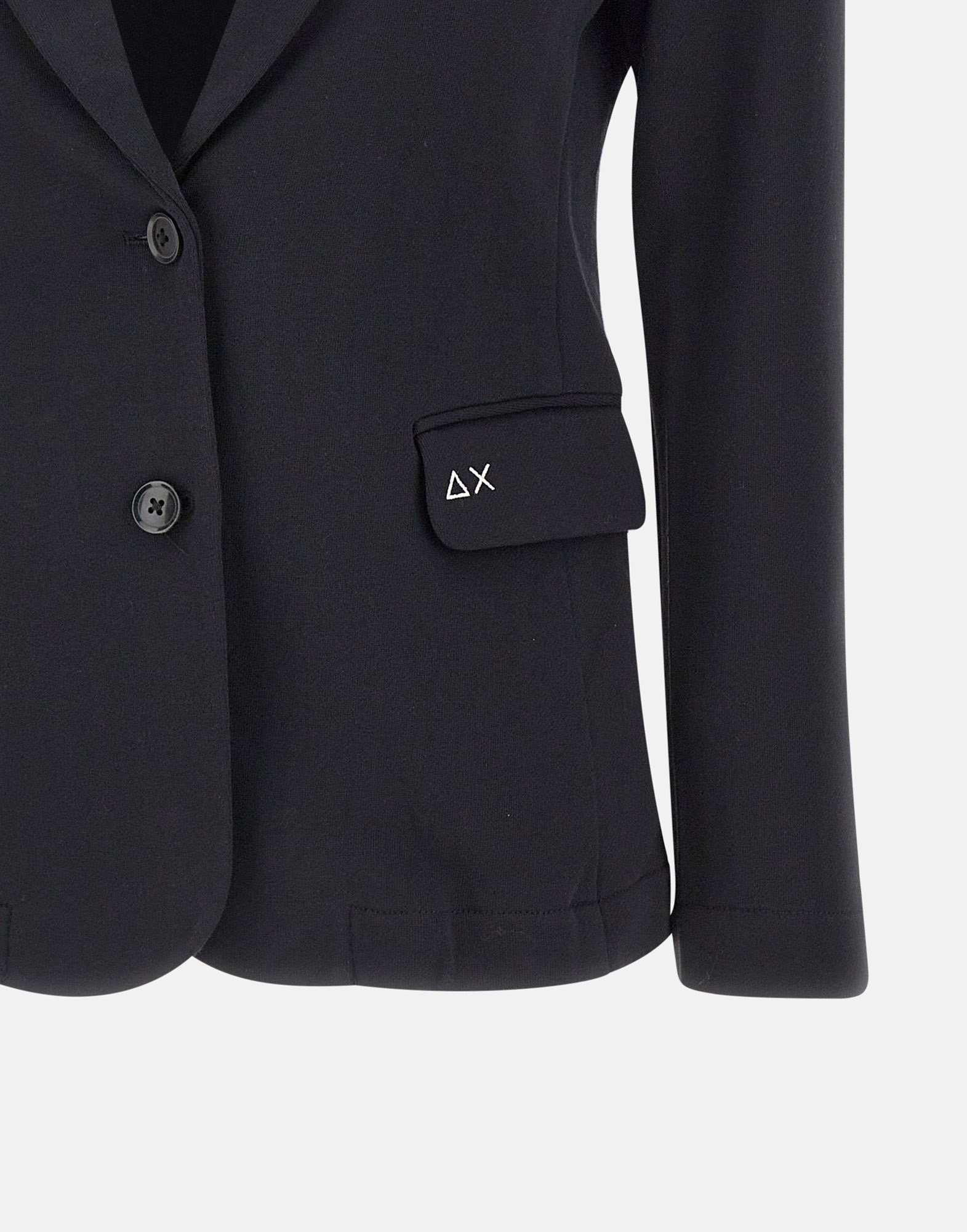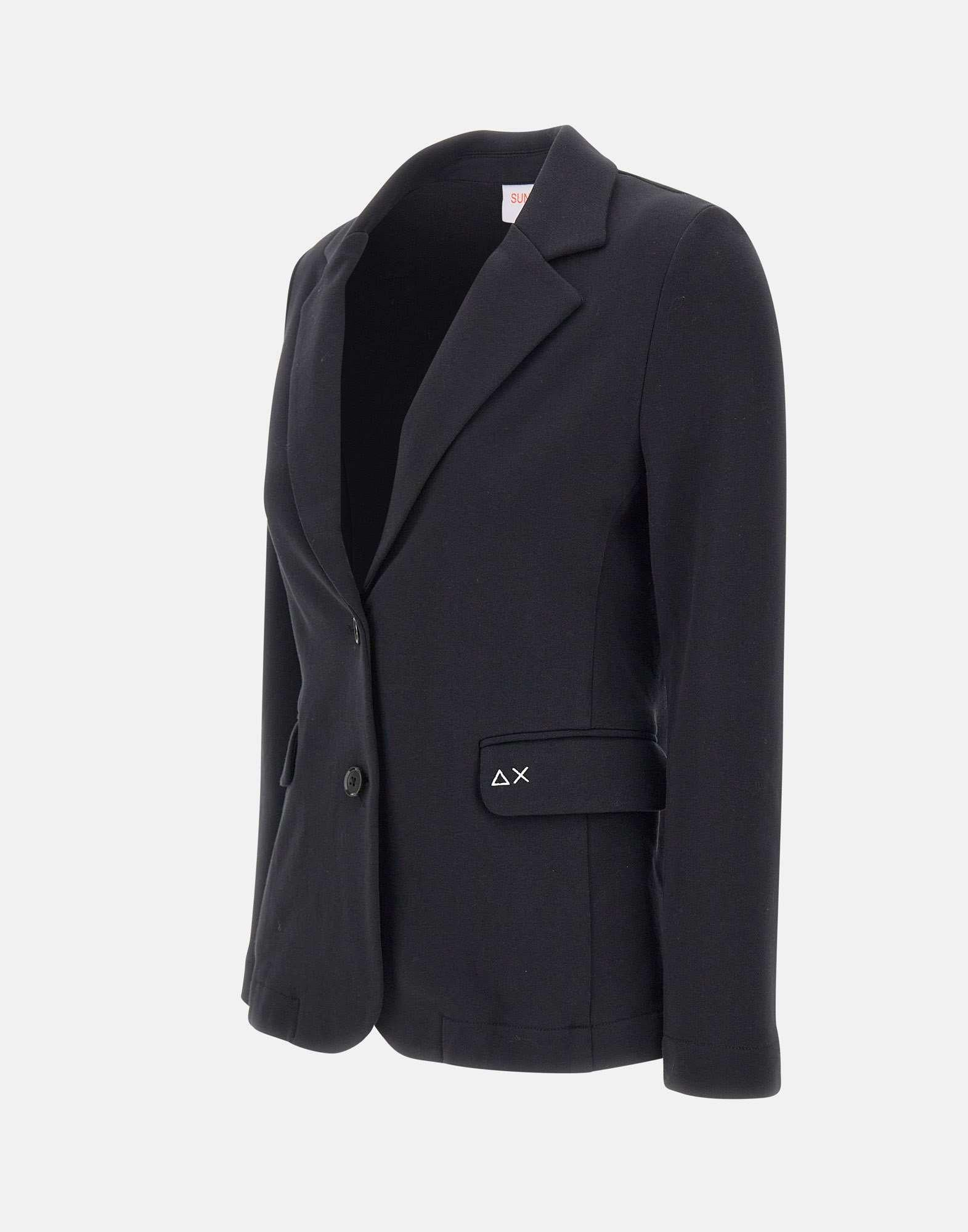 Blazer Sun68 "Blazer Basic" in felpa di misto cotone color nero, dal taglio moderno e confortevole. Presenta revers classico, chiusura frontale con due bottoni in tinta e tasche con patta. Il logo SUN68 ricamato a contrasto aggiunge un dettaglio distintivo al design pulito. La vestibilità regular fit garantisce equilibrio tra eleganza casual e praticità quotidiana.