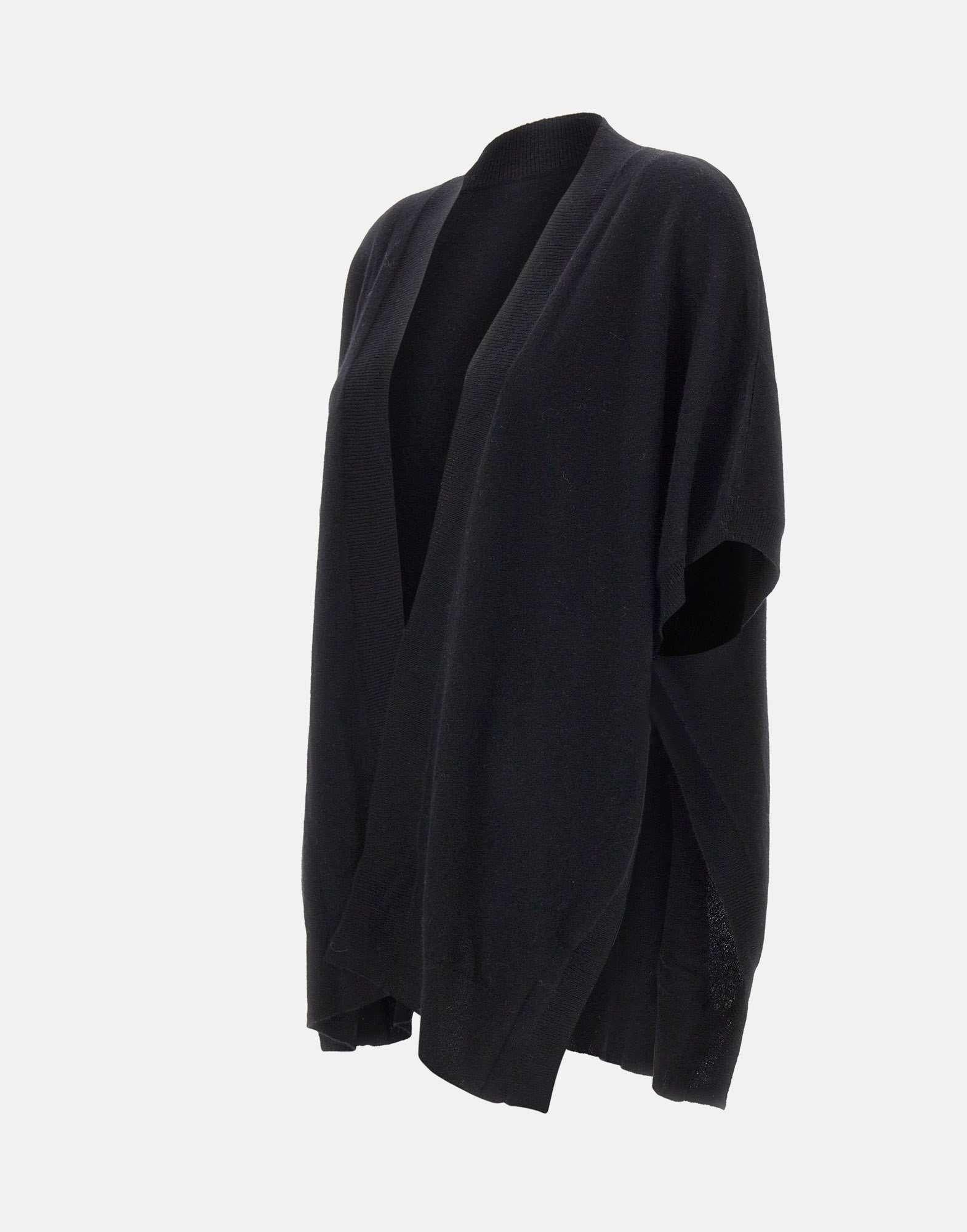 Mantella donna Not Shy Cashmere "Hallie" in puro cashmere 100% nero, dal design elegante e avvolgente. Caratterizzata da scollo con revers e orli a costine, può essere chiusa sotto le braccia grazie a pratici bottoncini, creando una silhouette morbida e strutturata. La vestibilità regolare la rende perfetta per completare con raffinatezza sia look casual che più sofisticati.
