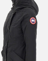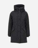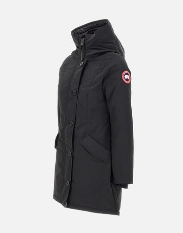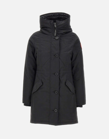 Parka donna Canada Goose "Rossclair", nero, media lunghezza, tessuto Arctic Tech per resistere al freddo e al vento, orlo posteriore più lungo con zip centrale per regolare la vestibilità, ampio cappuccio, patch logo iconica rossa sulla manica sinistra, mentoniera foderata in tessuto tricot, polsini rientranti in maglia a coste, chiusura frontale con maxi bottoni scuri e zip nascosta, due tasche taglio obliquo sul davanti con pattina, bottoni e logo, cinghie interne a zaino per trasportare il capo a spalla, due tasche interne, slim fit. ideale per la stagione autunnale ed invernale. Ogni prodotto di Canada Goose acquistato presso un rivenditore autorizzato è pienamente garantito contro i difetti di materiale e di manodopera per l'intera durata del prodotto stesso. Tecnologia THERMAL EXPERIENCE INDEX da -10 C° a -20 C°
