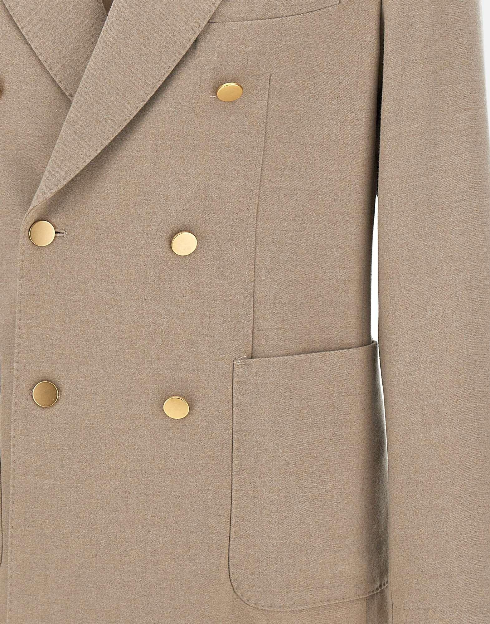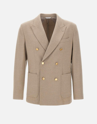 Blazer uomo Manuel Ritz color beige, modello doppiopetto sfoderato, con bottoni dorati che aggiungono un tocco distintivo. Il design presenta rever a lancia, due tasche a toppa e un taschino frontali, oltre a due spacchi sul retro che garantiscono comfort e liberta di movimento. I polsi con quattro bottoni e le finiture con impunture completano un blazer dallo stile contemporaneo e ricercato.