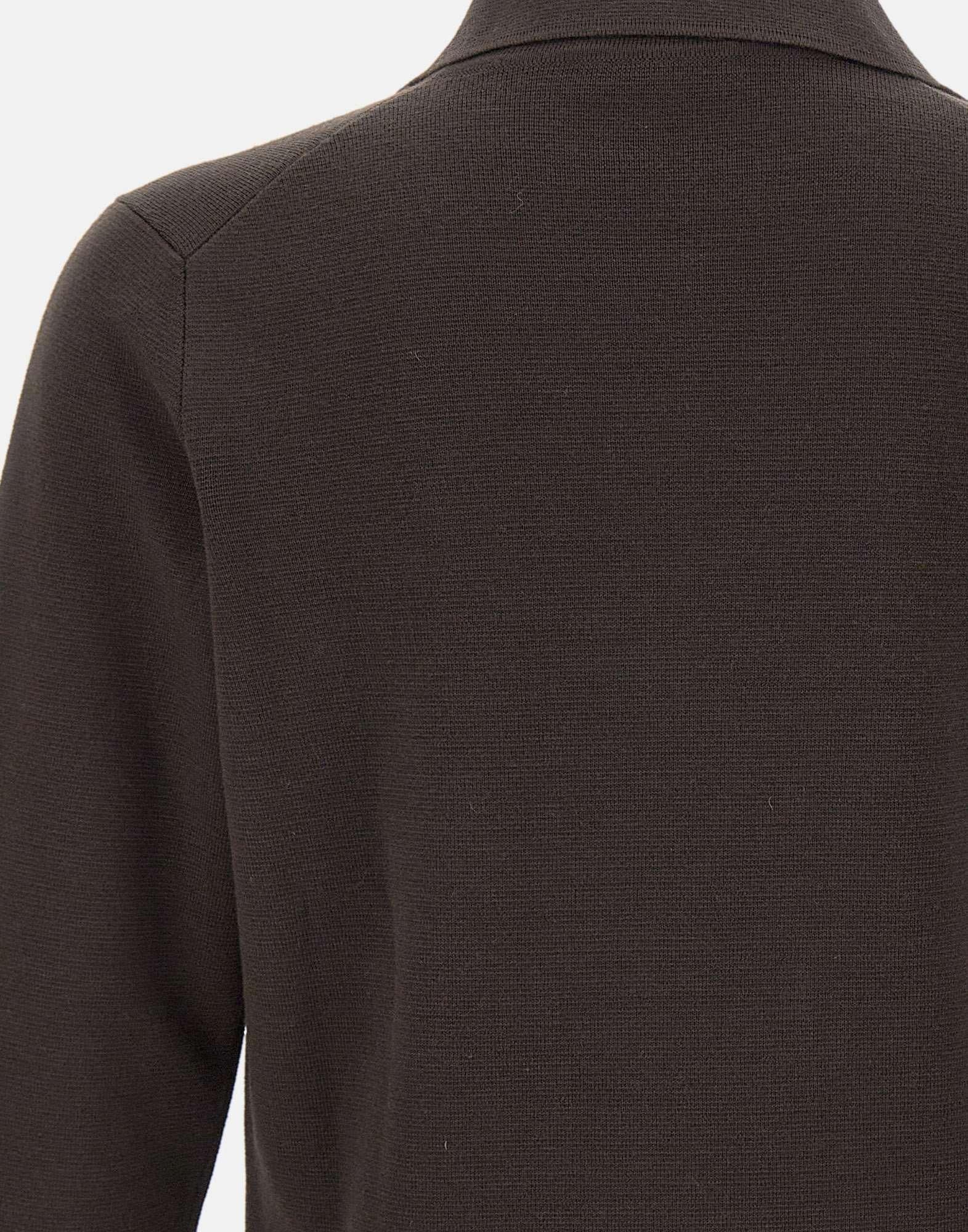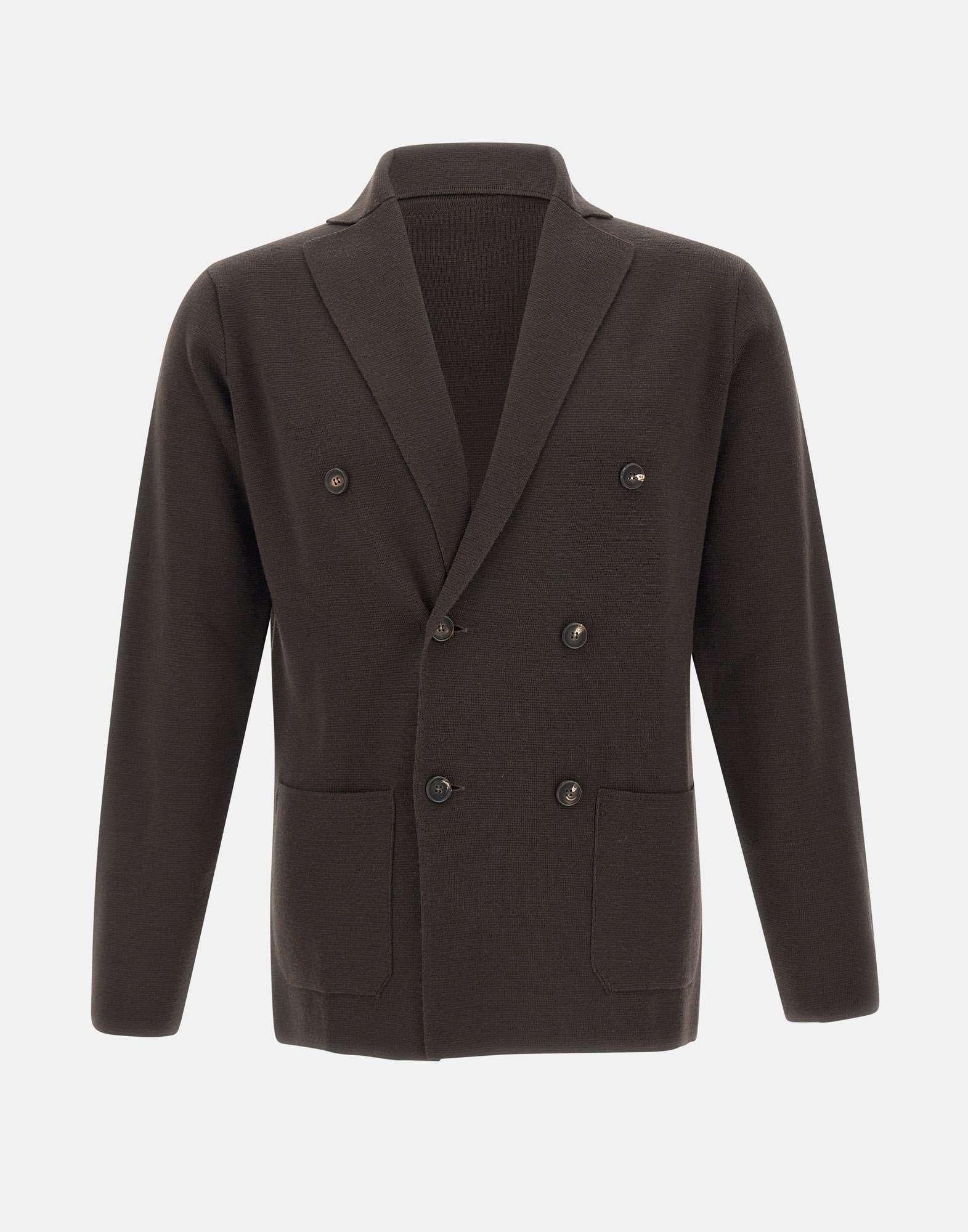 Blazer Filippo De Laurentiis uomo in lana merino extrafine, testa di moro, chiusura doppiopetto con bottoni in tinta, collo con rever a lancia, tasche frontali, regular fit. Made in Italy.