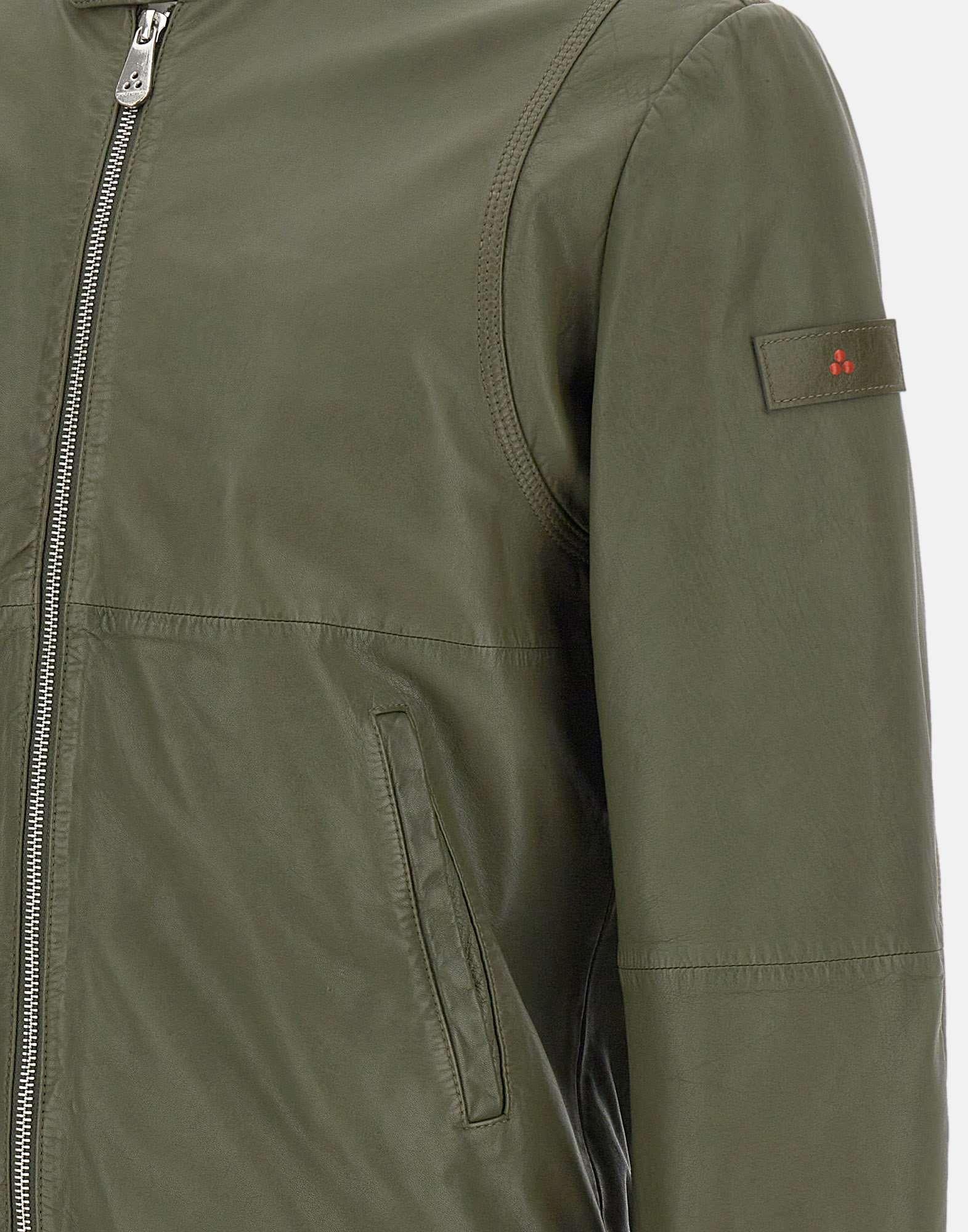 Giacca uomo Peuterey "Tureia PPT" realizzata in morbida pelle color verde militare, pensata per un outerwear dal carattere contemporaneo e premium. Il modello presenta colletto alla coreana con bottone e chiusura frontale con zip a doppio cursore, per una vestibilità pratica e versatile. Completano il design le tasche laterali a filetto, la fodera interna e i polsini e fondo in tessuto elasticizzato a costine che definiscono la linea e migliorano il comfort. Patch logo sulla manica sinistra e regular fit, ideale per look urban e raffinati.