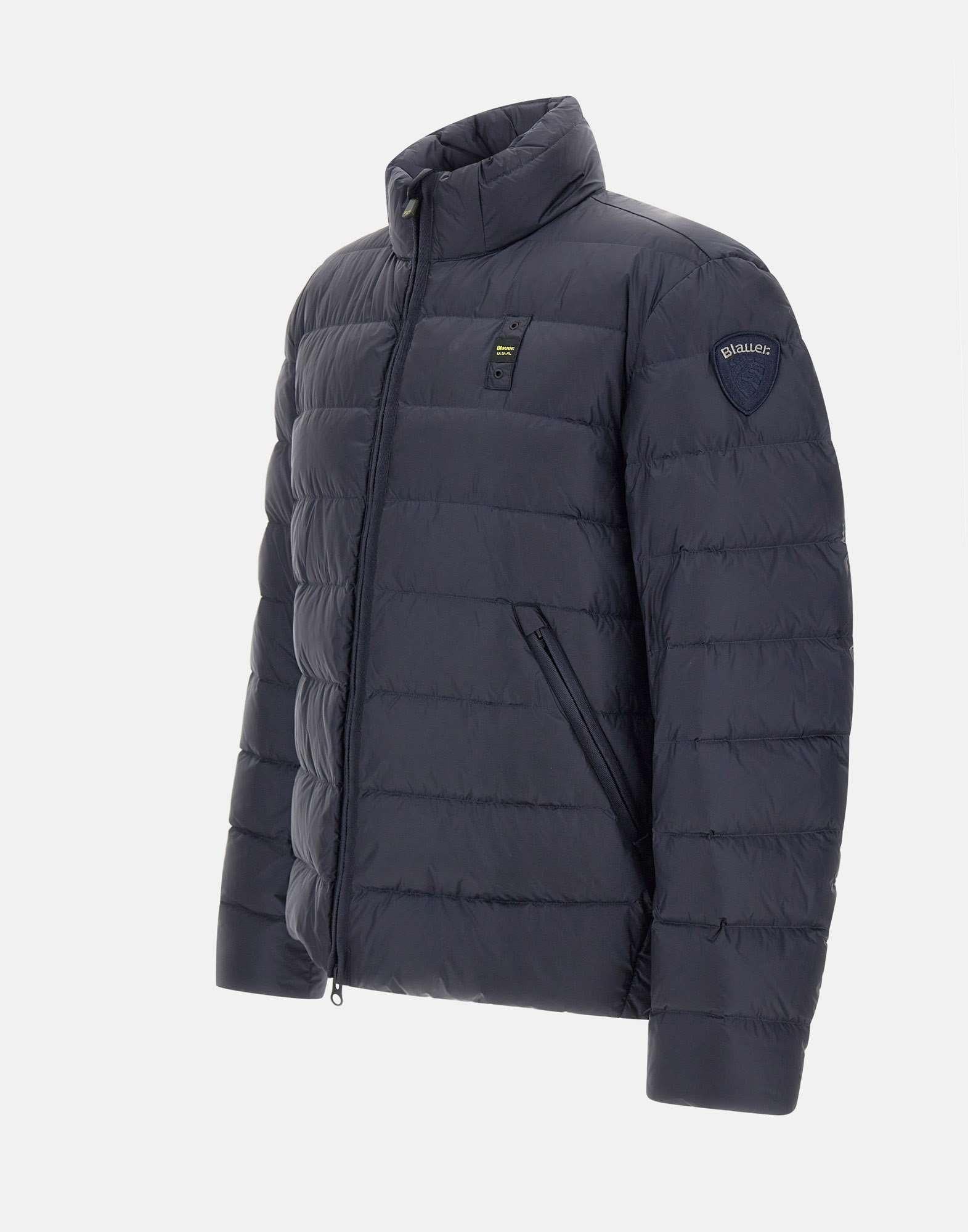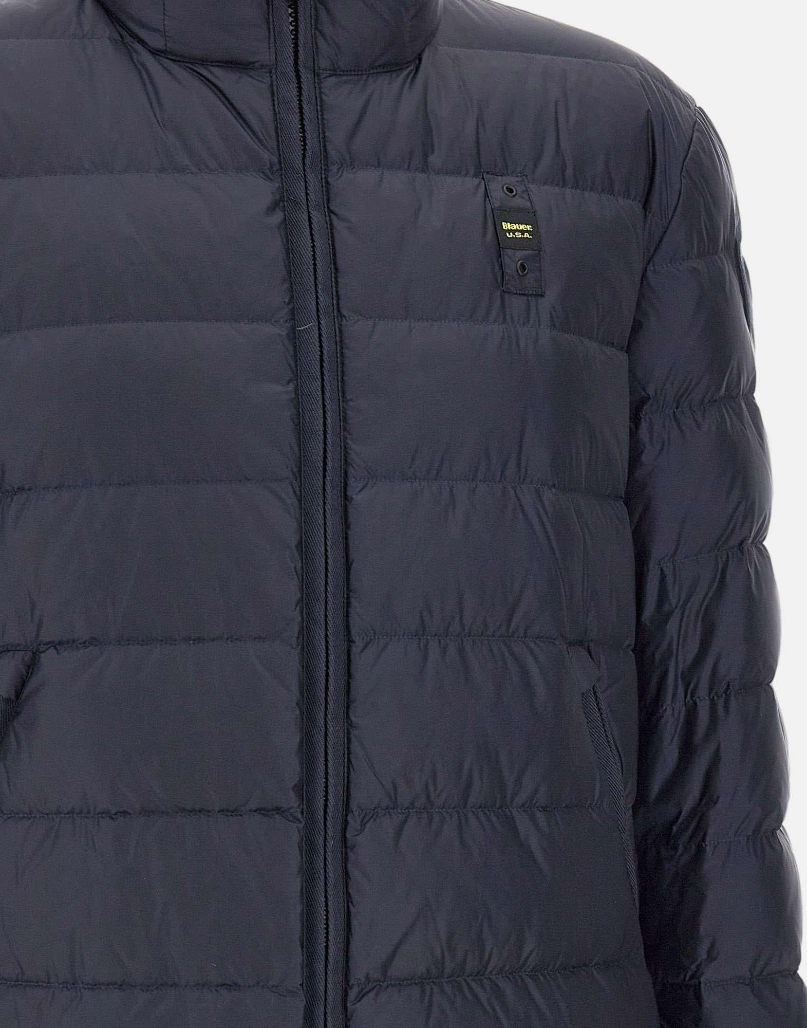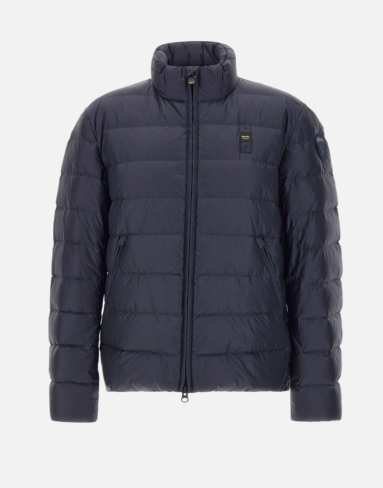 Piumino uomo Blauer "Austin" in tessuto blu scuro, caratterizzato da trapuntatura orizzontale e imbottitura in calda piuma che garantisce protezione senza ingombro. Il modello presenta collo alla coreana, chiusura centrale con zip nascosta a doppio cursore e due tasche oblique con zip. Completano il design il caratteristico passante cucito sul petto a sinistra e il patch Blauer sulla manica sinistra, dettagli iconici della maison. Un piumino funzionale e contemporaneo, ideale per la stagione fredda.