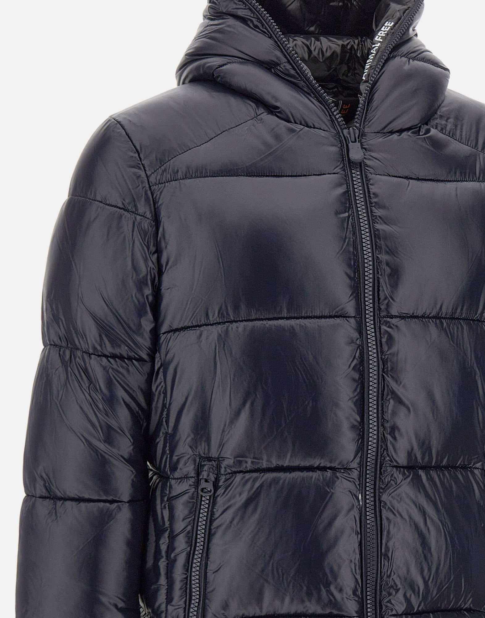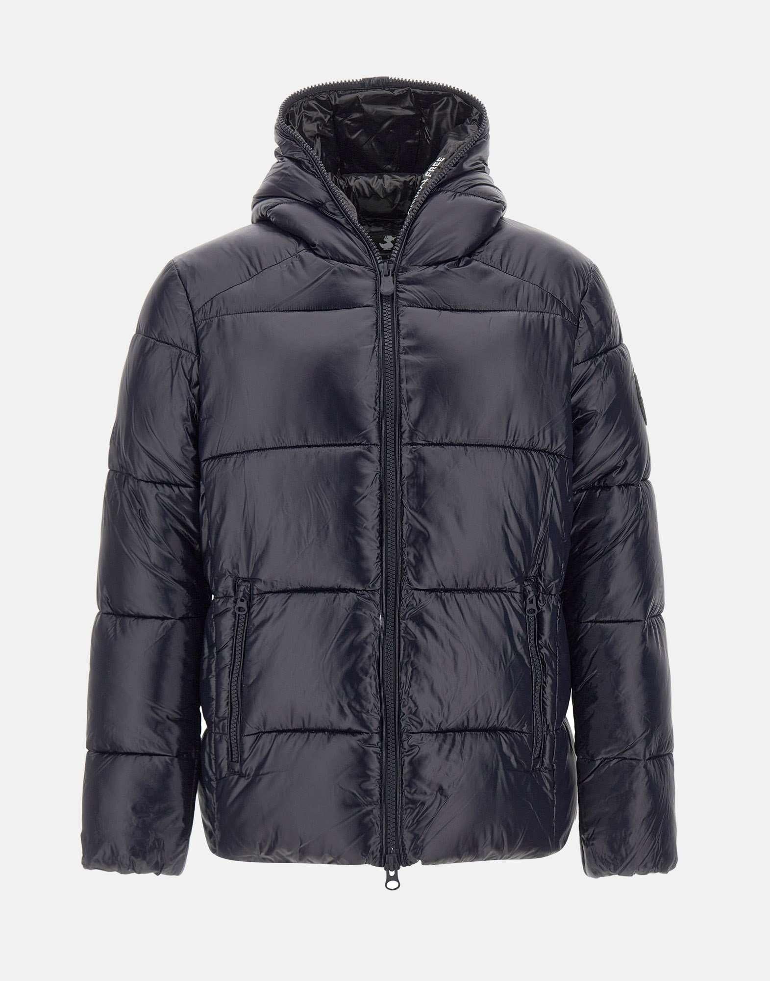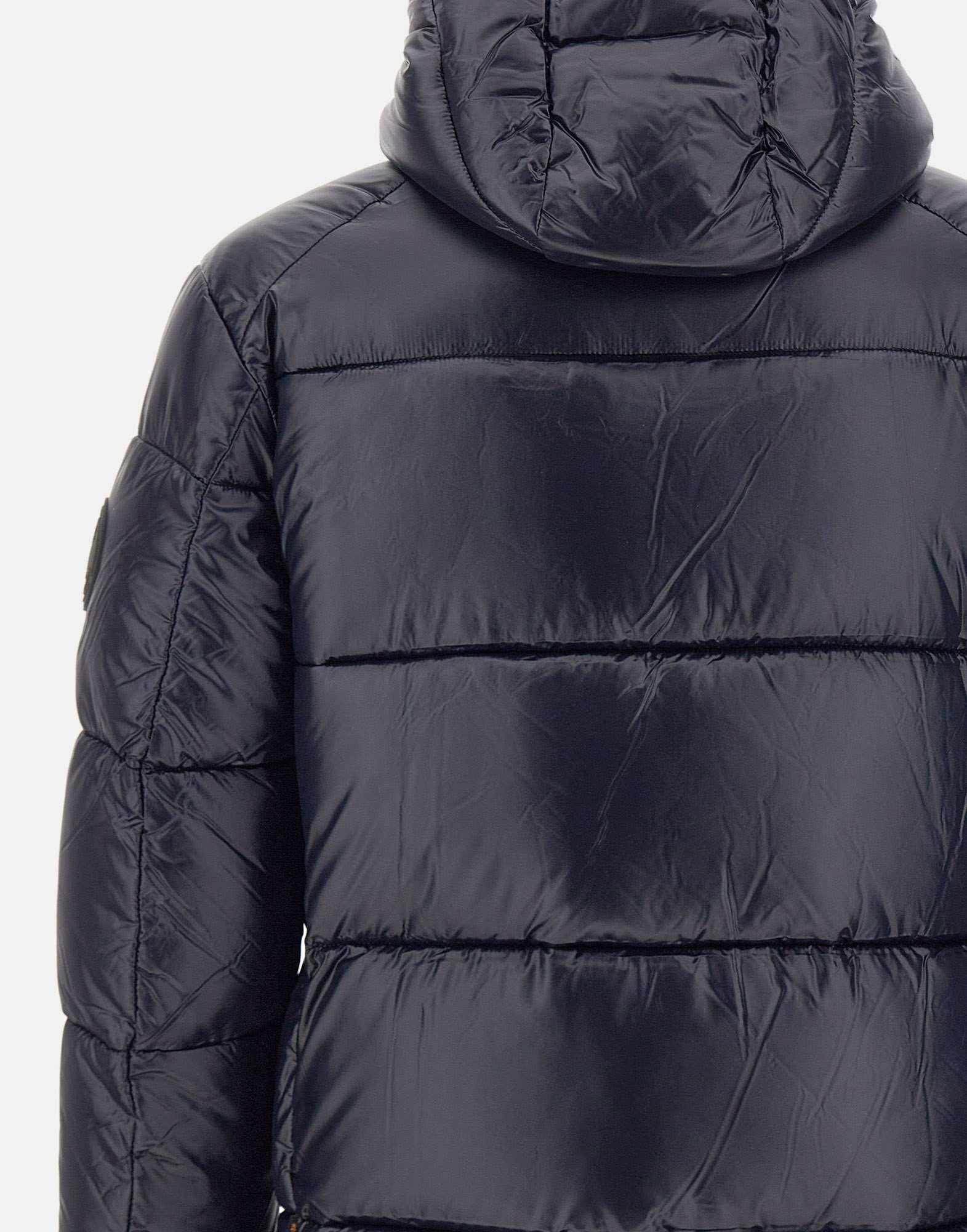 Piumino uomo Save The Duck "Edgard" in nylon riciclato color blu scuro, leggero e compatto, con mano morbida e rotonda. La costruzione ad alta densità offre ottime performance antivento, mentre il finissaggio dona un aspetto luminoso e una finitura laqué dal gusto contemporaneo. Audace ma essenziale, questo piumino uomo animal free e imbottito in Recycled Plumtech per un comfort caldo e leggero. Dotato di cappuccio, presenta coulisse regolabile al fondo e due tasche zippate. Completano il design il logo rotondo nero sulla manica, la stampa ANIMAL FREE nel cappuccio e il tirazip personalizzato, dettagli distintivi Save The Duck. Vestibilità regolare, perfetto per l'inverno in chiave luxury boutique italiana.