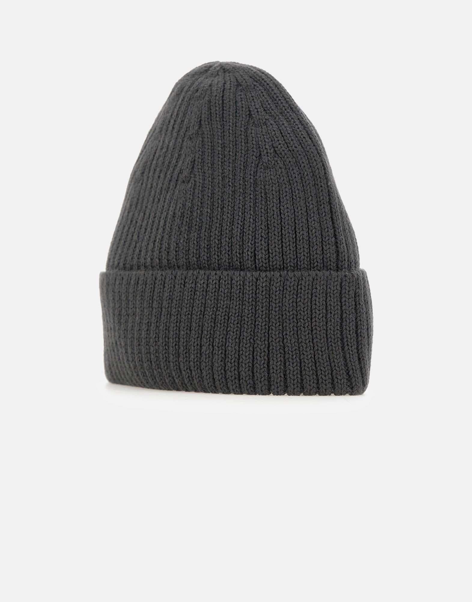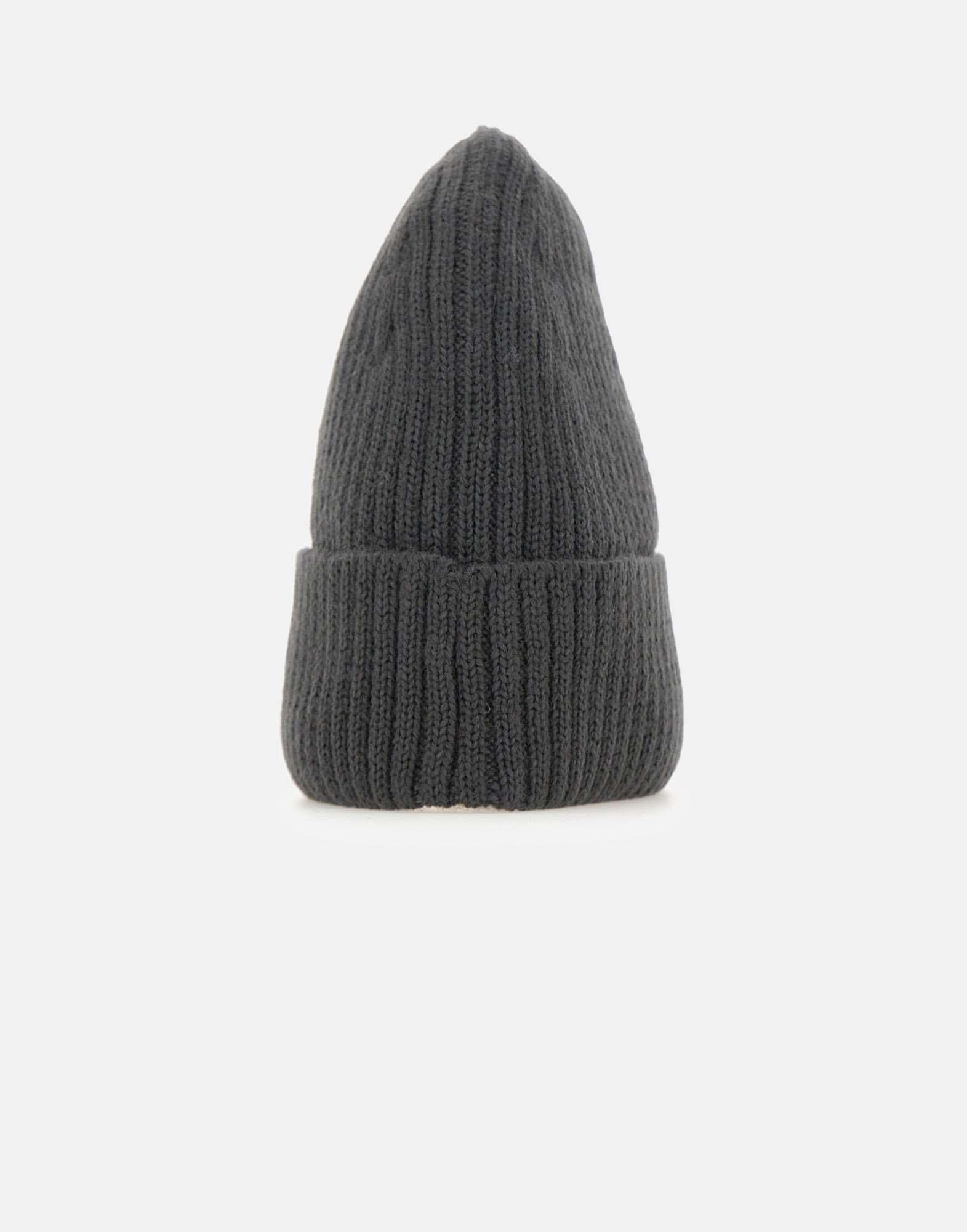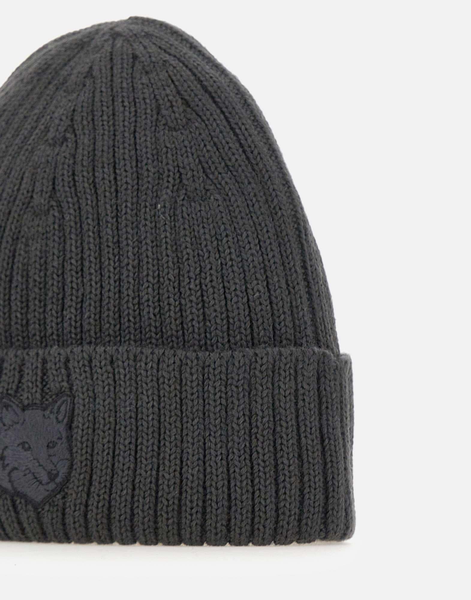 "Fox head beanie" in lana uomo Maison Kitsunè, carbone, trama a coste, patch logo iconic Fox applicata sul risvolto, taglia unica.