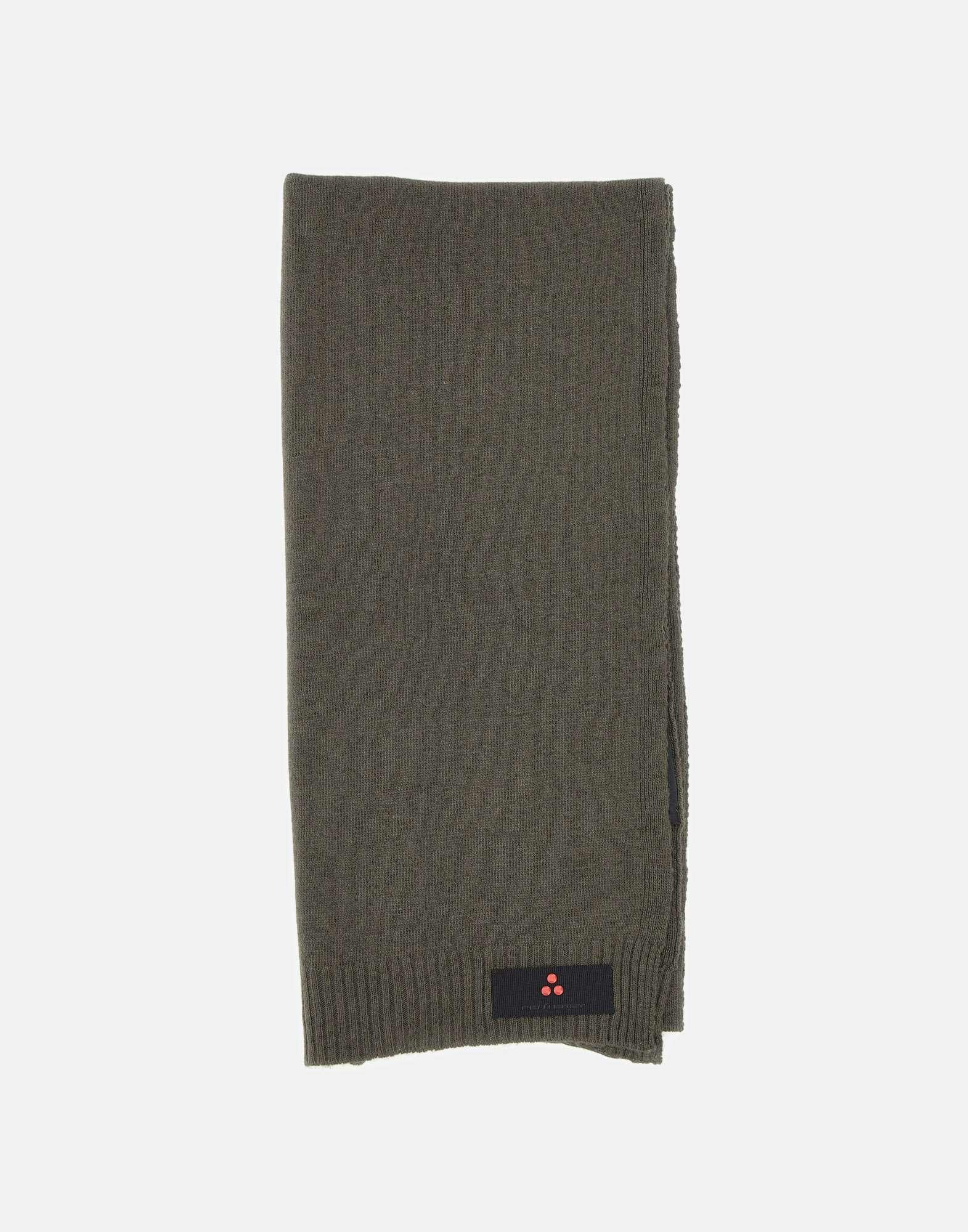 Sciarpa Peuterey "Adasic" in morbido misto lana verde, rifinita con profili a costine e patch logo applicato. La larghezza di 25cm e la lavorazione curata la rendono un accessorio pratico e versatile, perfetto per aggiungere un tocco di stile e comfort ai look invernali. Taglia unica.