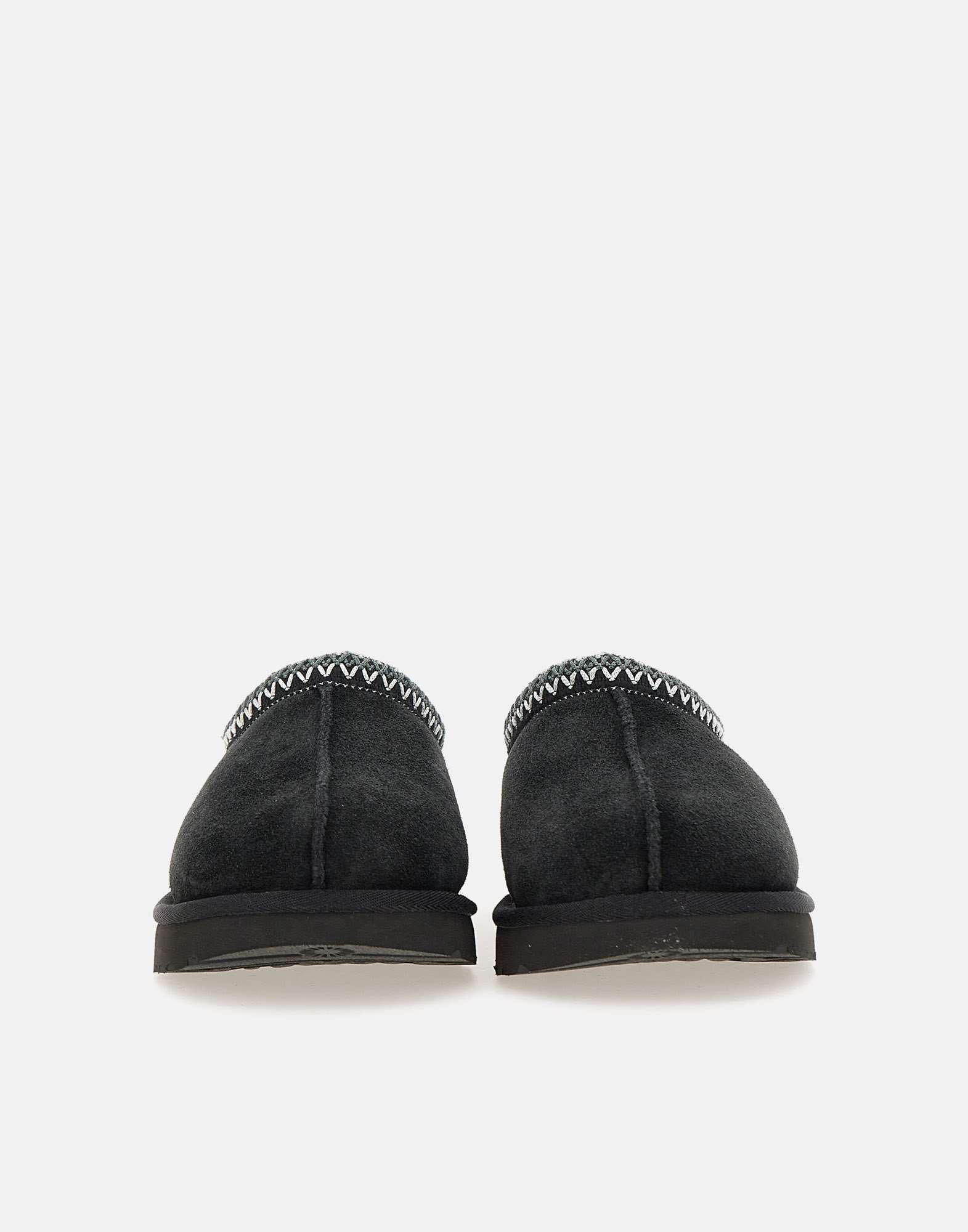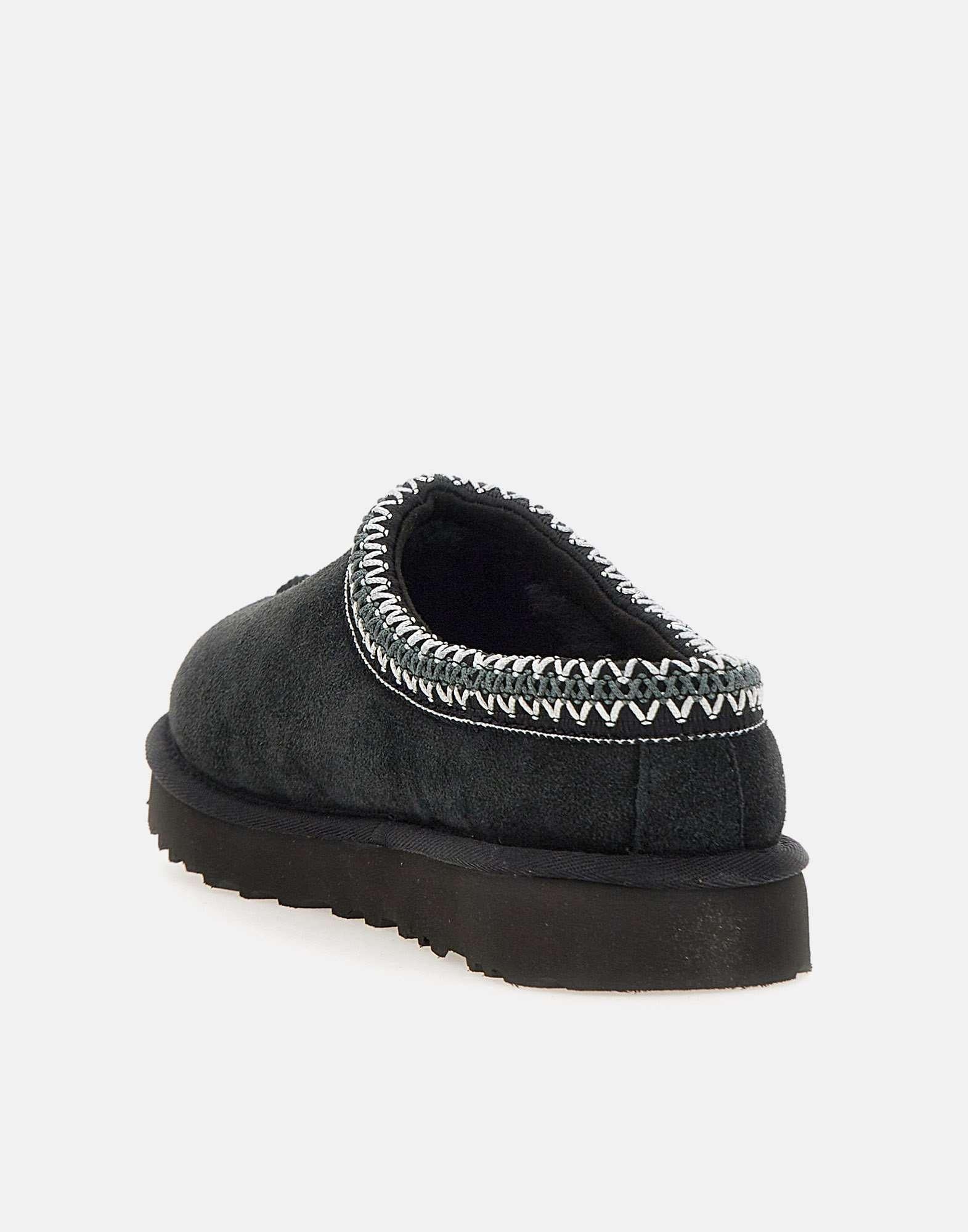 Sabot UGG "Tasman" in pelle di agnello scamosciata, colore nero con profili a contrasto, braid UGG® ricamato sul collarino, fodera in lana di pecora,soletta in lana UGGpure, rifiniture in nylon,