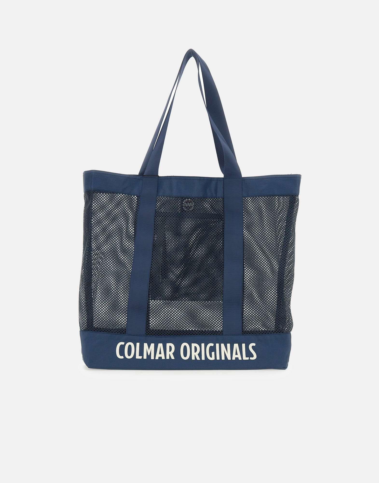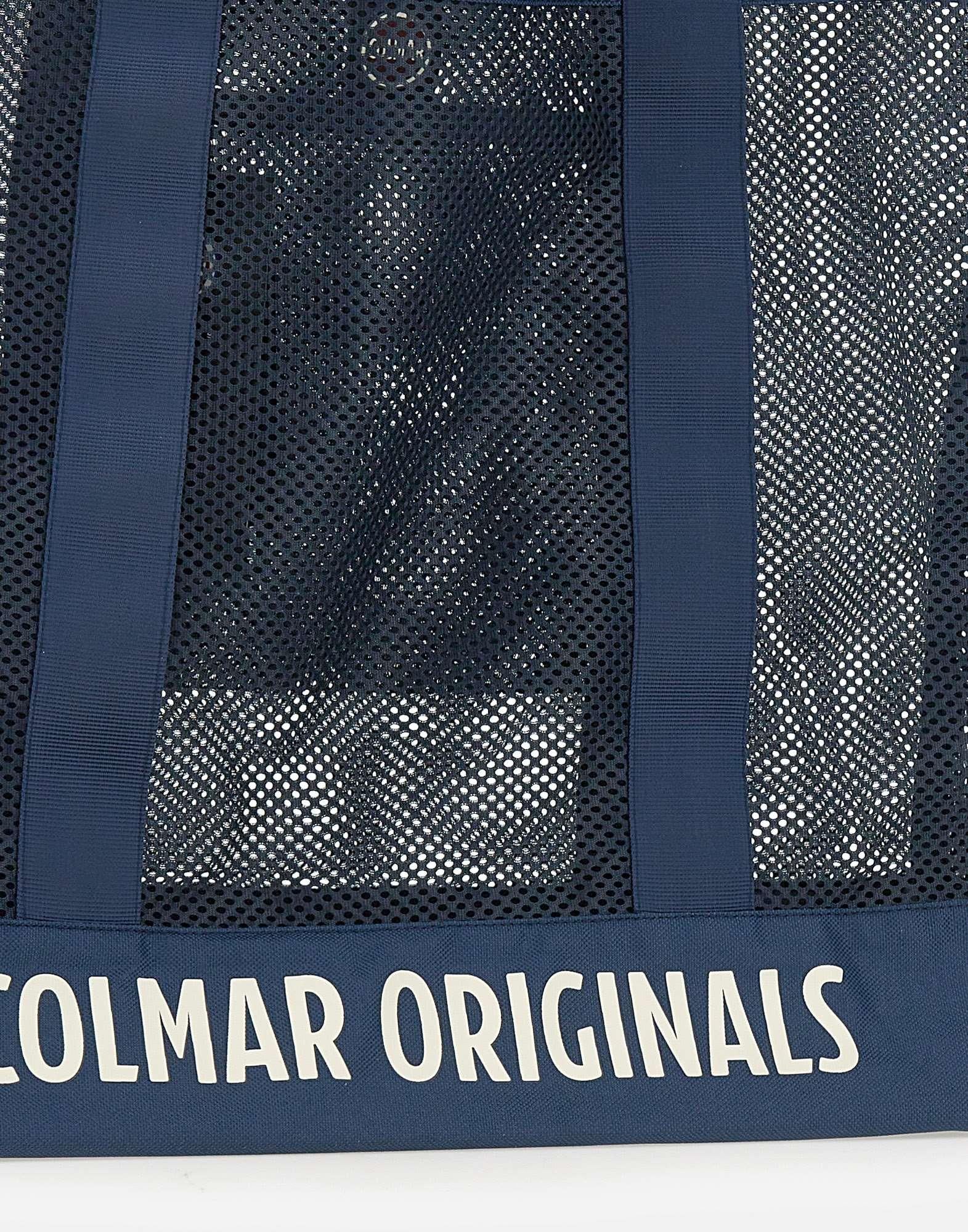 Borsa mare a spalla Colmar Originals "Net", blu, tessuto poliestere trama a rete e fondo in canvas, doppio manico superiore, tasca interna, maxi logo a contrasto di colore sul fondo, misure: 39cm altezza, 17cm profondità, 41cm lunghezza.