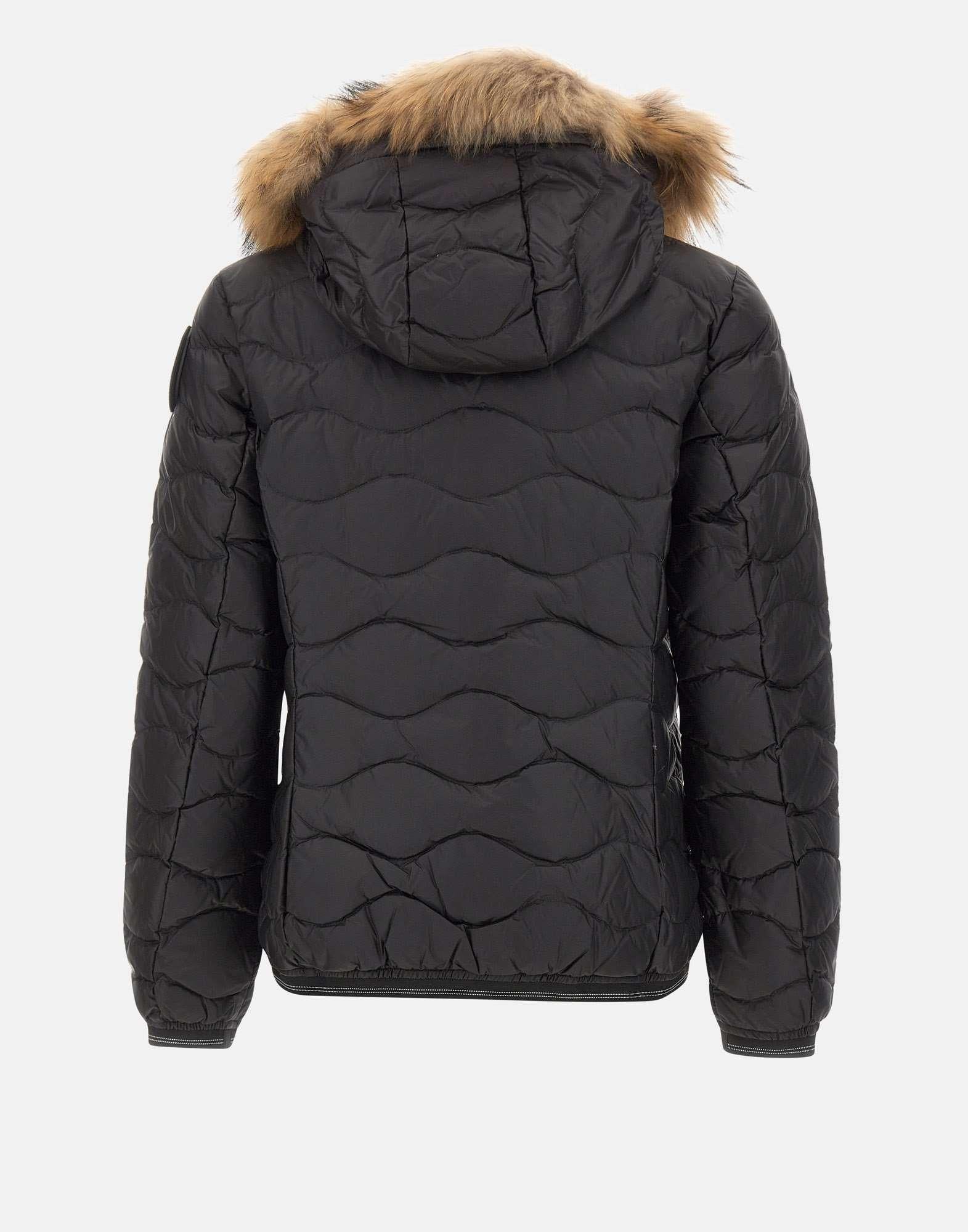 COMPOSIZIONE 100% Polyamide; Lining:100% Polyamide; Filling: 90% duck down, 10% feathers;Details:100% Real fur raccoon;