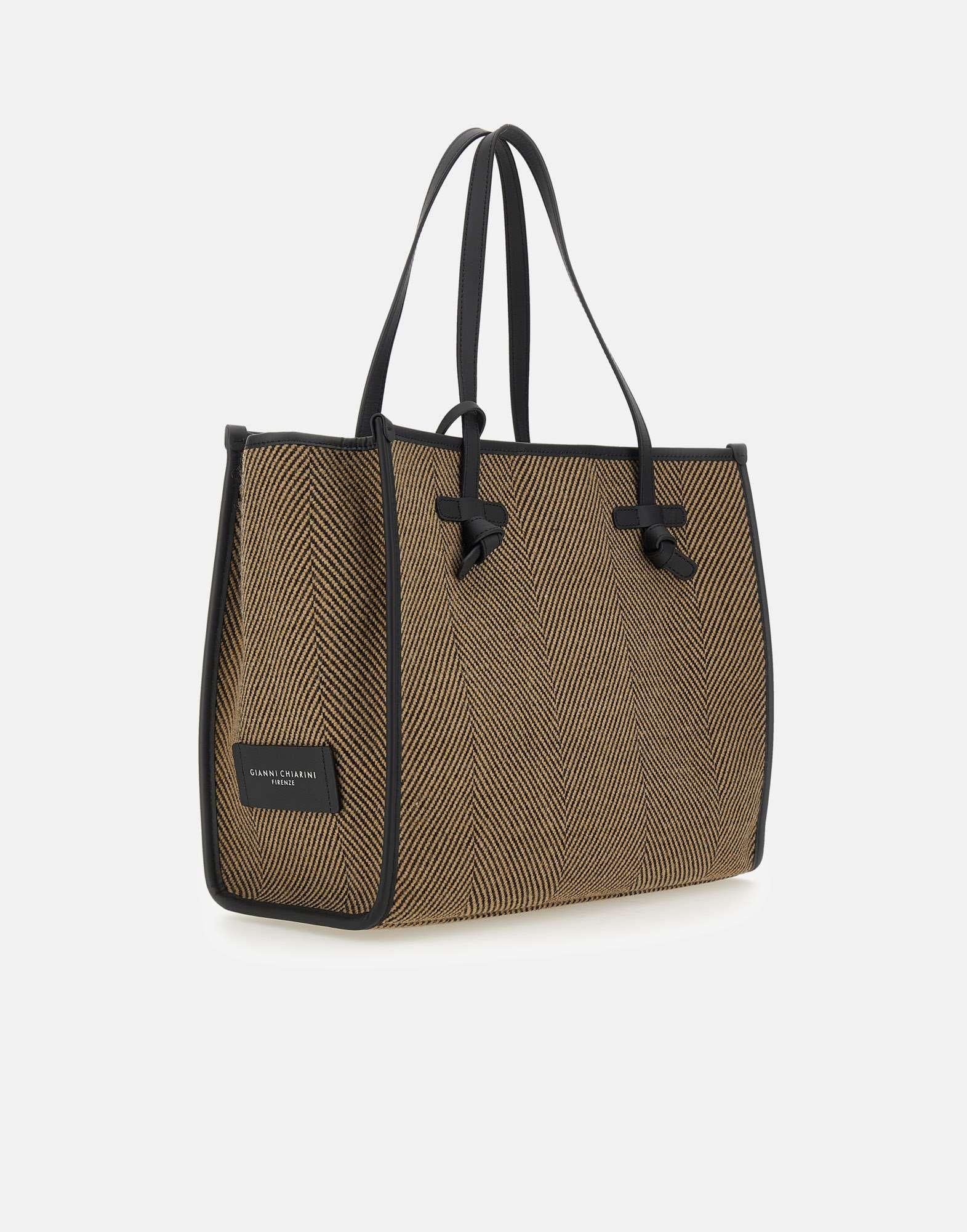 Borsa a spalla "Marcella" Marcella Club di Gianni Chiarini, emblema di uno stile minimal e raffinato. Realizzata in tessuto con trama spiga nero e corda, è impreziosita da profili in pelle liscia che ne definiscono il design con eleganza e sobrietà. Dotata di doppio manico superiore e chiusura centrale con magnete, questa borsa unisce praticità e stile. L'interno è spazioso e ben rifinito, mentre il patch logo laterale firma il modello con discrezione. Inclusa una pochette in pelle con zip, ideale per contenere piccoli oggetti essenziali, dimensioni 31x38x16 cm, dustbag personalizzata inclusa.