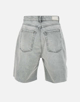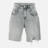 Shorts donna Icon Denim "Lea" in denim di cotone, nero trattamento stone washed, chiusura con bottone logato e zip, modello cinque tasche, dettagli destroyed, patch logo in pelle sul retro, vita alta con passanti per cintura, bordi sfrangiati, regular fit.