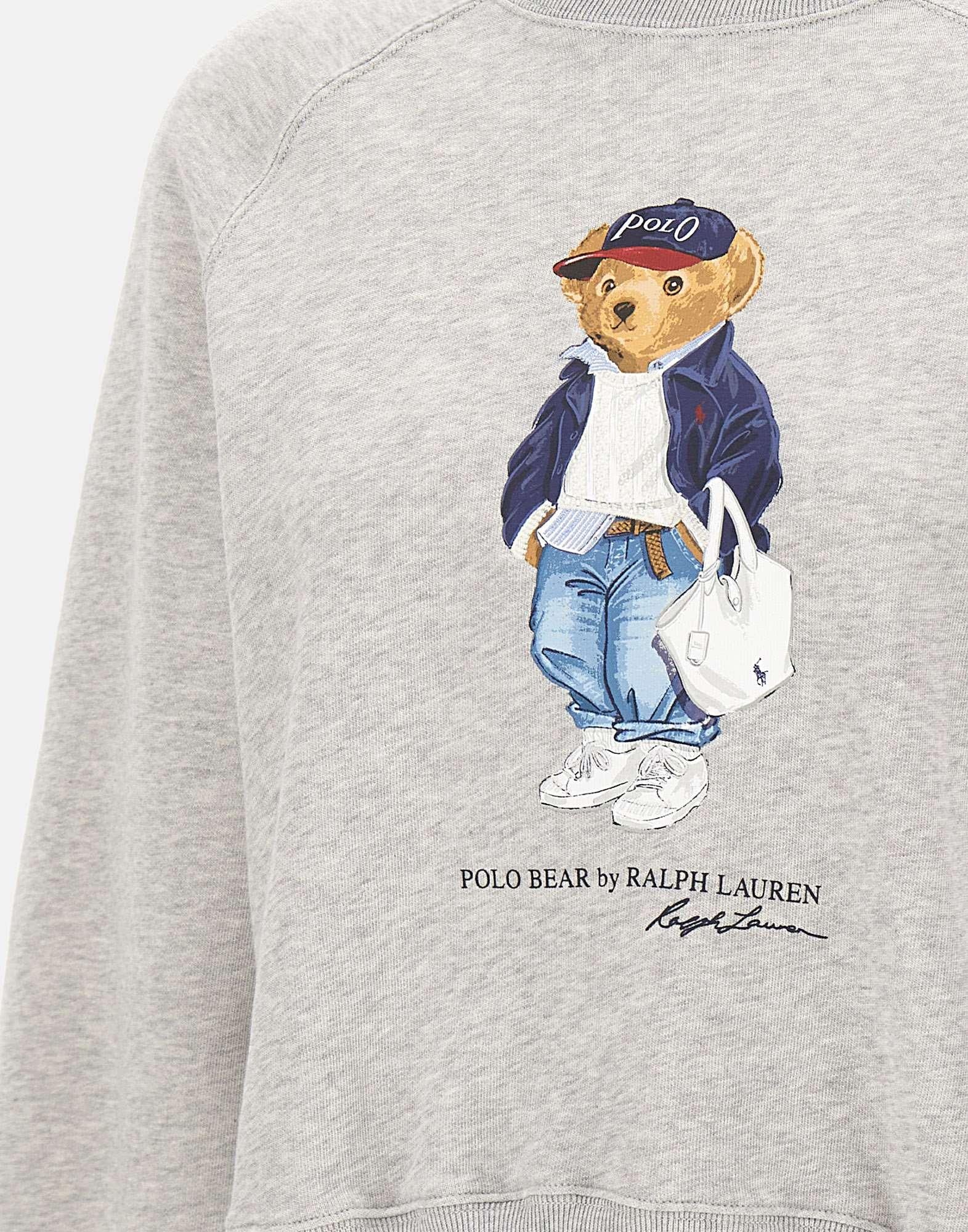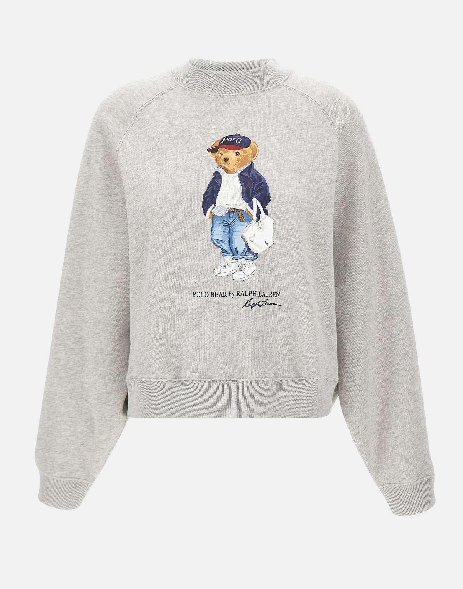 Felpa donna Polo Ralph Lauren "Polo Bear" realizzata in morbido cotone loopback color grigio mélange, lavato in capo per una maggiore morbidezza e un comfort immediato. Il modello a girocollo è caratterizzato dalla stampa in gomma del Polo Bear che sfoggia un esclusivo look Ralph Lauren, dettaglio iconico e riconoscibile. Taglio morbido, maniche raglan con polsini a coste e finiture a coste su collo e orlo completano il design, perfetto per uno stile casual premium e versatile.