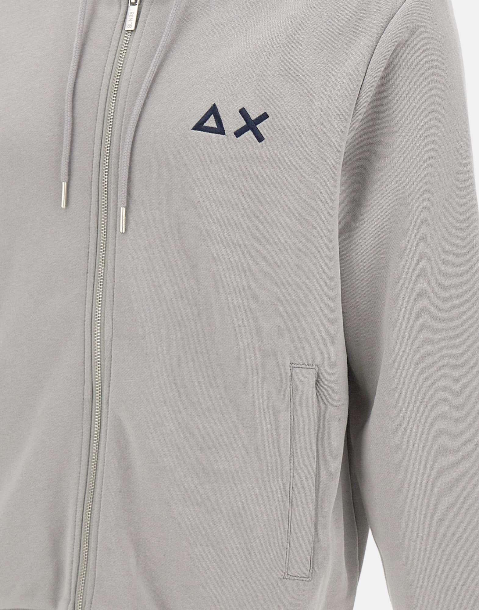 Felpa uomo Sun68 "Hood Zip Basic" colore grigio chiaro, appartenente alla linea Everyday. Realizzata in cotone morbido con interno felpato, presenta maniche lunghe, cappuccio con coulisse e chiusura frontale con zip in metalleria silver. Le tasche laterali con zip offrono praticità, mentre i bordi a costine e il maxi logo ricamato sul petto completano il design. La vestibilità regular fit assicura comfort e uno stile casual contemporaneo.