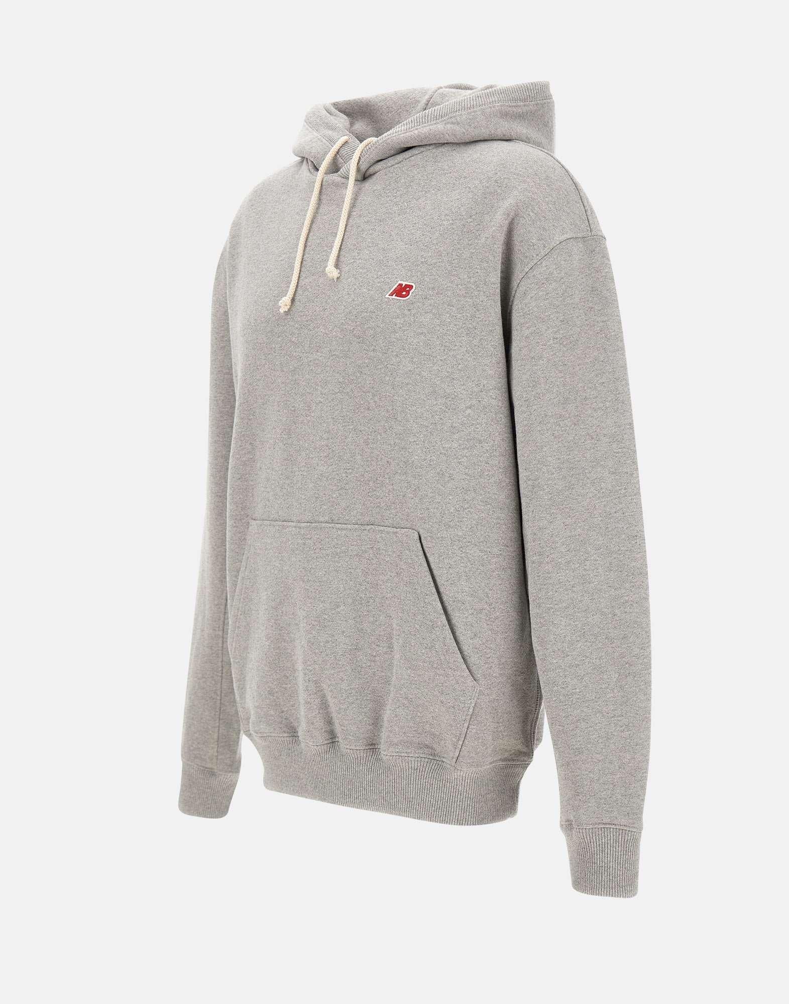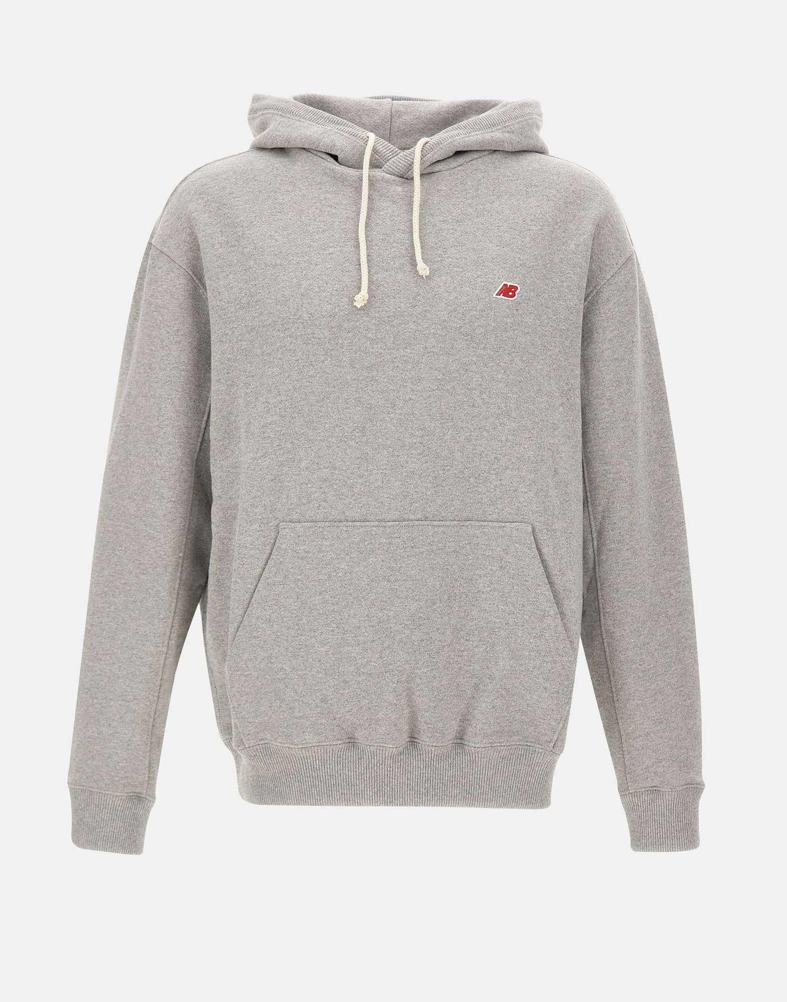 Felpa New Balance "Made in USA Core Hoodie" uomo, colore grigio. Realizzata in spugna francese da 440gsm, combina struttura solida e morbidezza, perfetta per le mezze stagioni e i climi più freschi. Il design include maniche lunghe, un cappuccio a doppia fodera con cordino regolabile e dettagli a coste, per una vestibilità sicura e funzionale. La tasca a marsupio frontale aggiunge praticità, mentre i bordi a coste e linterno garzato garantiscono calore e comodità. A completare il look, liconico logo New Balance ricamato e applicato sul petto, simbolo di autenticità e stile sportivo. Relaxed fit