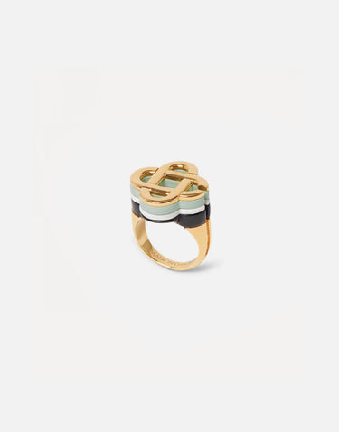 "Hiking Stacked Ring" Casablanca, ottone placcato oro e smalto, logo Casablanca con le CC intrecciate, fornito con una confezione regalo, sacchetto antipolvere, marchio e libretto con dettagli del prodotto. Pulire con un panno morbido e asciutto