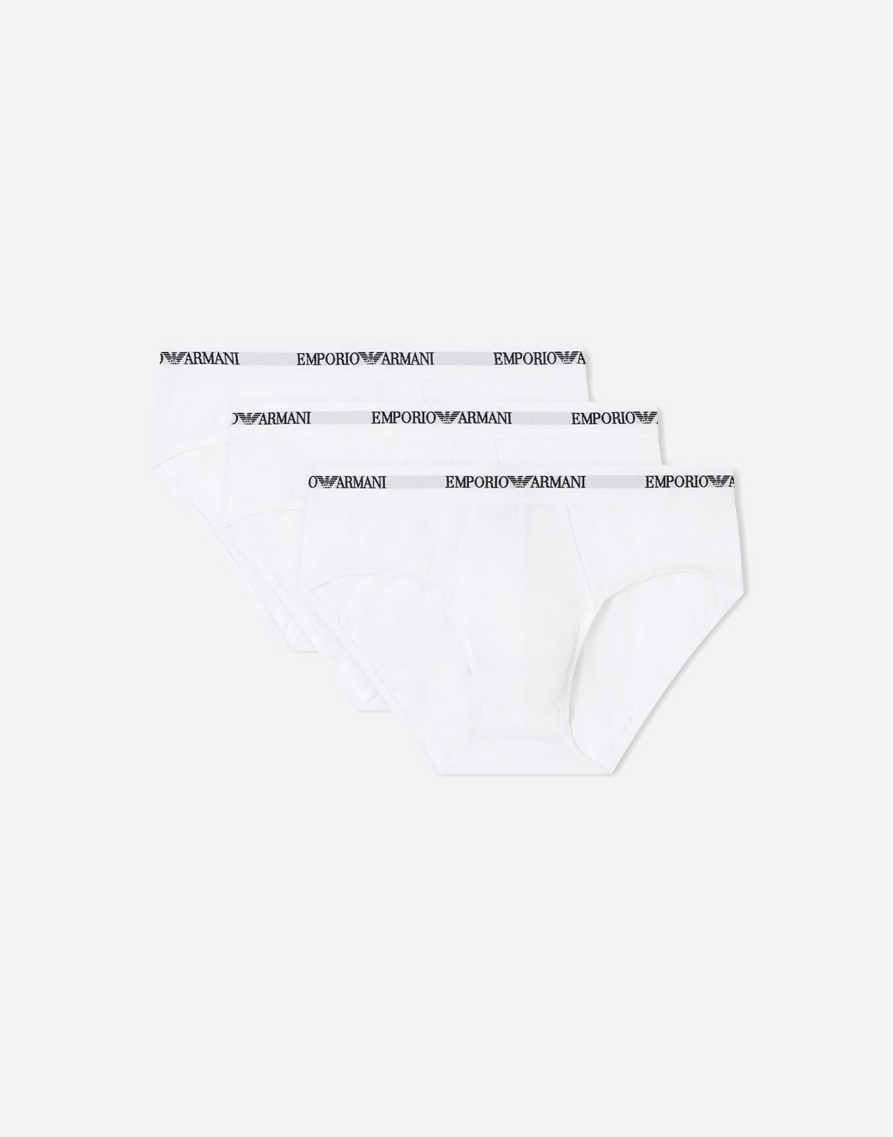Set tre slip Emporio Armani in cotone stretch, colore bianco, banda elastica tono su tono con logo a contrasto, regular fit.