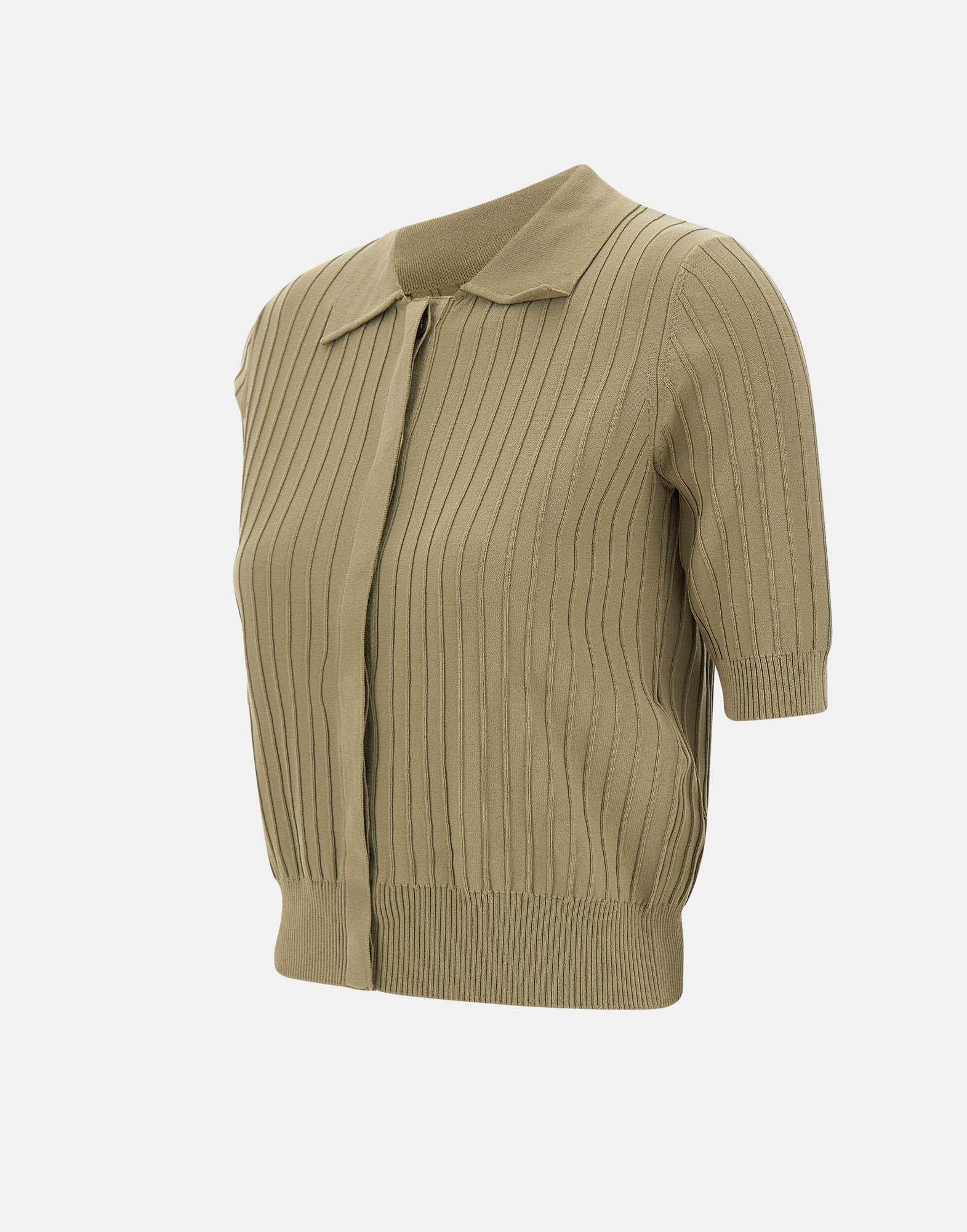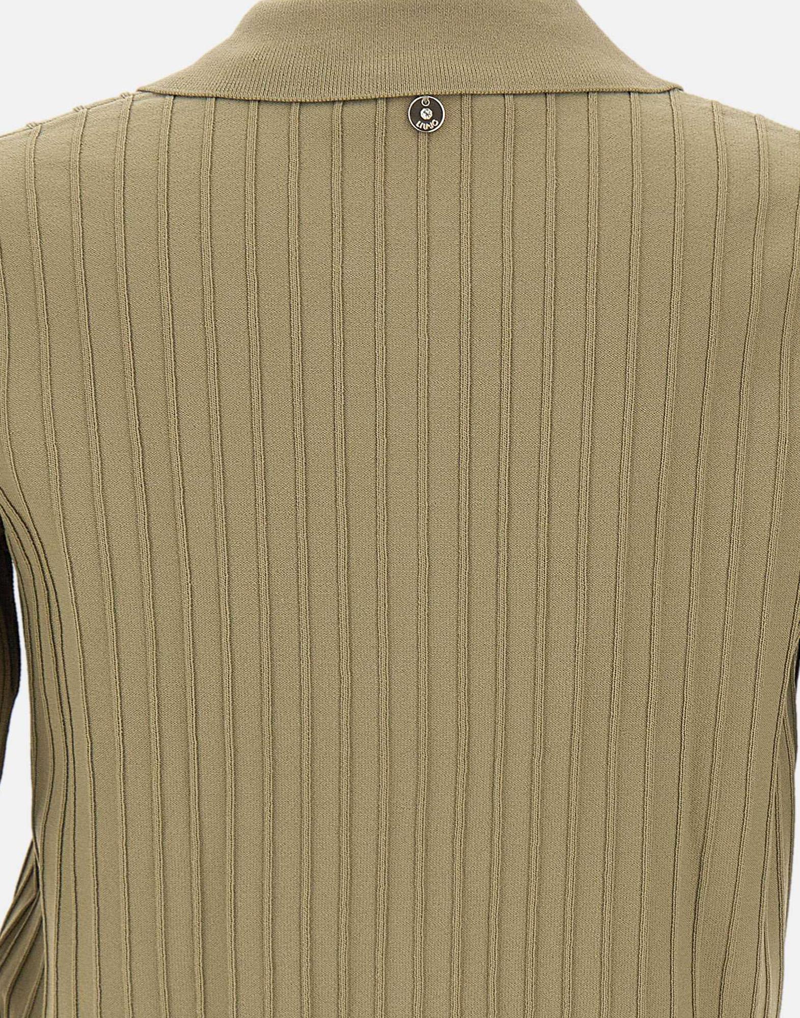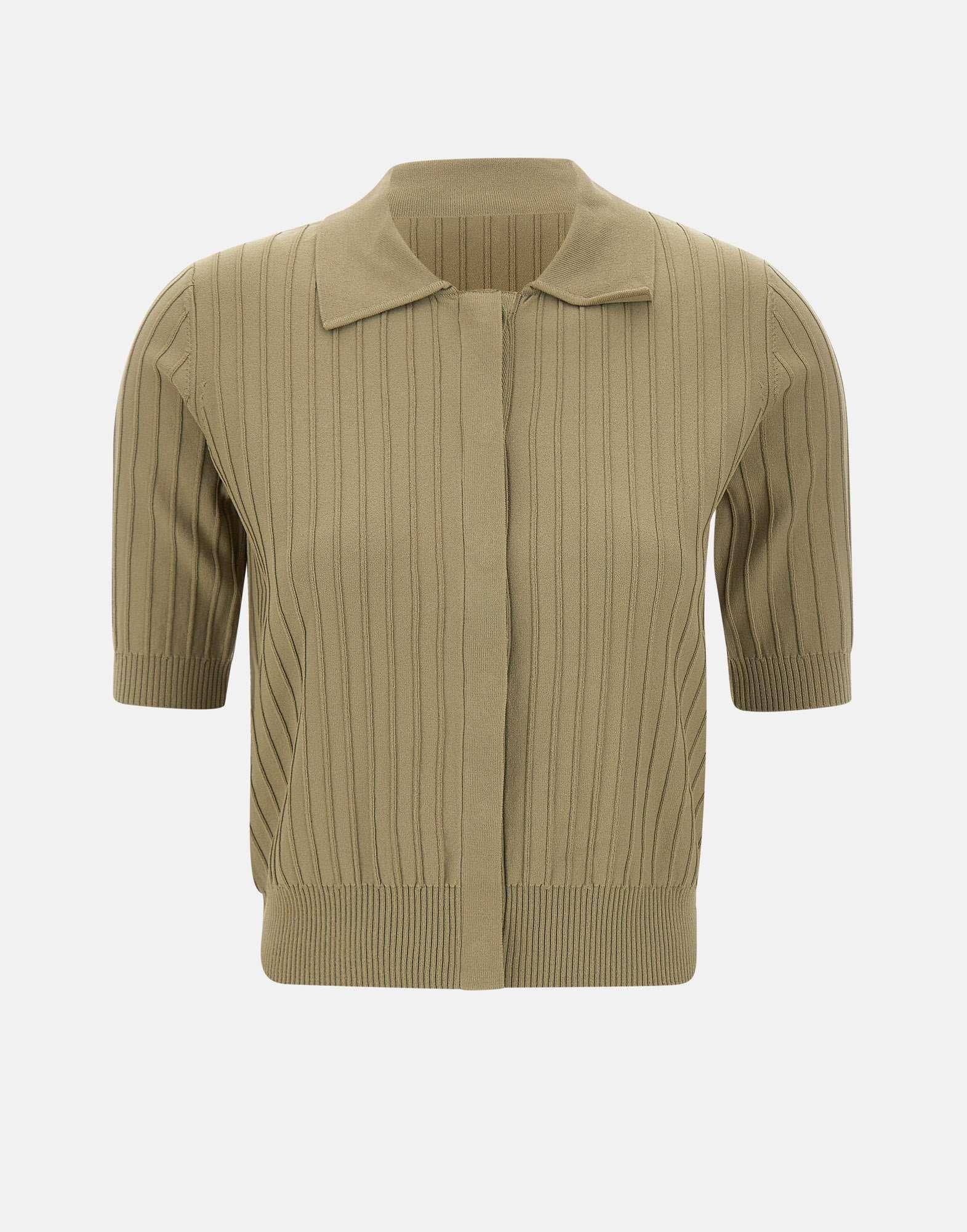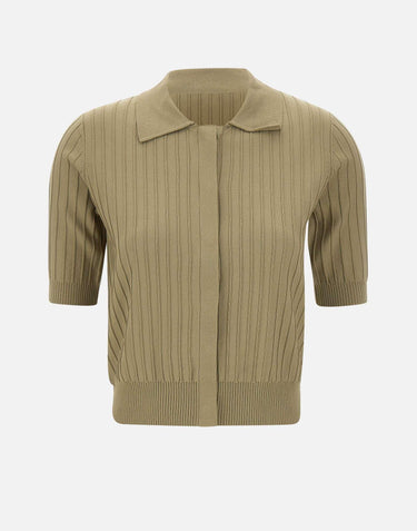 Cardigan donna Liu Jo, linea Liu Jo Better, in maglia di misto viscosa color verde miltiare. Il modello presenta lavorazione a coste, maniche corte e collo a camicia per un look pulito e contemporaneo. La chiusura con bottoni coperta mantiene una linea essenziale, mentre gli orli a costine definiscono la struttura. Il charm logo in metallo applicato sul retro aggiunge un dettaglio distintivo. Un cardigan versatile, ideale per completare outfit quotidiani con un tocco moderno.