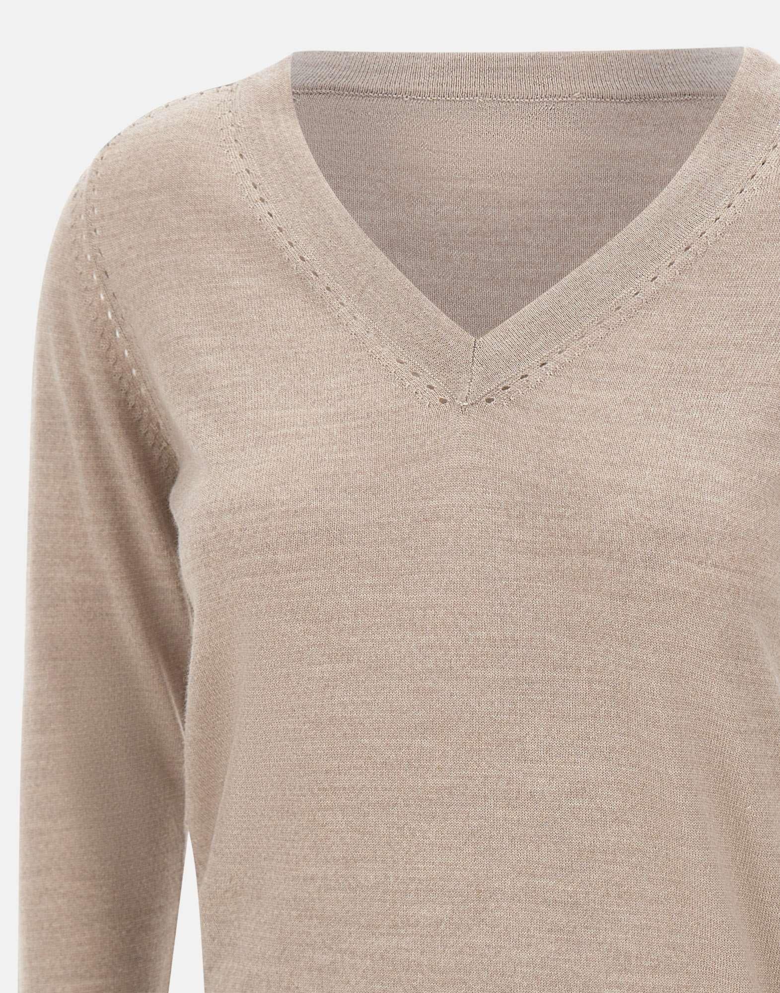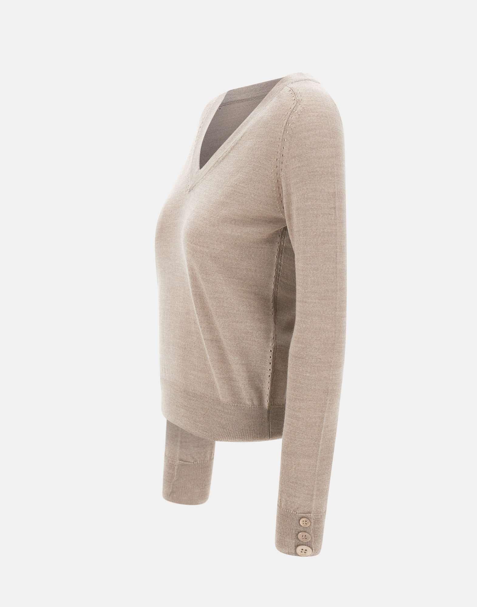 Aggiungi un tocco di eleganza al tuo guardaroba con questa maglia Liu-Jo in lana color sabbia. Il design femminile e raffinato è valorizzato da uno scollo a V, perfetto per look sofisticati ma versatili. Le maniche lunghe e i bordi a costine offrono comfort e una vestibilità strutturata, mentre il taglio regular fit garantisce libertà di movimento e uno stile senza tempo.