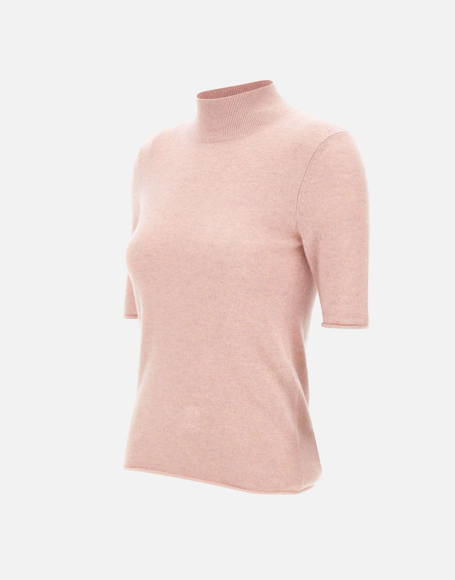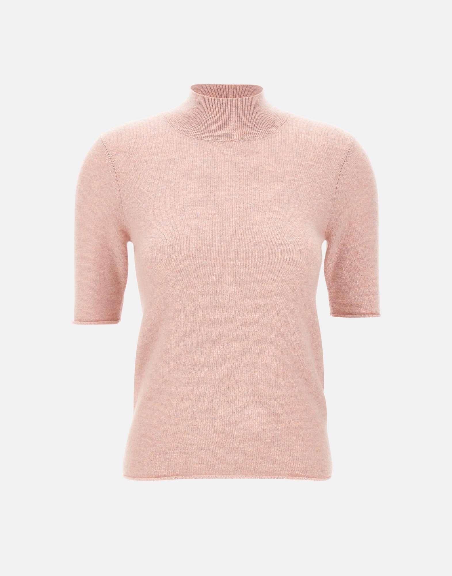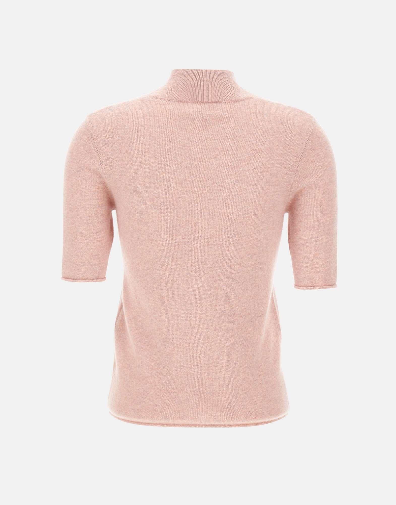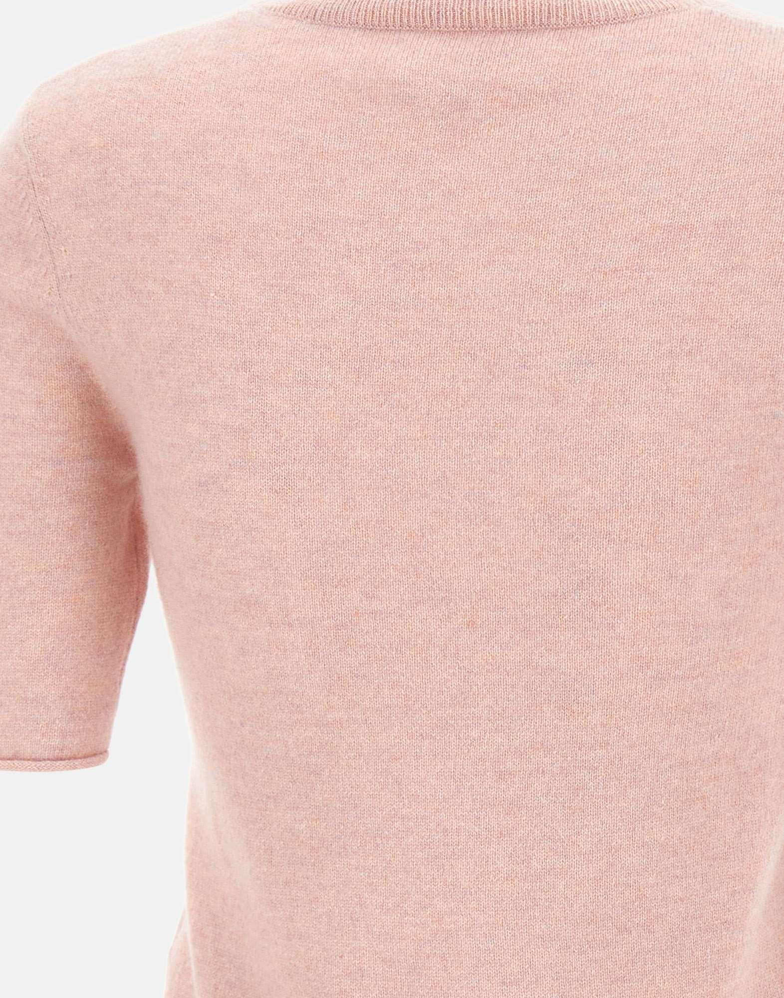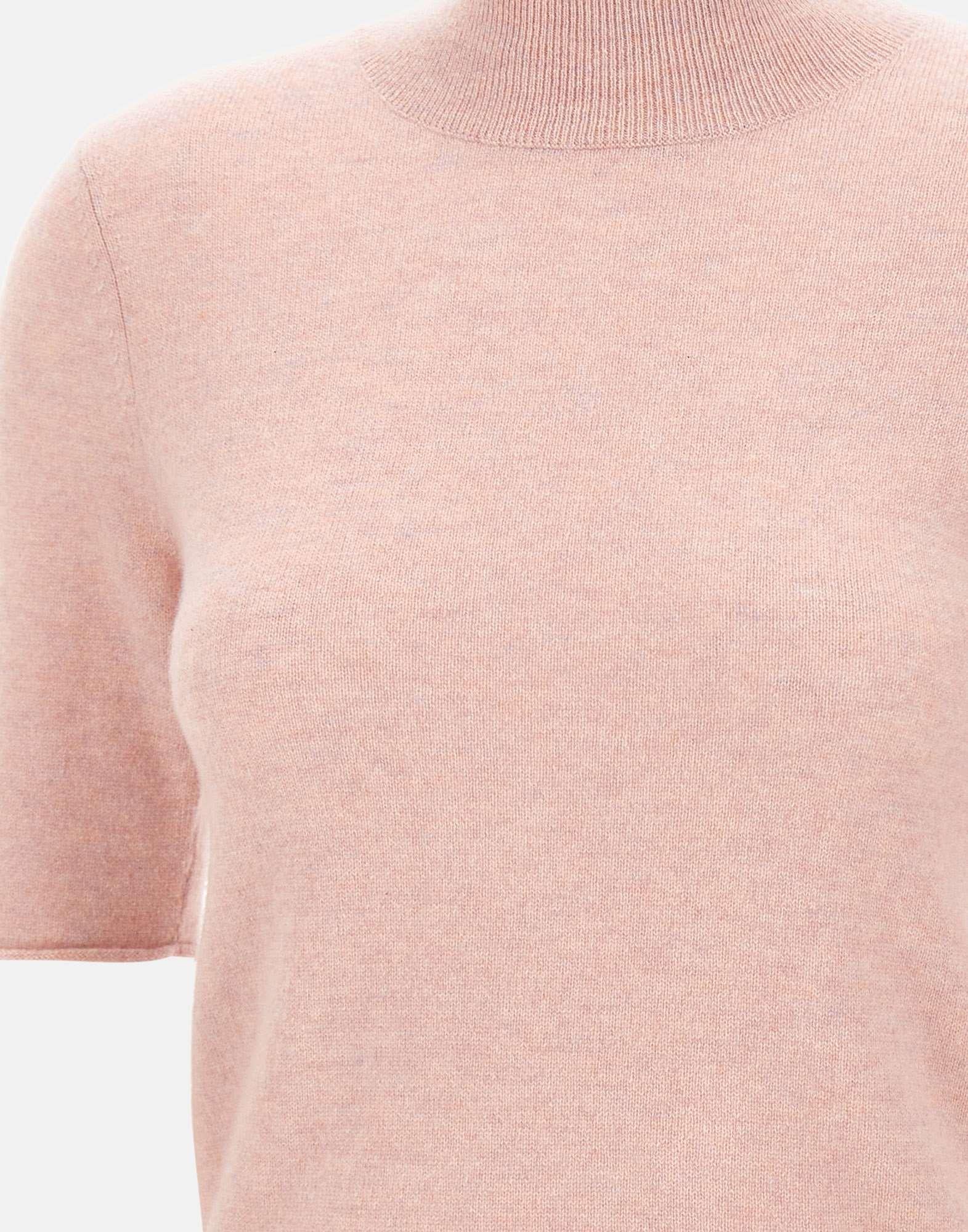 Maglia donna Not Shy Cashmere "Madeleine" in 100% puro caashmere rosa mélange, dal design fresco e femminile. Presenta maniche corte, colletto a costine e orli arrotolati che donano un tocco di morbida eleganza. La vestibilità regolare assicura comfort e versatilità, rendendola perfetta per completare con stile sia look casual che raffinati.
