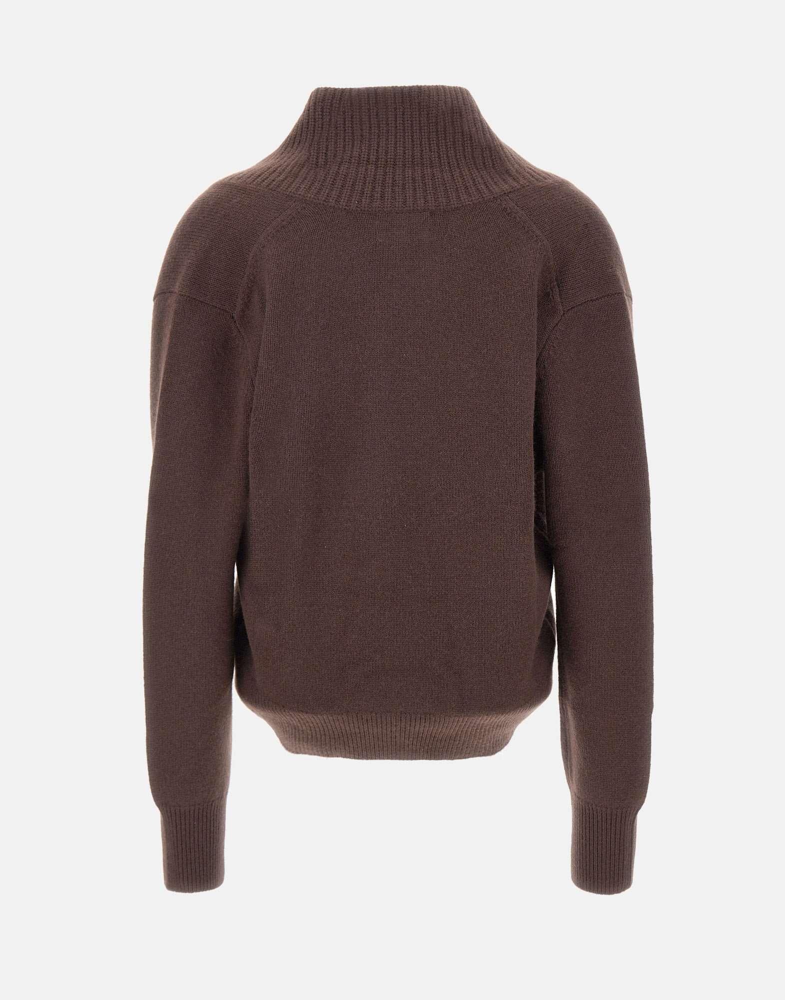 Maglia donna Loulou de Saison "Makela" in puro cashmere color cioccolato, caratterizzata da una linea dritta e raffinata. Il profondo scollo a V con colletto rialzato e gli ampi dettagli a costine donano unallure avvolgente e sofisticata. I polsini e lorlo a costine completano il design con un tocco di eleganza senza tempo, tipico dello stile Loulou de Saison.
