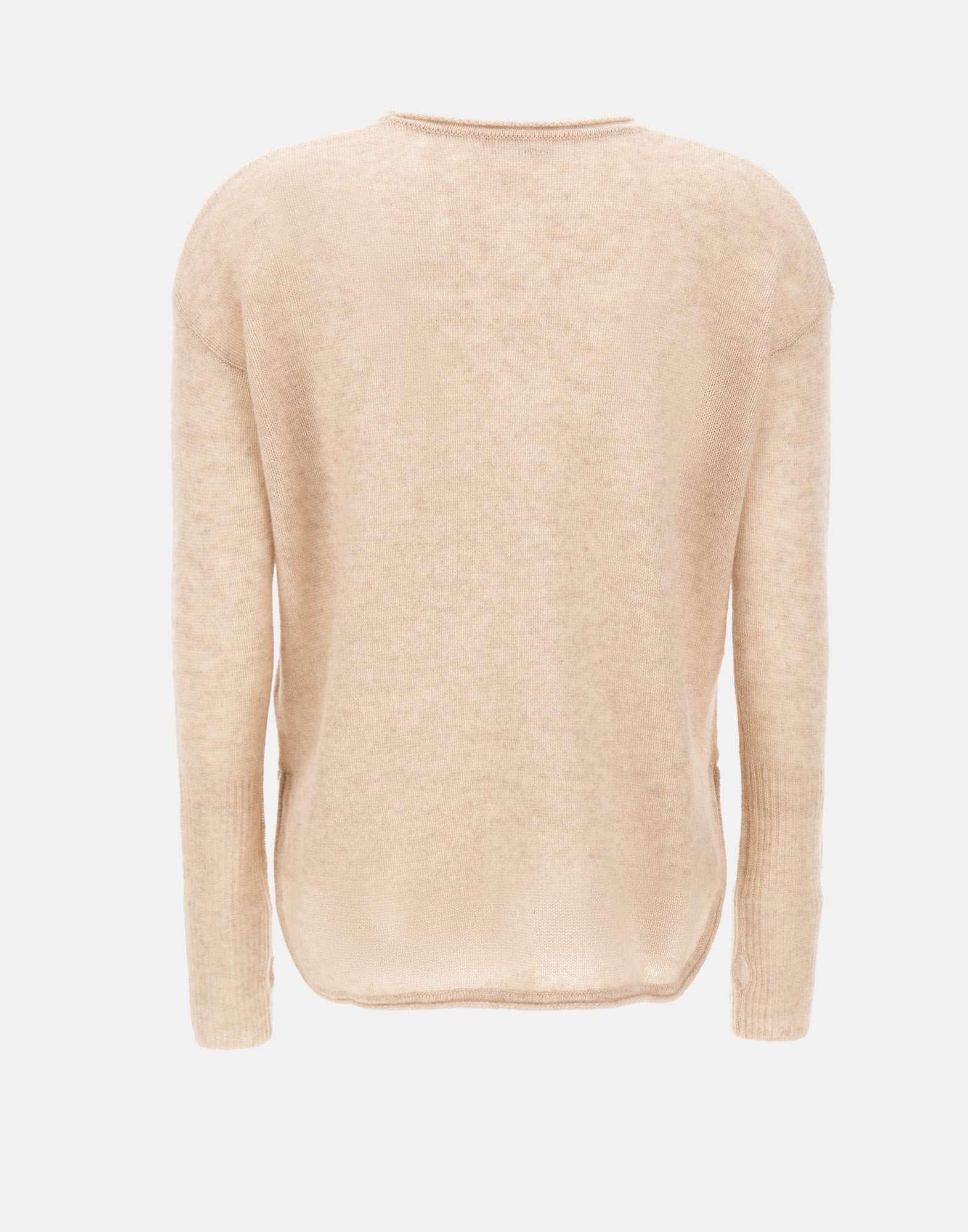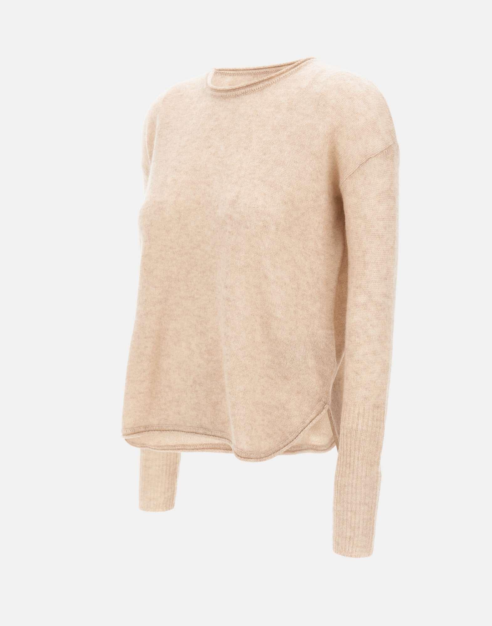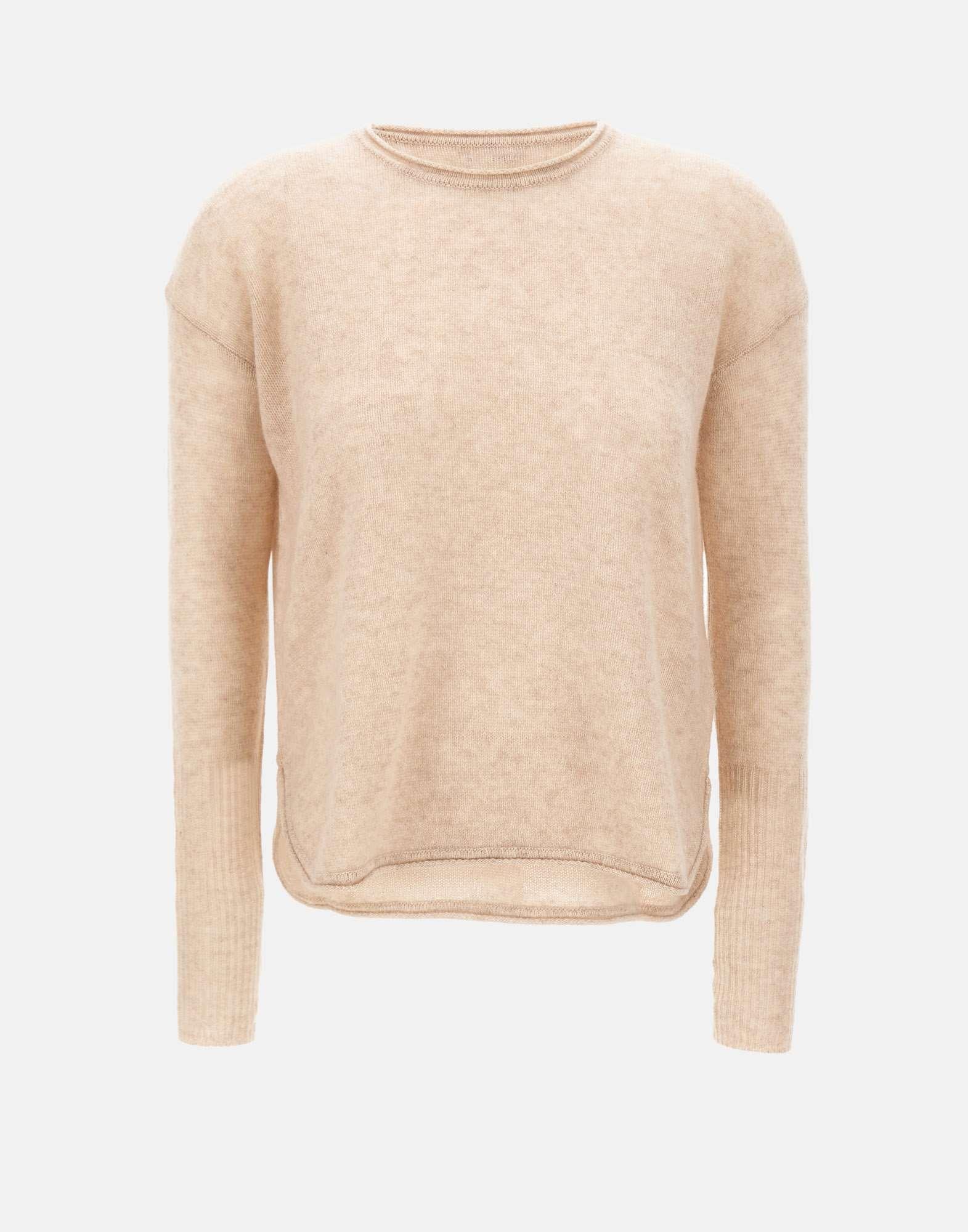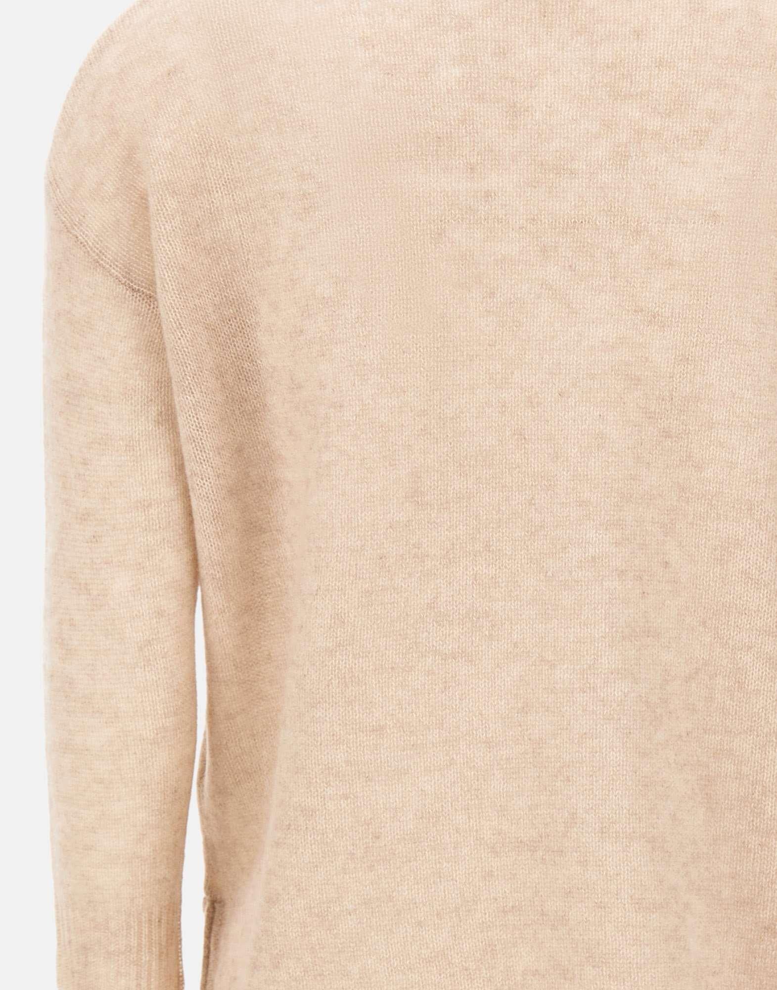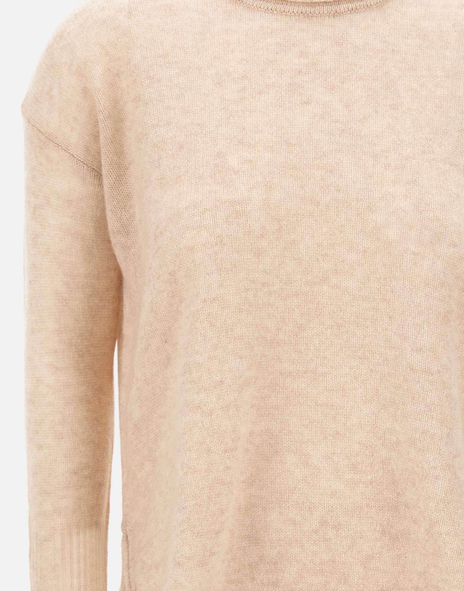 Maglia donna Not Shy Cashmere Pippa in 100% puro cashmere leggero, color beige. Il design morbido e avvolgente presenta girocollo, maniche lunghe con dettaglio muffole integrate, polsini a costine e finiture arrotolate. Le spacche laterali e la vestibilità ampia donano comfort e movimento, per un capo dallo stile rilassato ma sofisticato.
