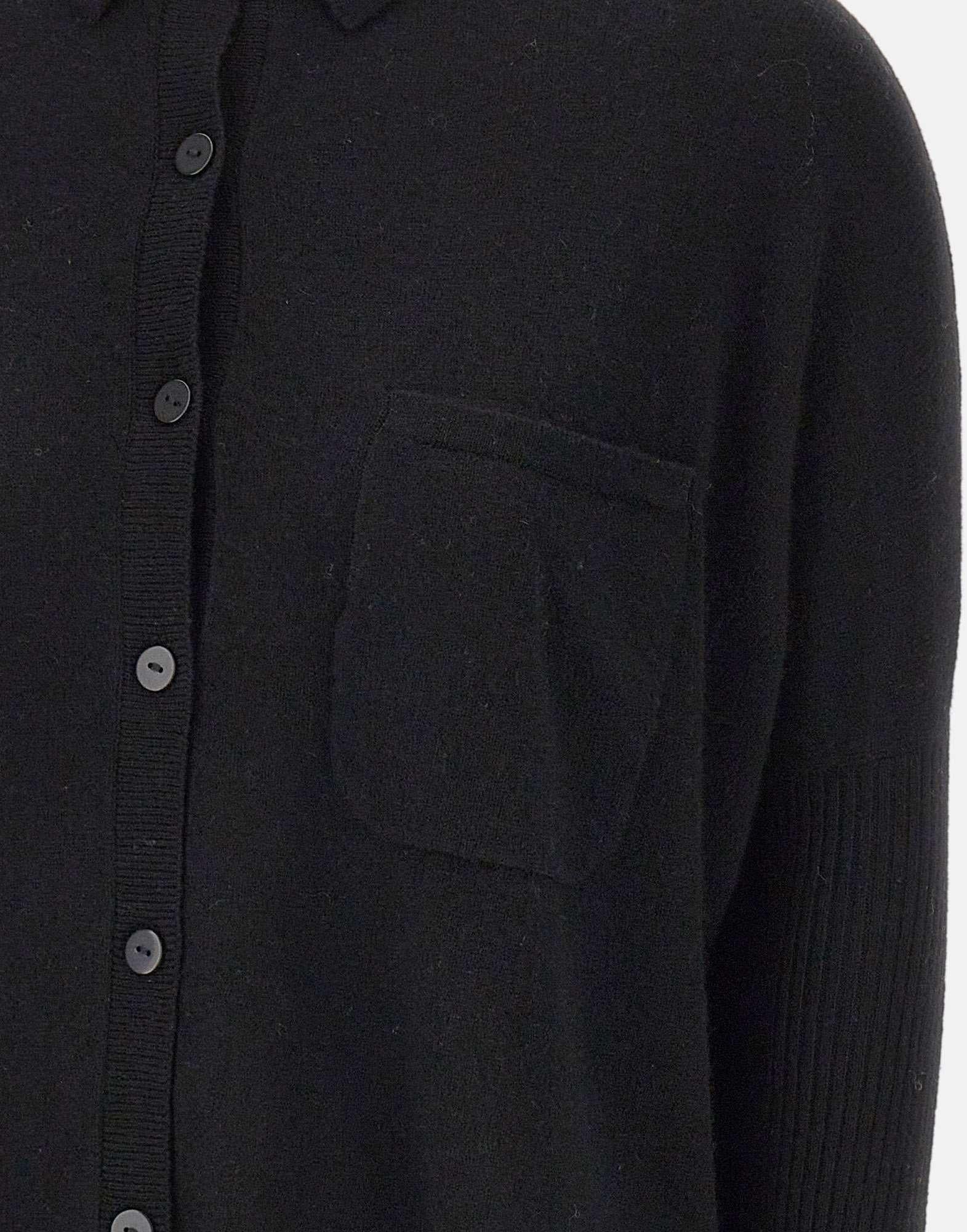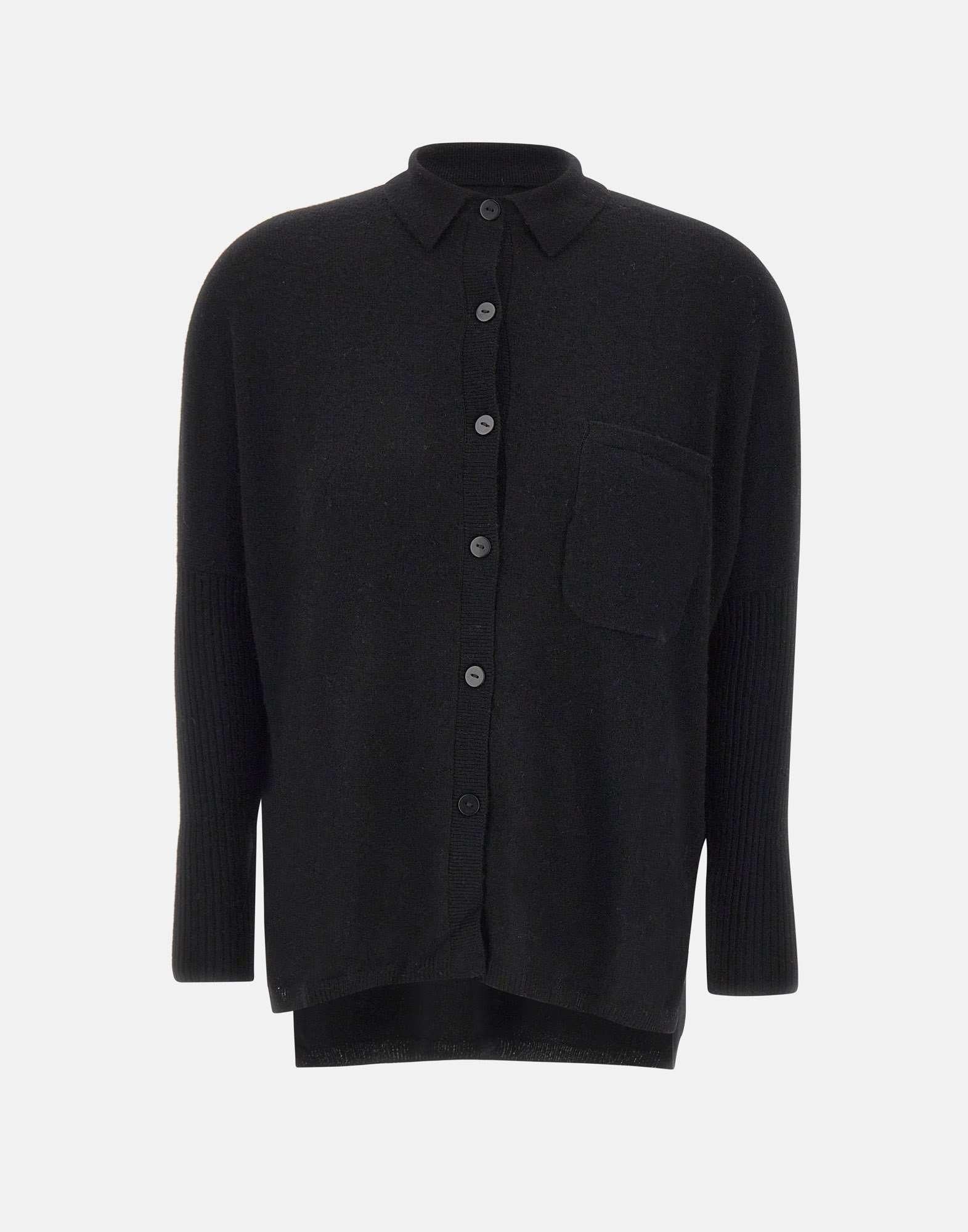 Maglione donna Sweet Cashmere "Andrea" in puro cashmere 100%, nero. Il design è impreziosito da colletto a camicia, maniche lunghe con lavorazione a costine e tasca applicata sul davanti. I bottoni tono su tono e le finiture a costine completano un capo dall'eleganza rilassata e sofisticata, ideale per un look contemporaneo e confortevole.