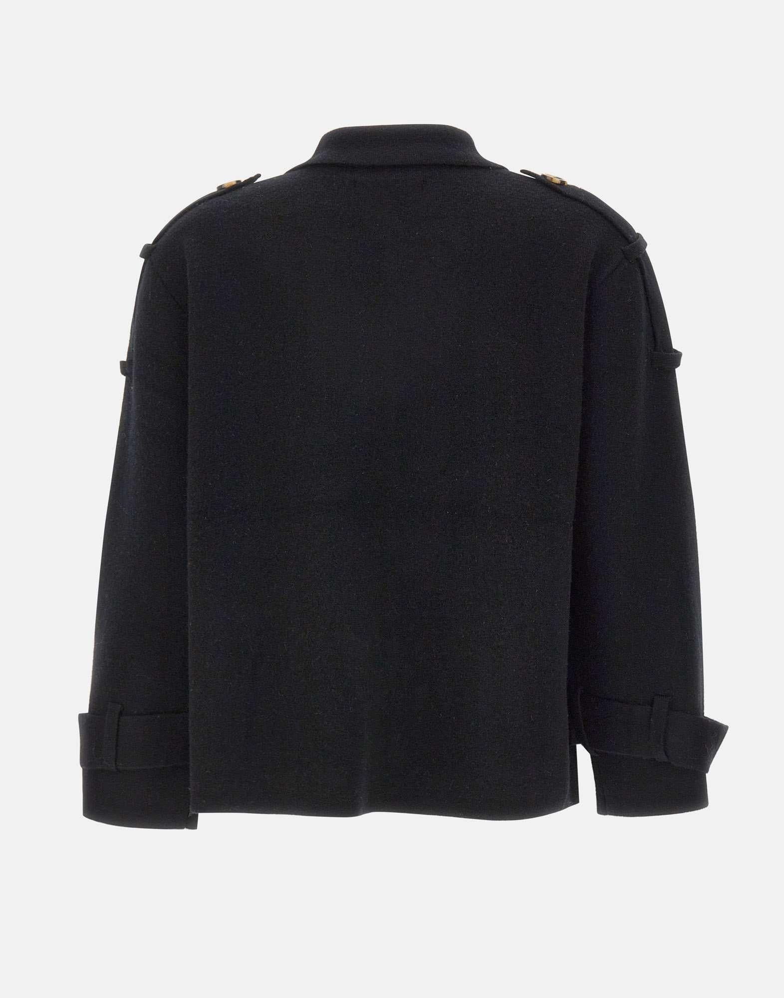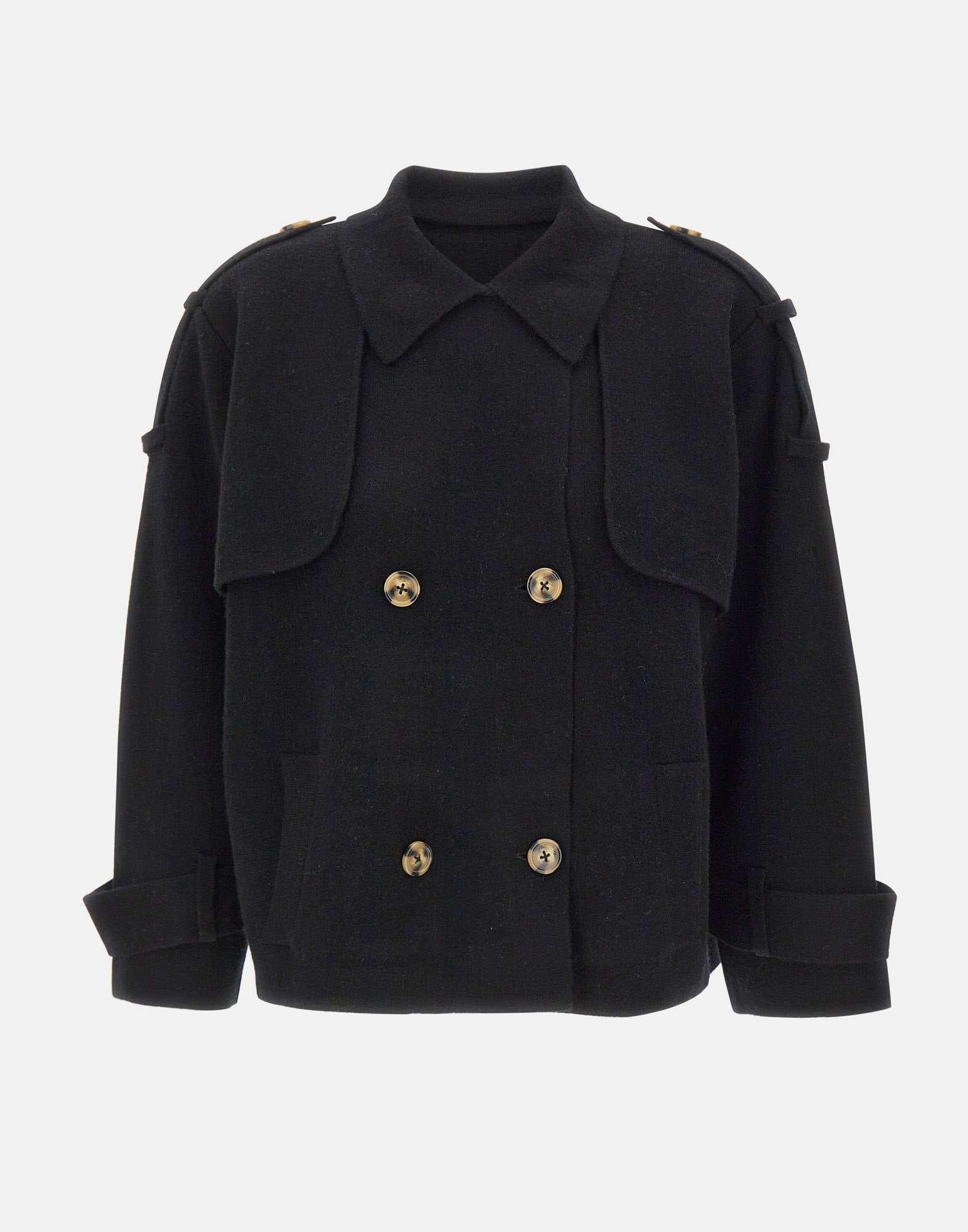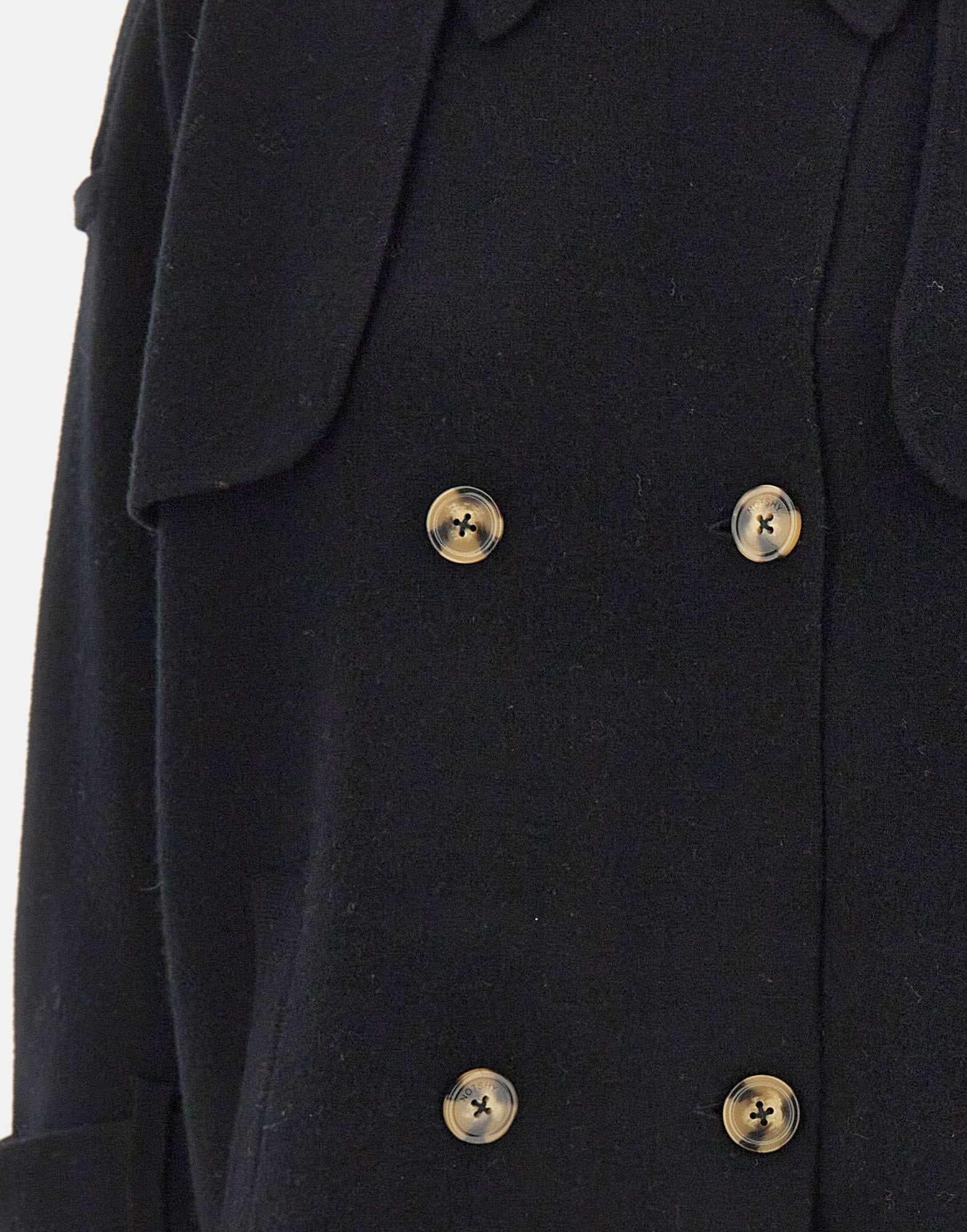 Trench donna Sweet Cashmere "Talita" in misto cashmere nero, dal taglio dritto e dalla linea elegante e strutturata. Presenta una chiusura doppiopetto con quattro bottoni a contrasto, tasche frontali, spalline e polsini con cinturino. Un capo sofisticato e versatile, perfetto per completare look formali o casual con un tocco di classe.