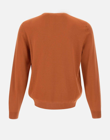 Maglia Boss "Botto L" da uomo in pura lana vergine, color mattone, unisce eleganza e comfort in un design essenziale. Caratterizzata da girocollo con righe iconiche multicolor allinterno, logo ricamato tono su tono sul petto e bordi a costine, è un capo ideale per la stagione autunnale e invernale. Morbida, calda e versatile, rappresenta la perfetta fusione tra stile contemporaneo e qualità premium. Regular fit.
