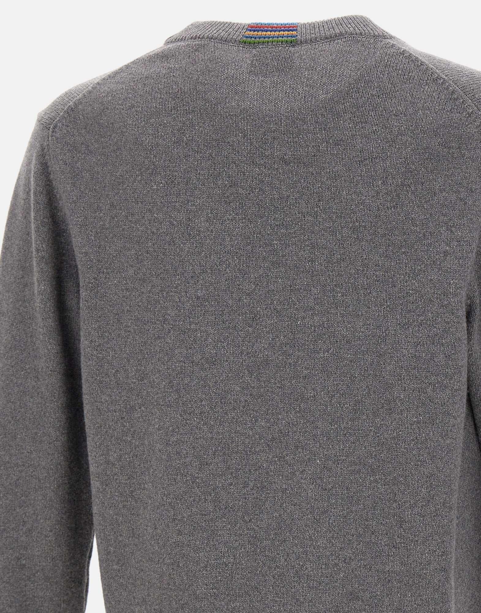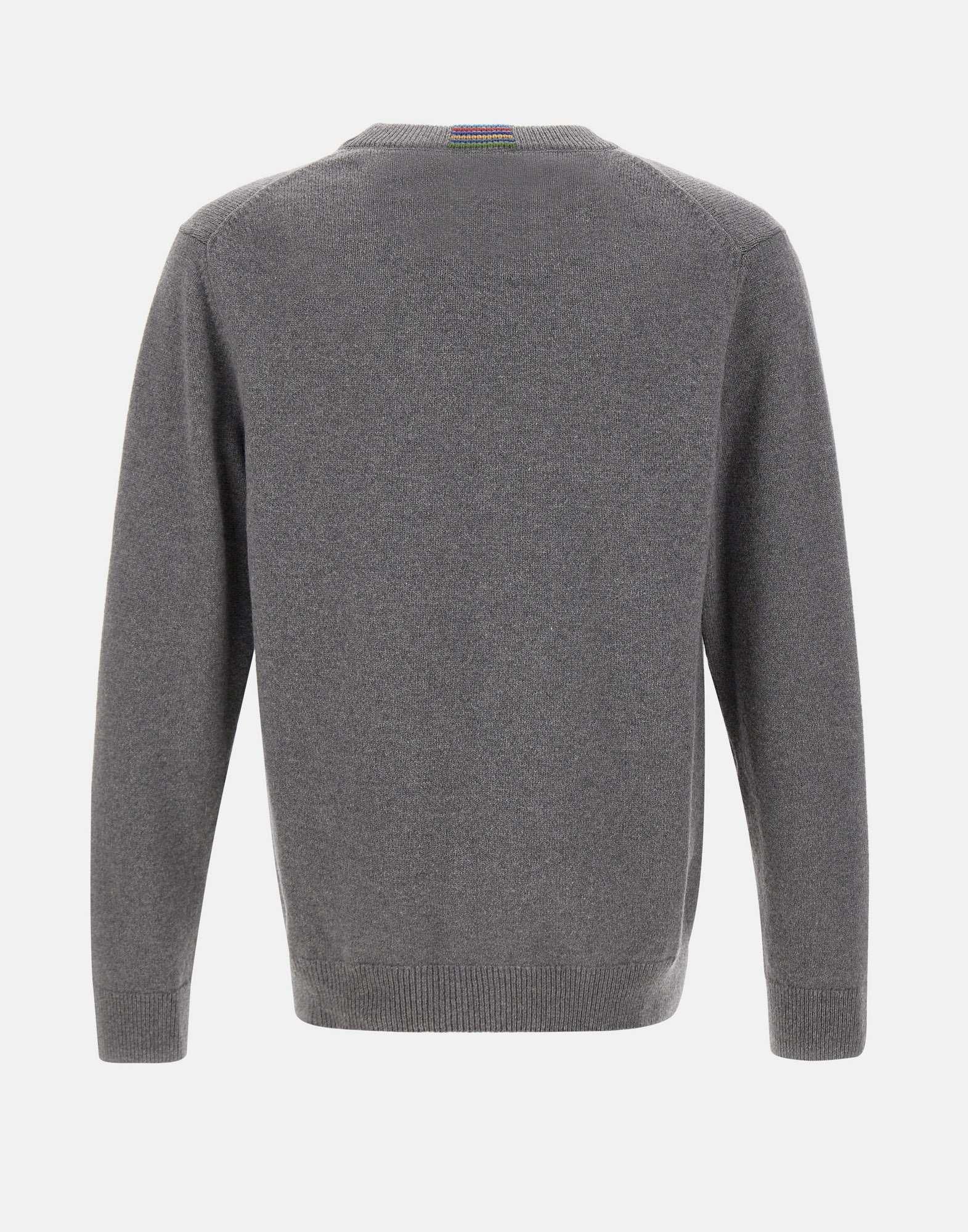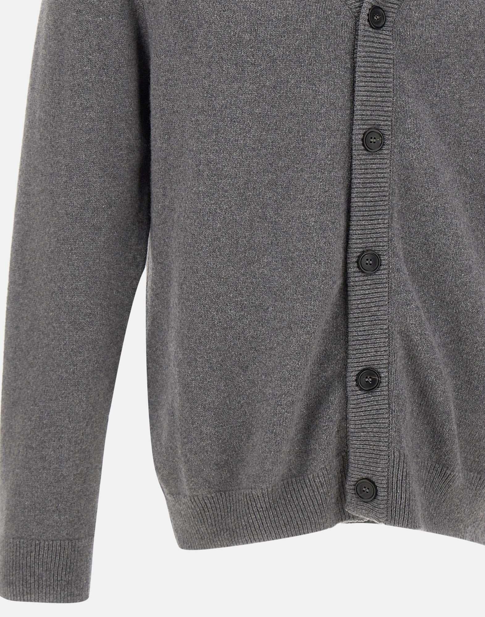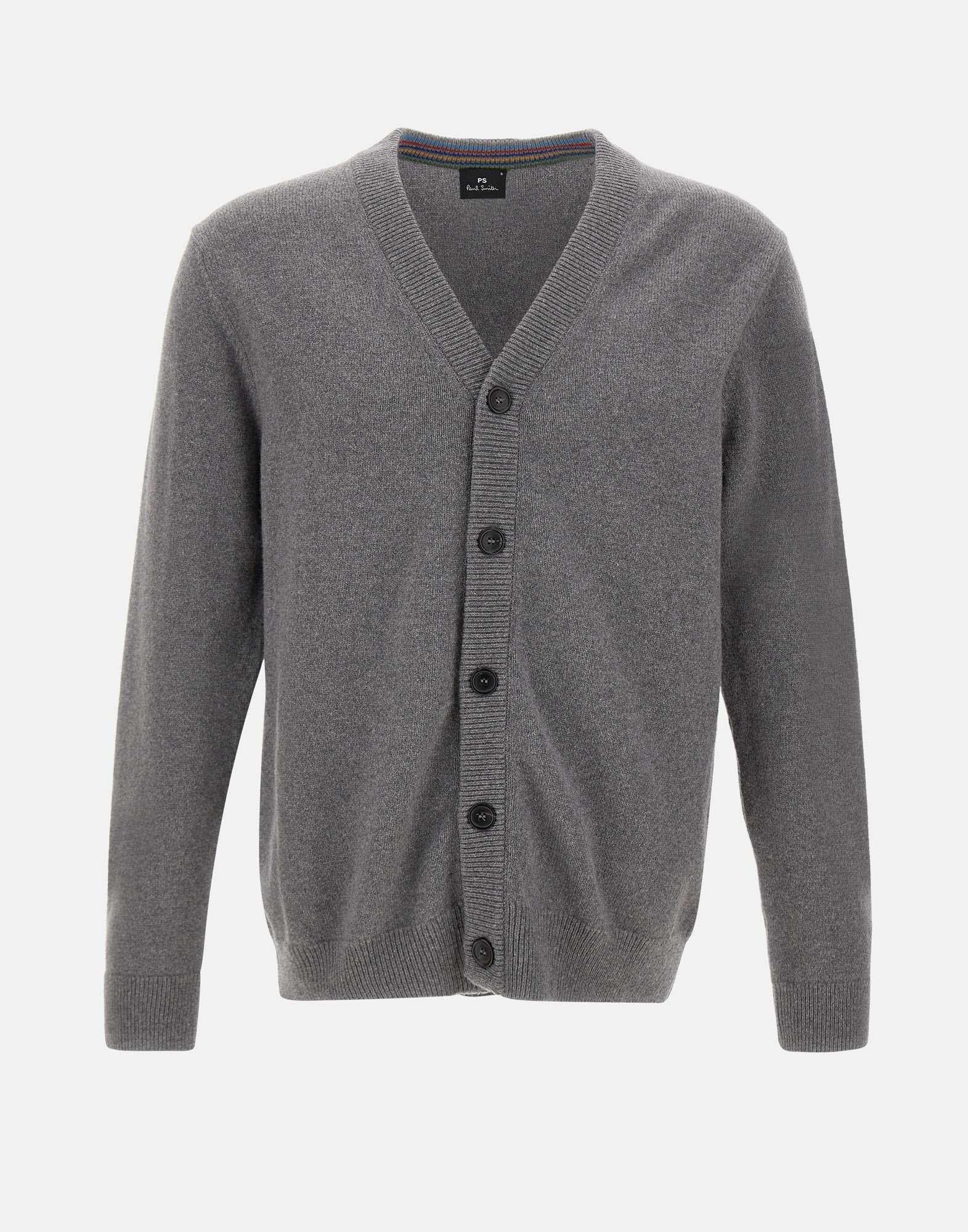 Cardigan PS Paul Smith grigio realizzato in 100% lana merino, morbida e pregiata. Presenta scollo a V classico con cinque bottoni, maniche lunghe e bordi a costine per una vestibilità definita. Il colletto è decorato con motivo "Sports Stripe", mentre l'interno del collo rivela le iconiche Signature Stripes multicolor del brand. Un capo intramontabile dal regular fit, perfetto per uno stile raffinato e versatile. Lavaggio a mano.
