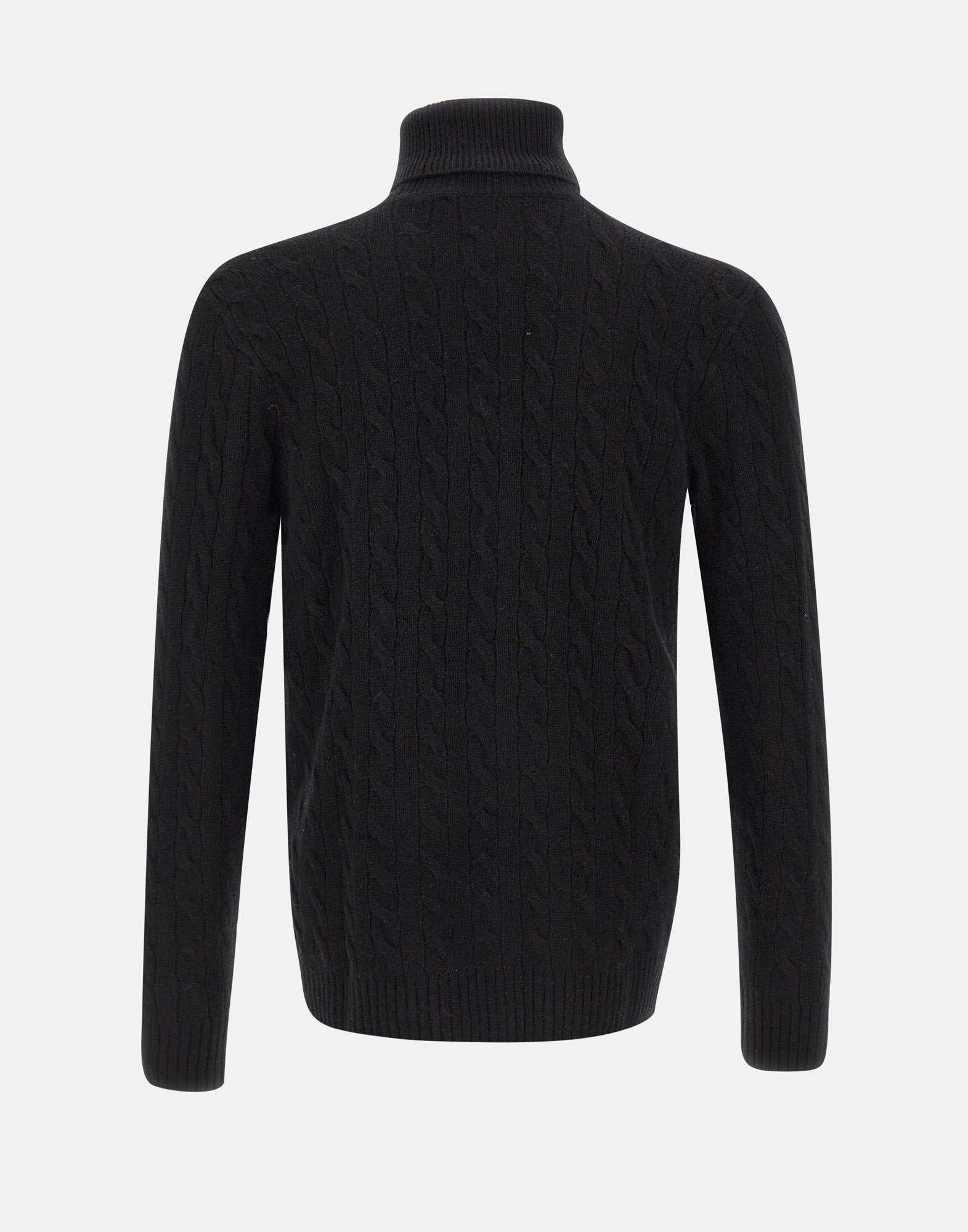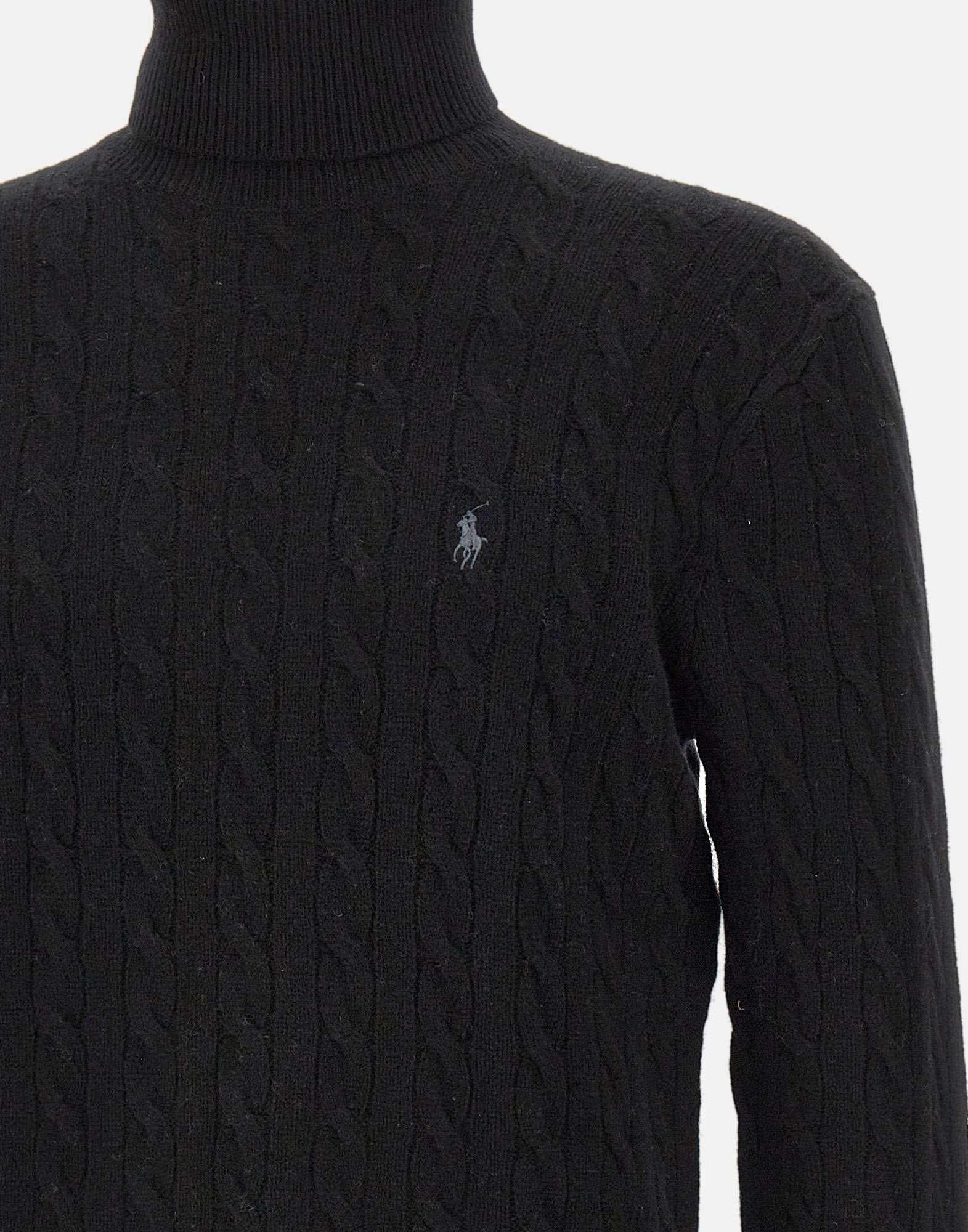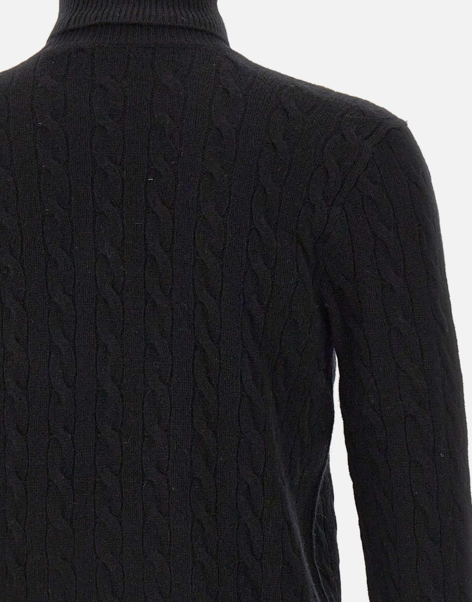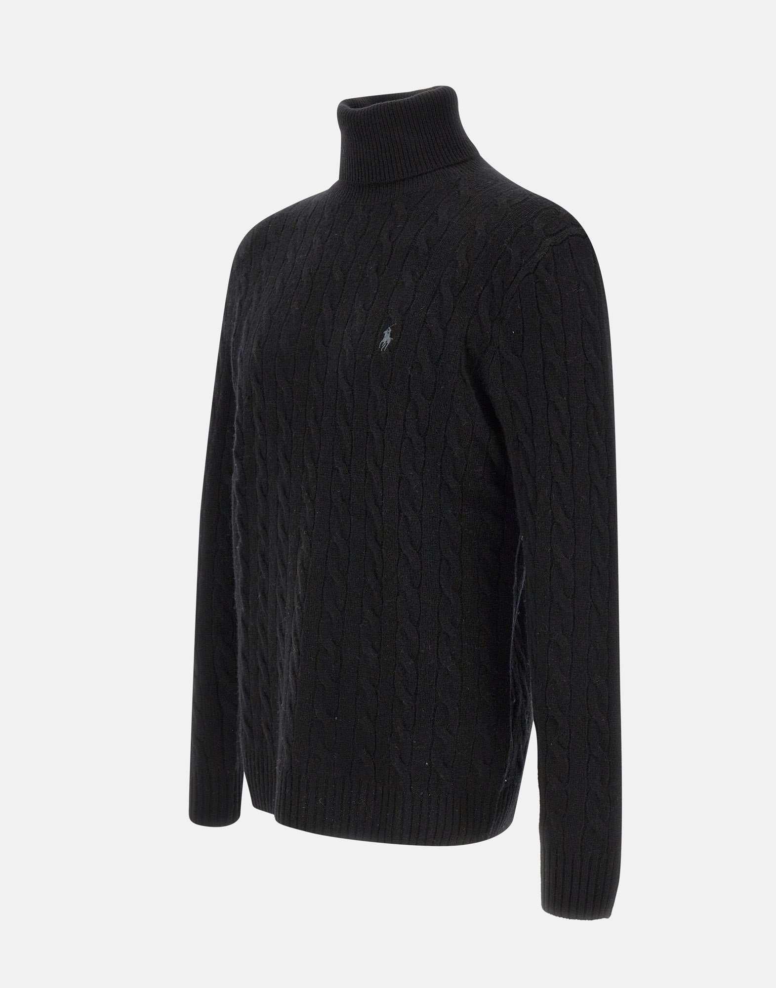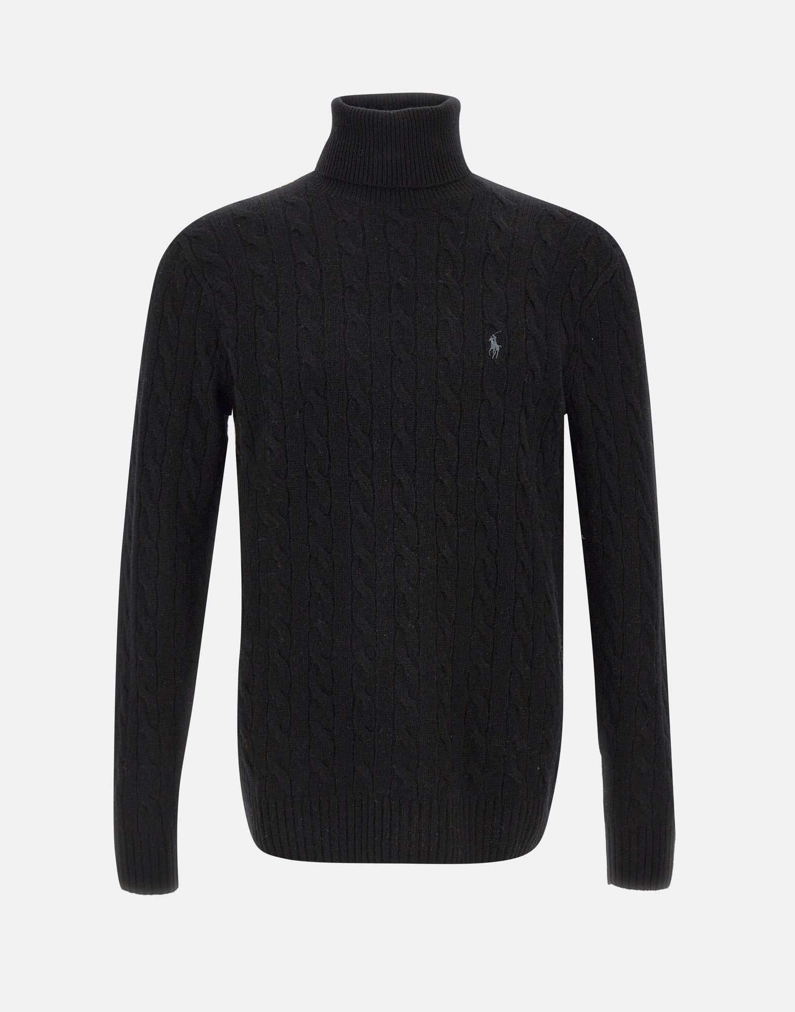 Dolcevita Polo Ralph Lauren "Classics" in lana e cashmere nero, caratterizzato da lavorazione a trecce e bordi a costine. Arricchito dall’iconico logo pony ricamato sul petto. Regular-Fit: silhouette moderna con torace più ampio.