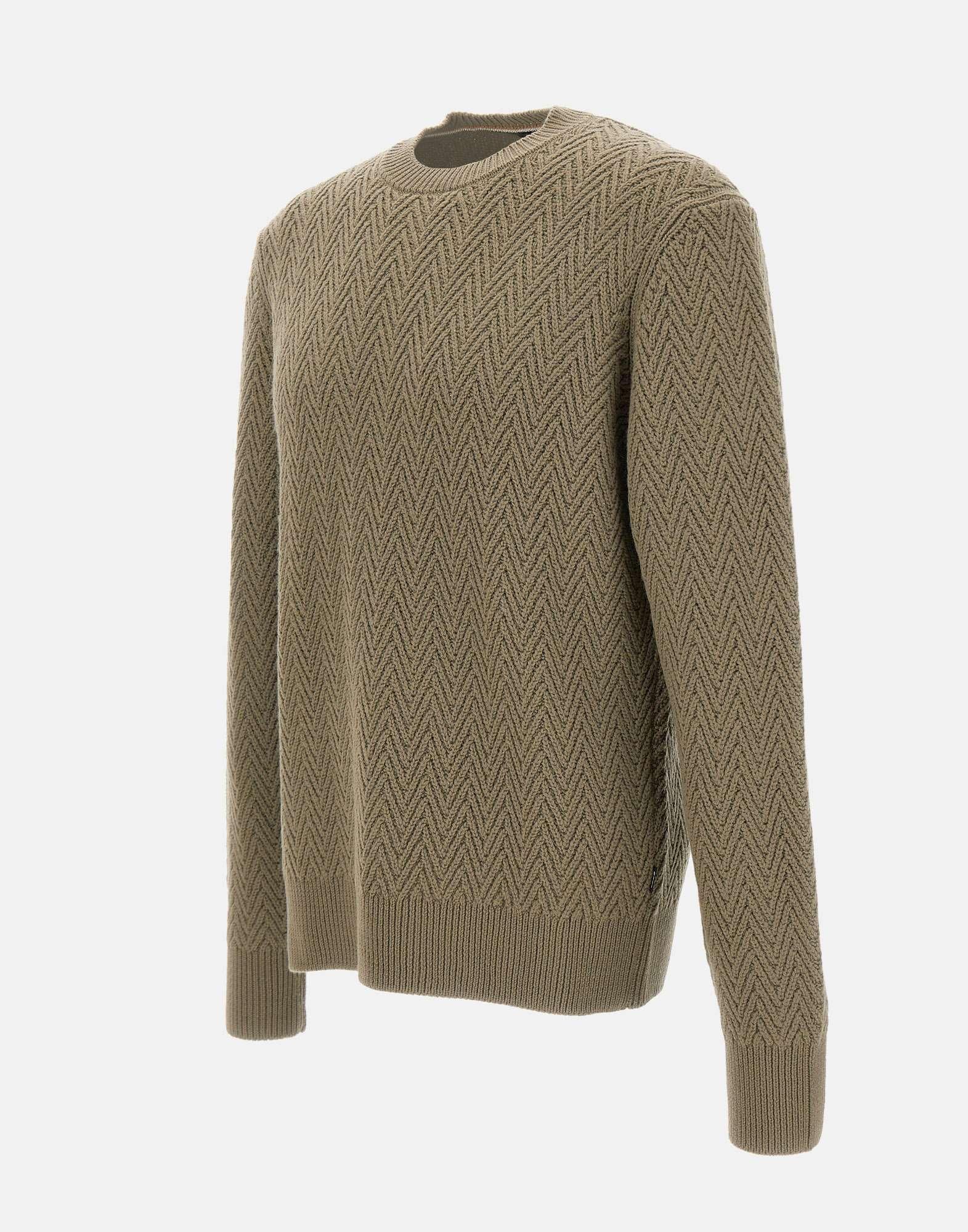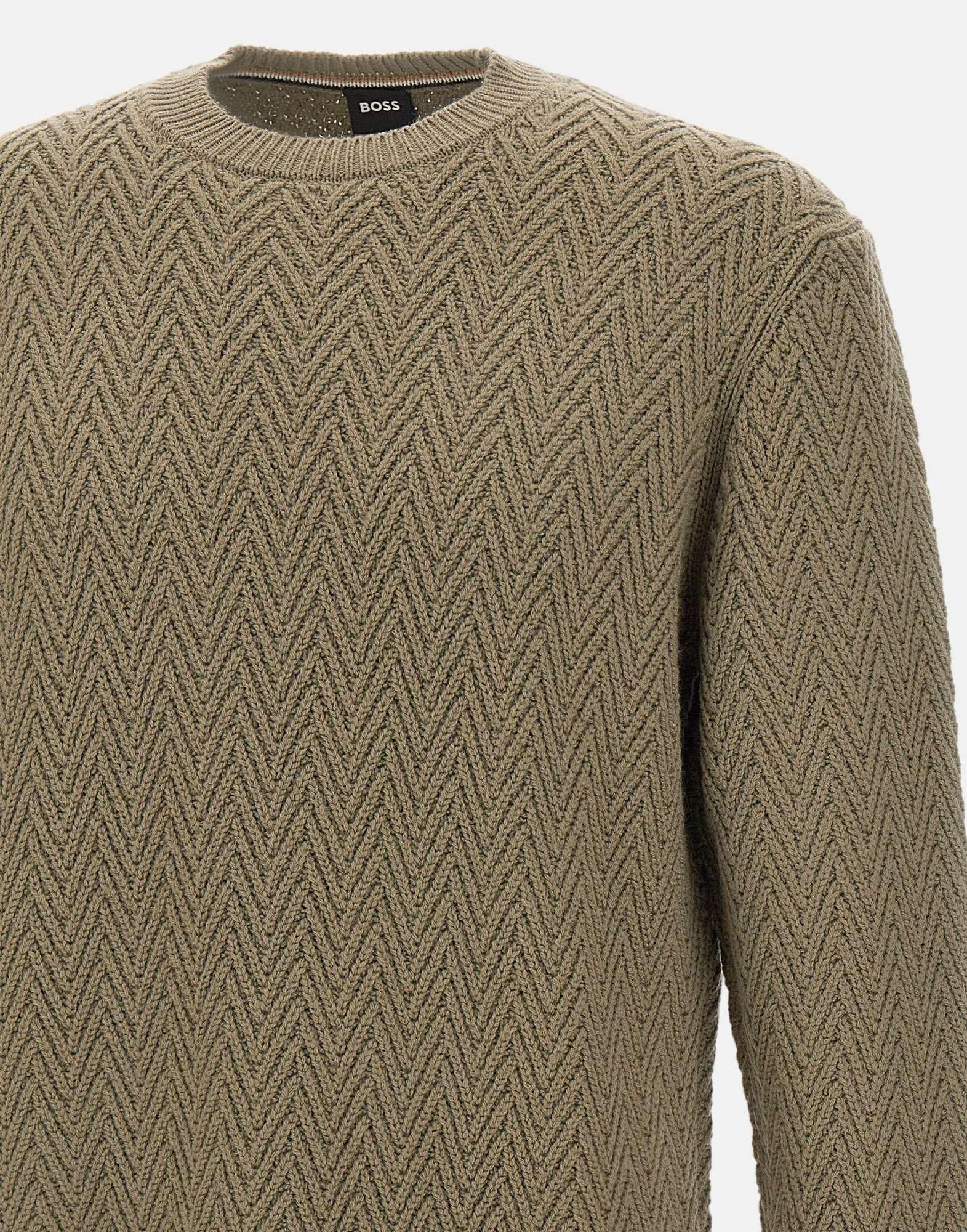 Maglione uomo Boss modello "H Hitalo", realizzato in lana color tortora. Il design presenta scollo tondo, maniche lunghe e lavorazione operata a spiga che dona raffinatezza alla texture. Rifinito con bordi a costine e mini etichetta logo applicata al fondo. Vestibilità relaxed.